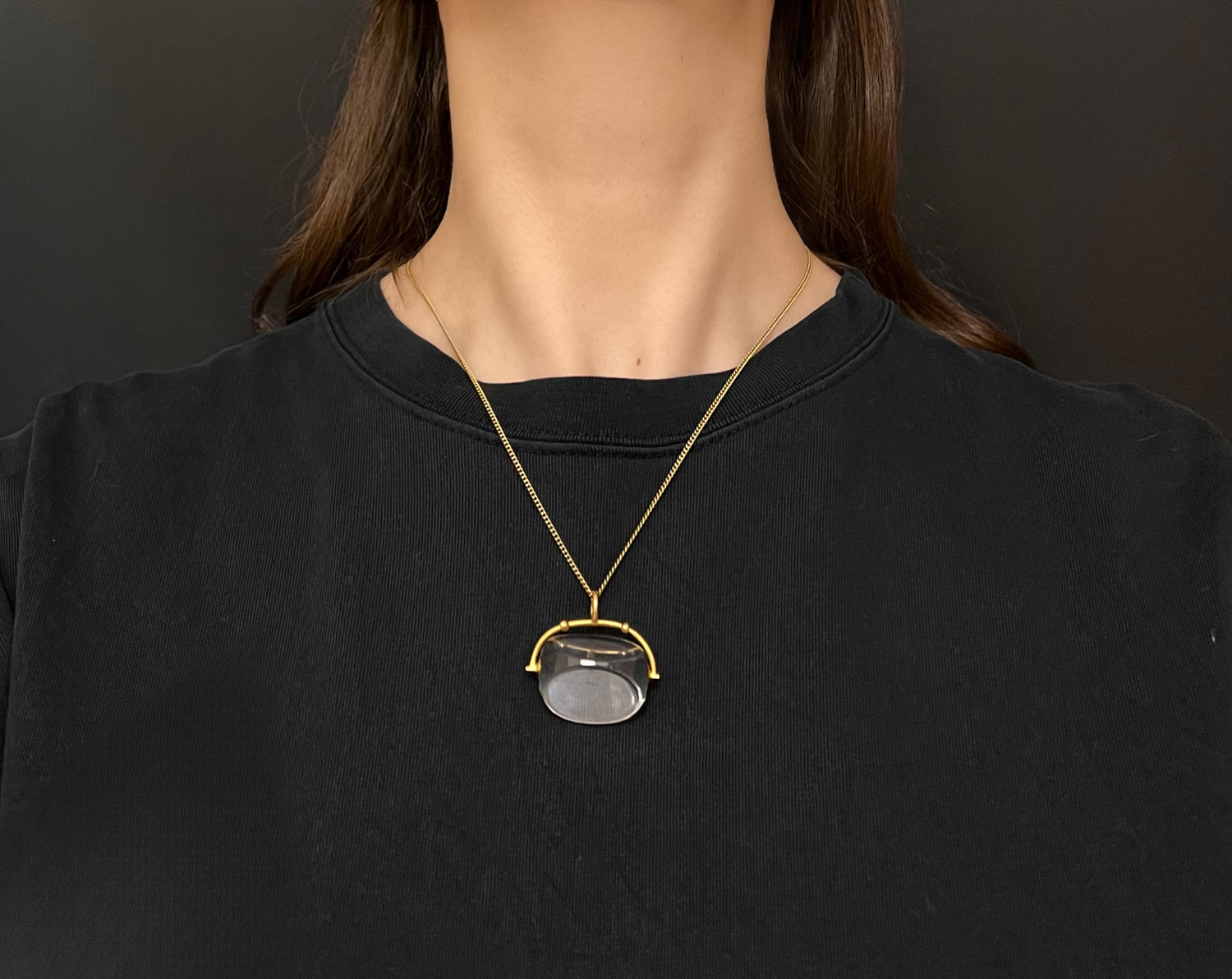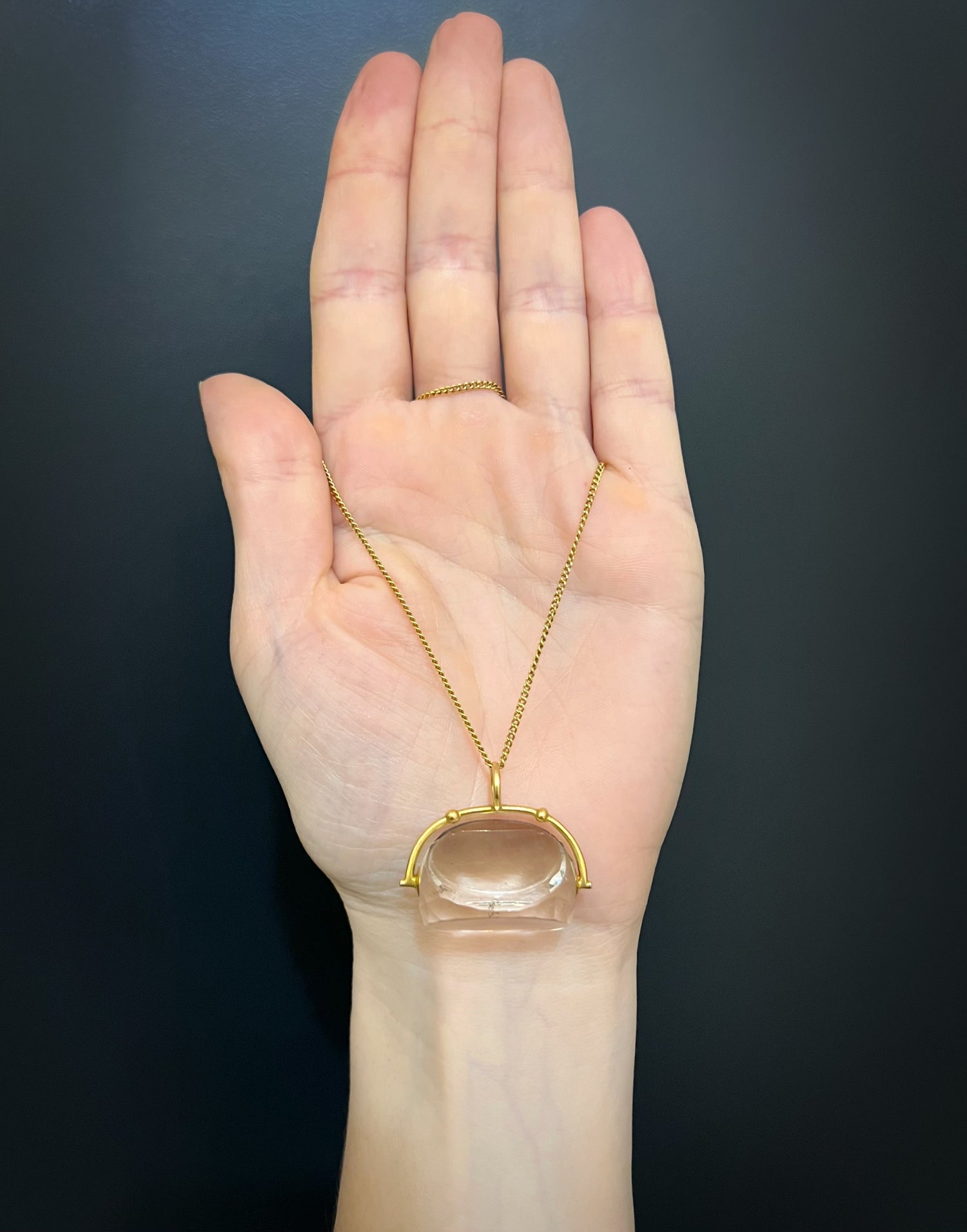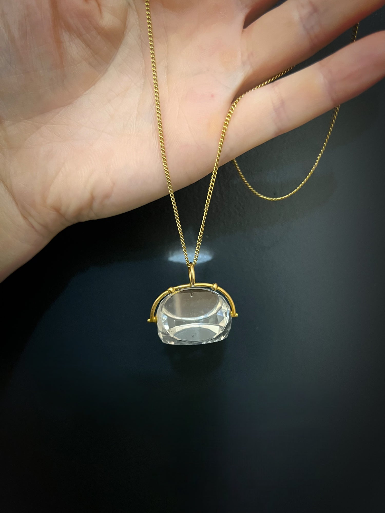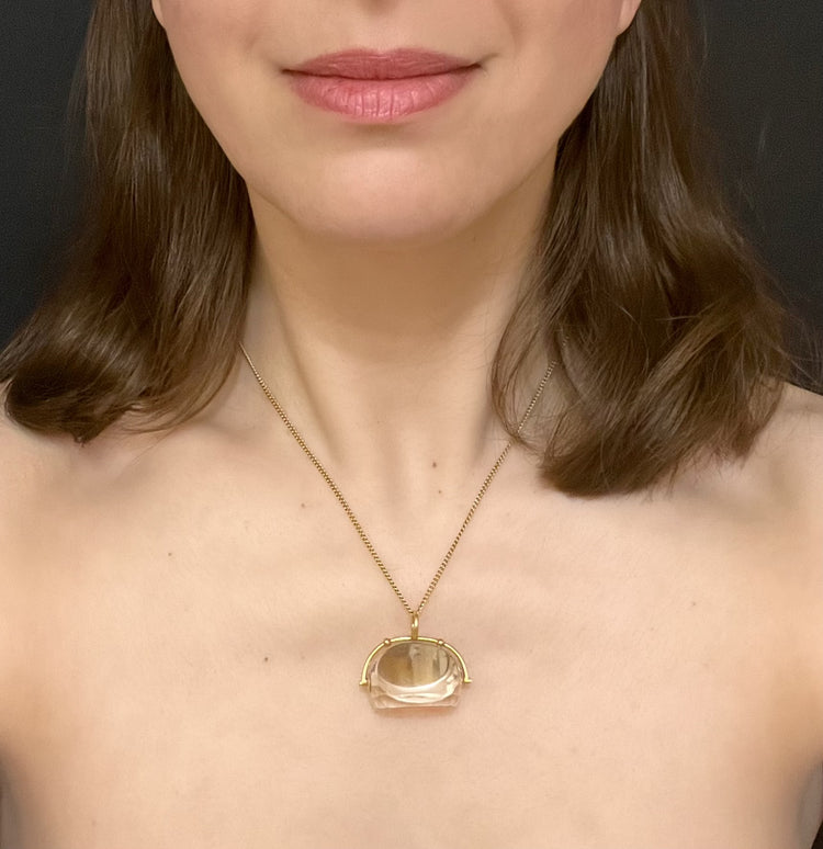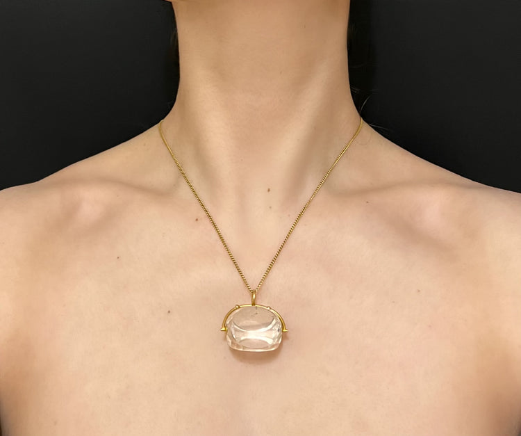 LARGE 18CT GOLD & ROCK CRYSTAL SPINNER PENDANT
