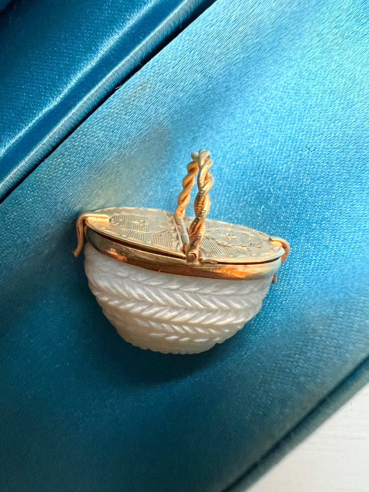 The basket is in excellent condition with a hinged high carat gold top that opens on both sides of a central hinge.