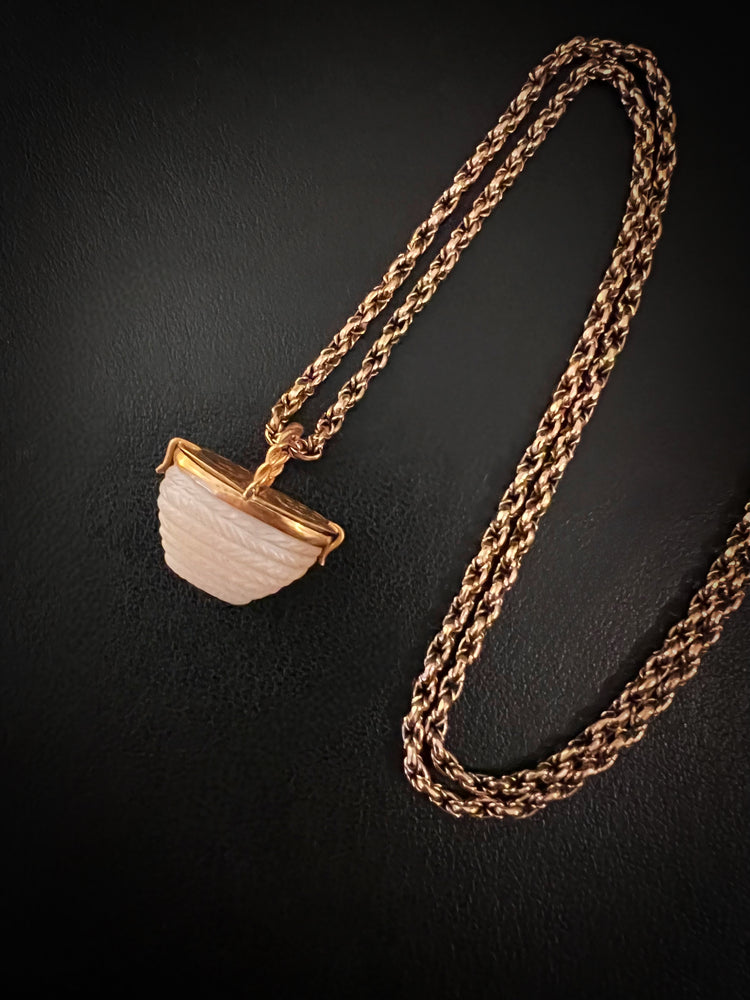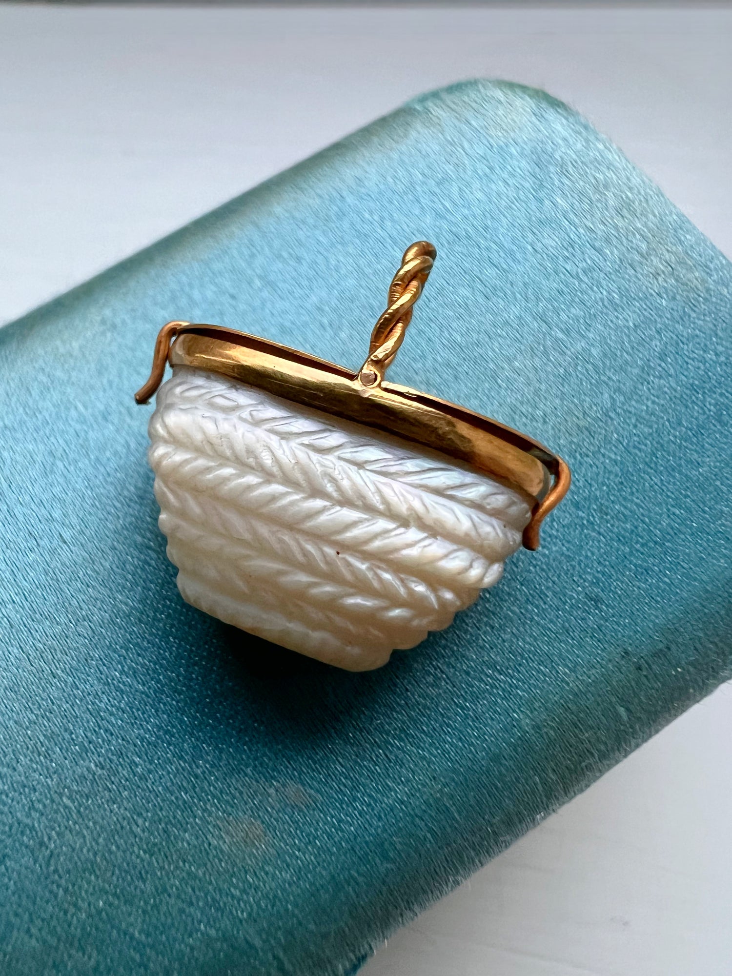 19TH CENTURY CHUNKY MOTHER OF PEARL & 15CT GOLD BASKET PENDANT