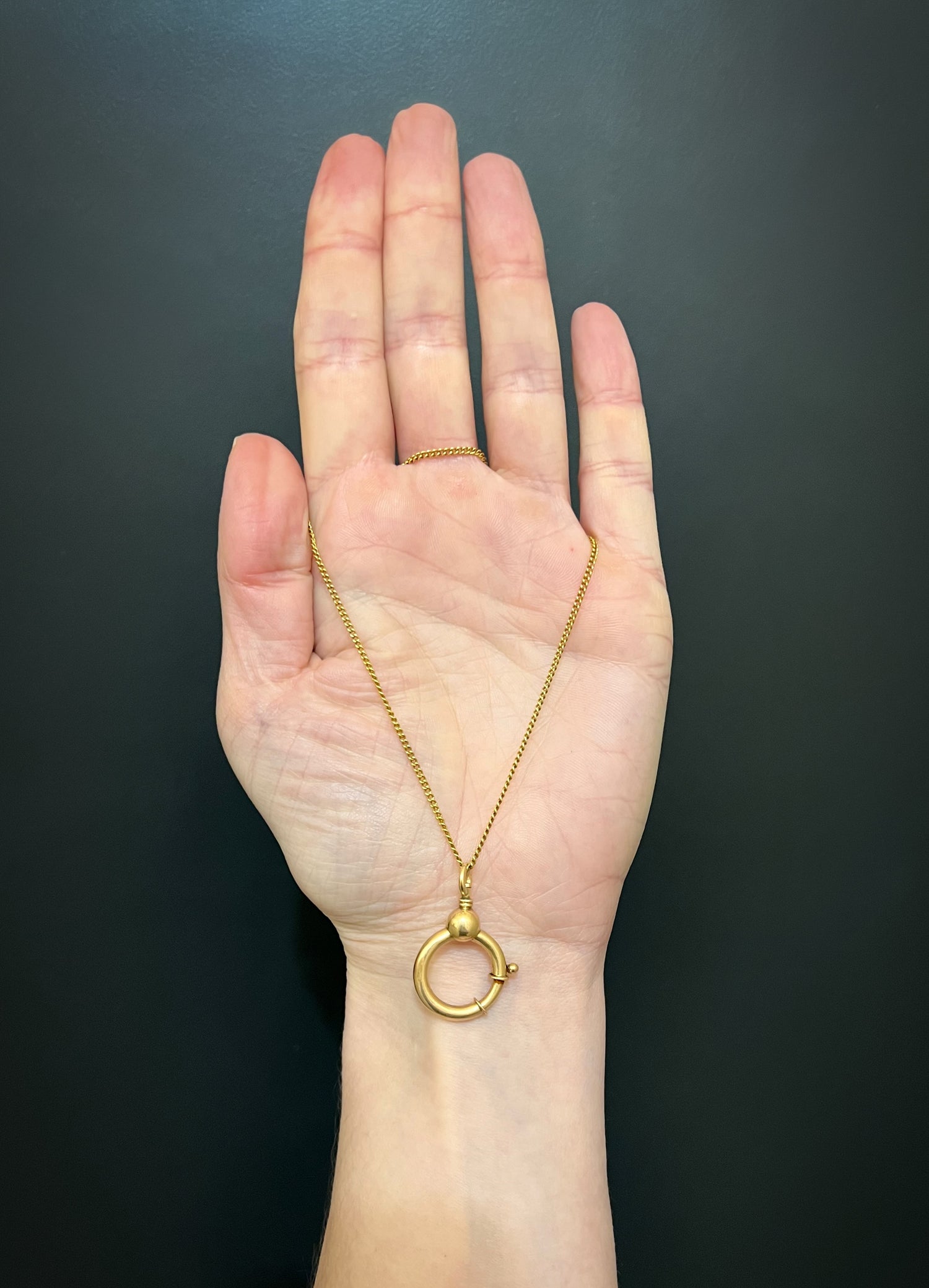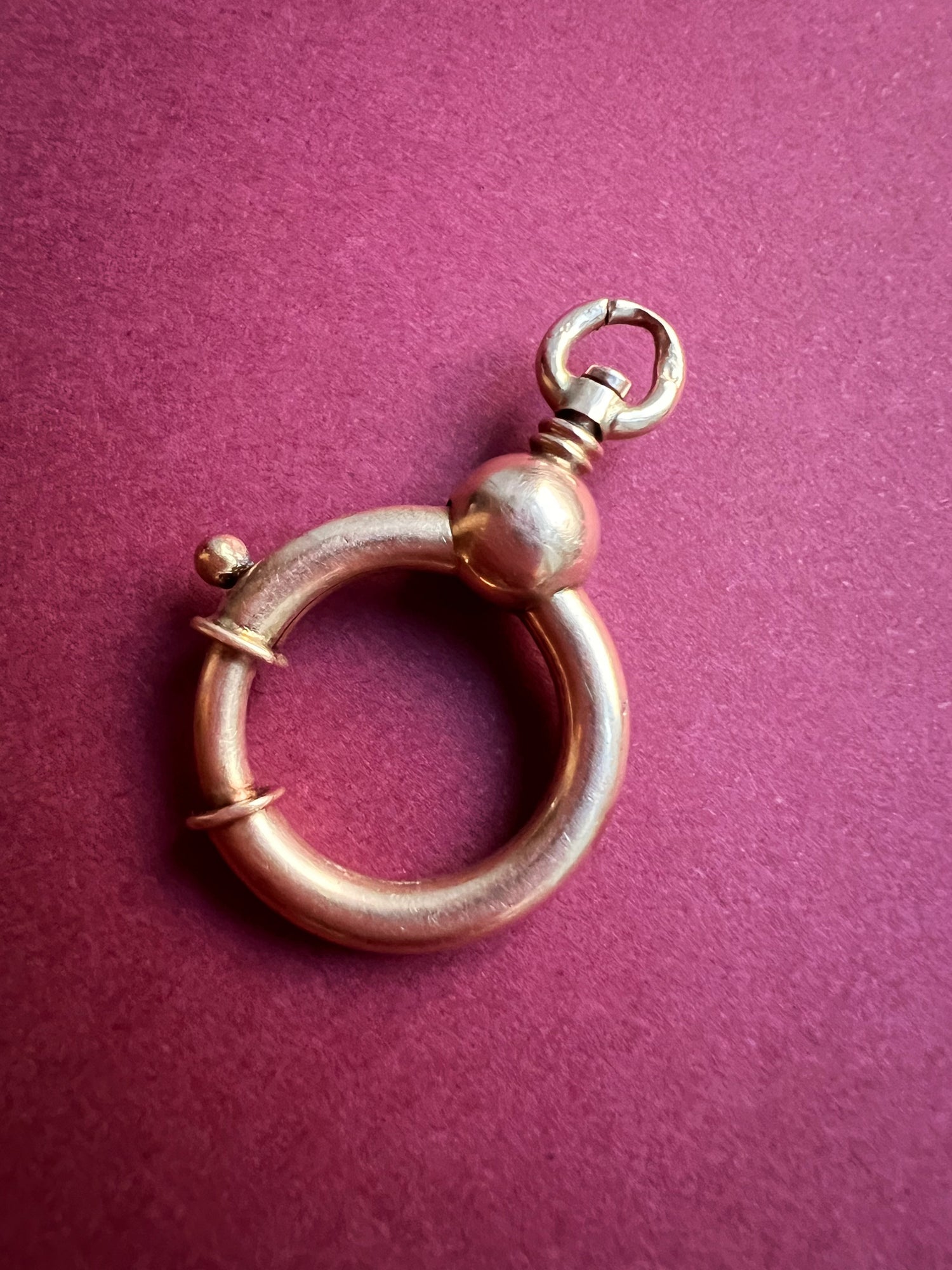 This design is rare; it has a long neck with a gorgeous gold sphere connecting the neck to the chunky bolt ring.