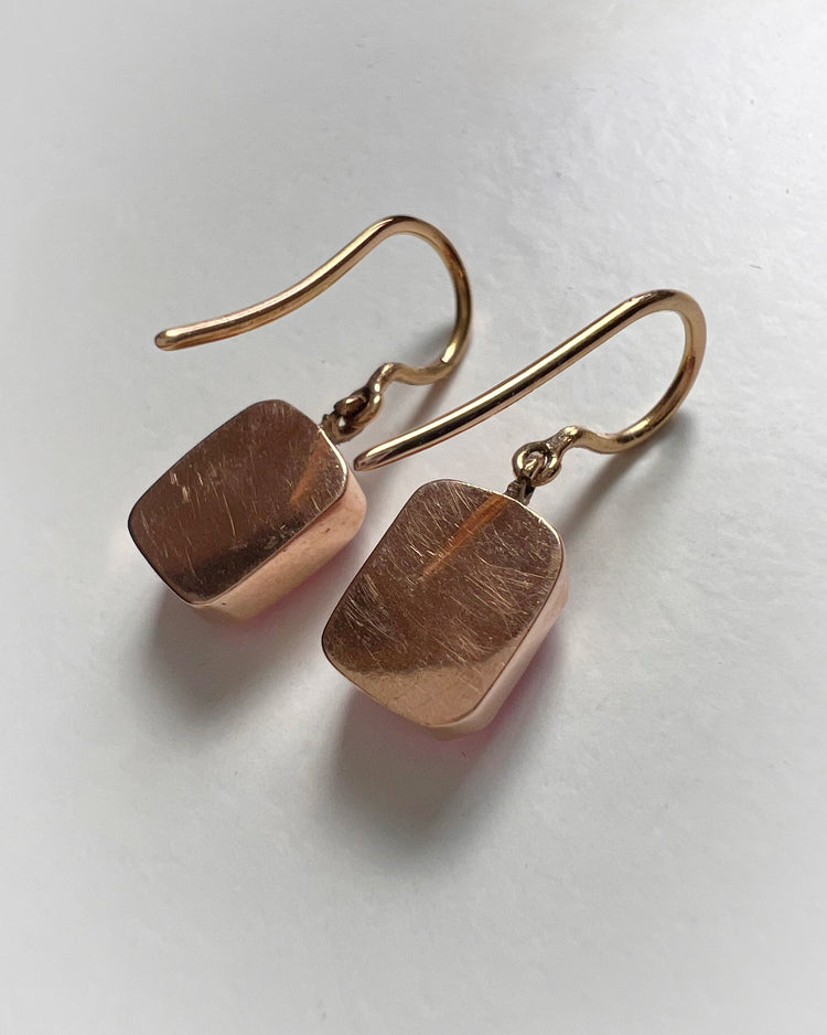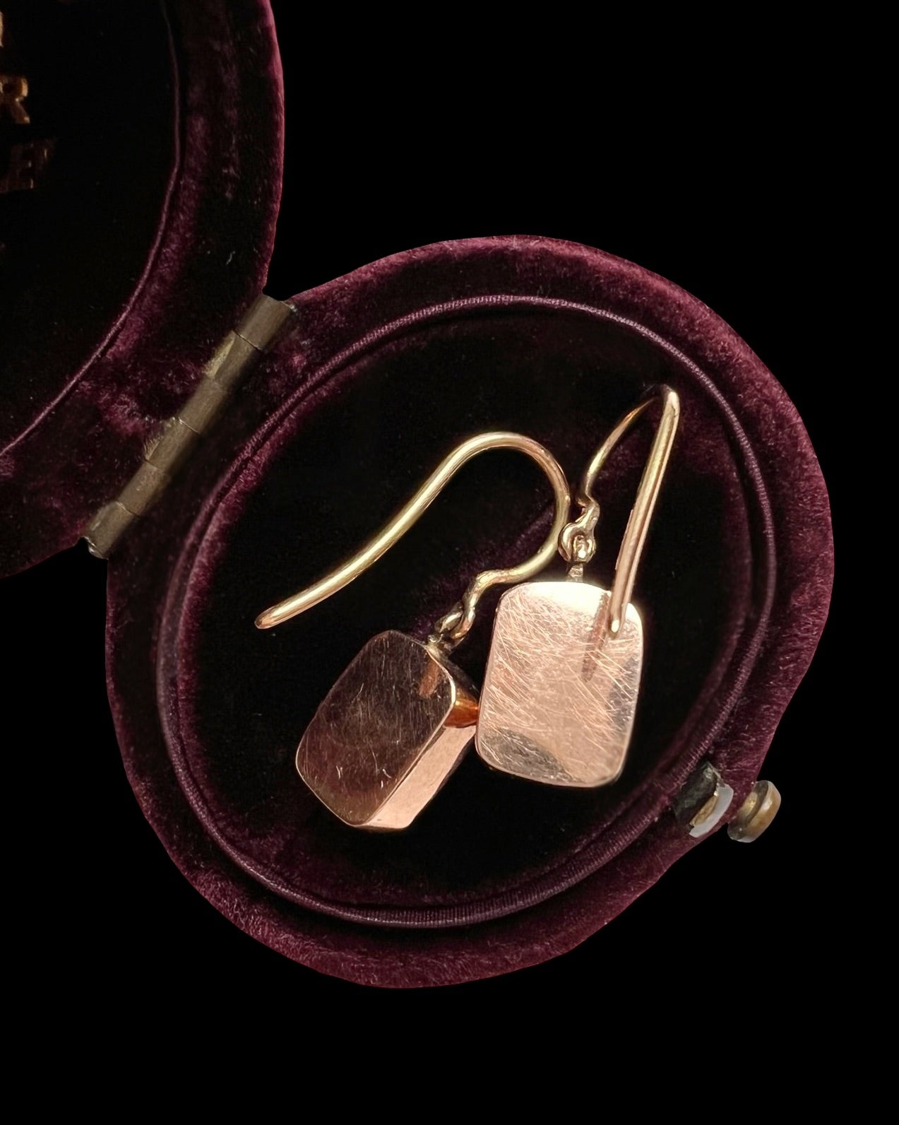 The stones are set in a closed back high carat gold setting, and are fitted with 9ct gold shepherds hook wires.