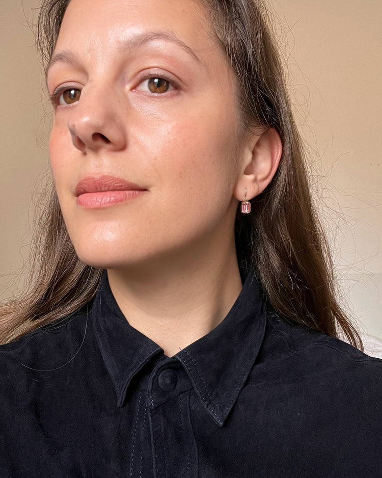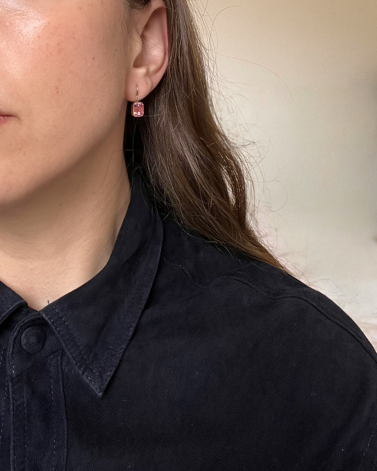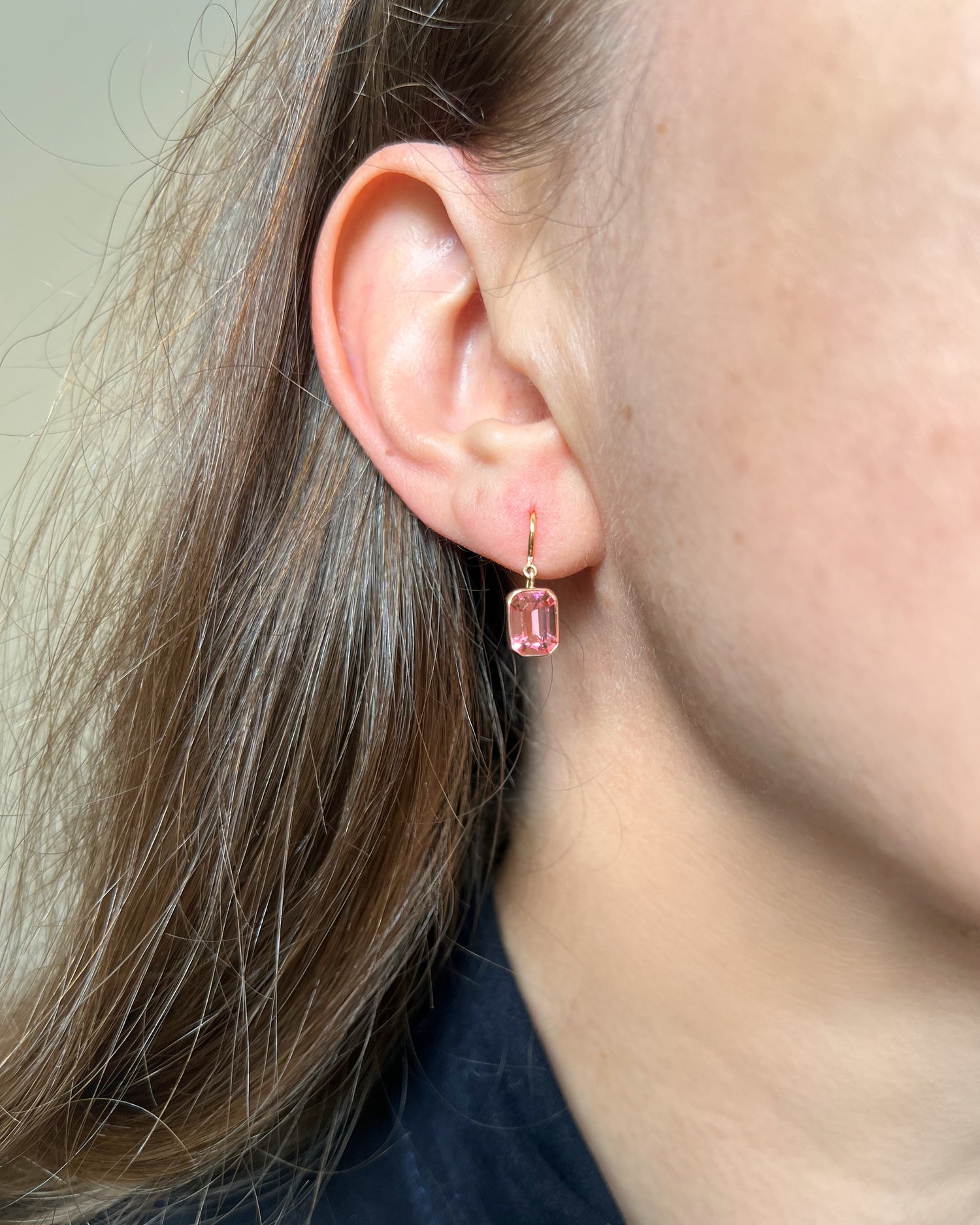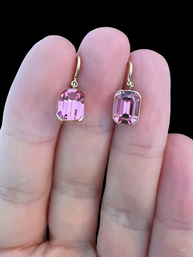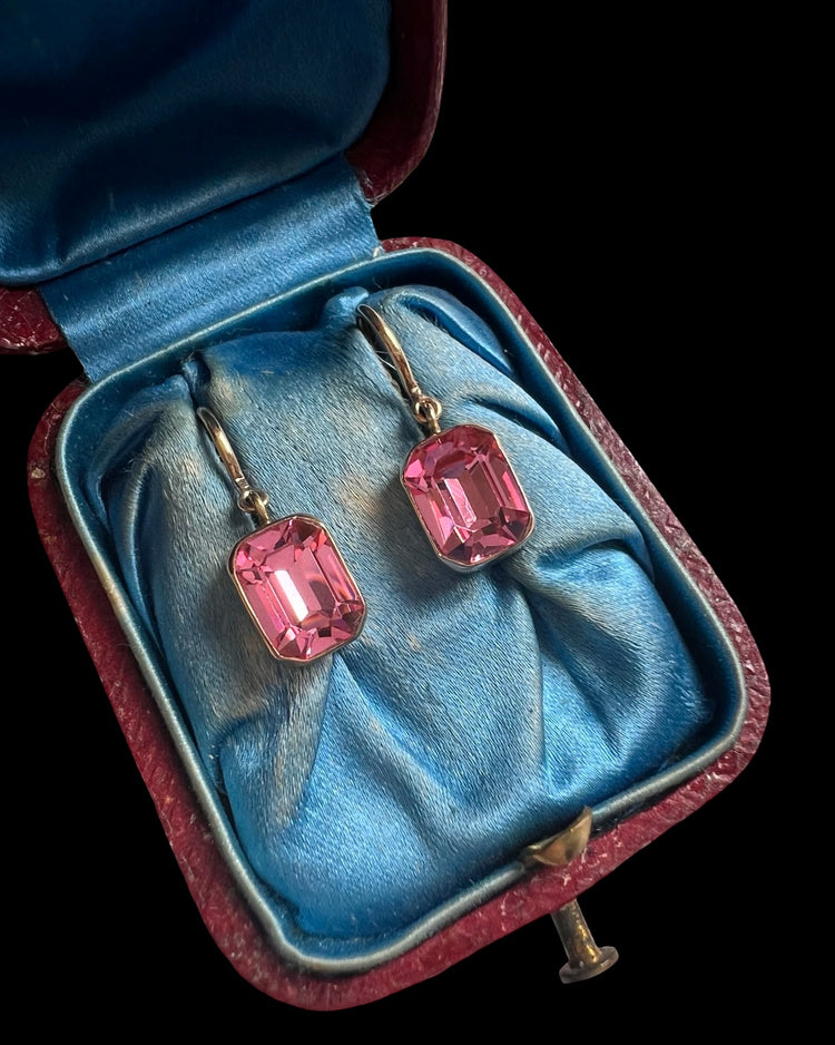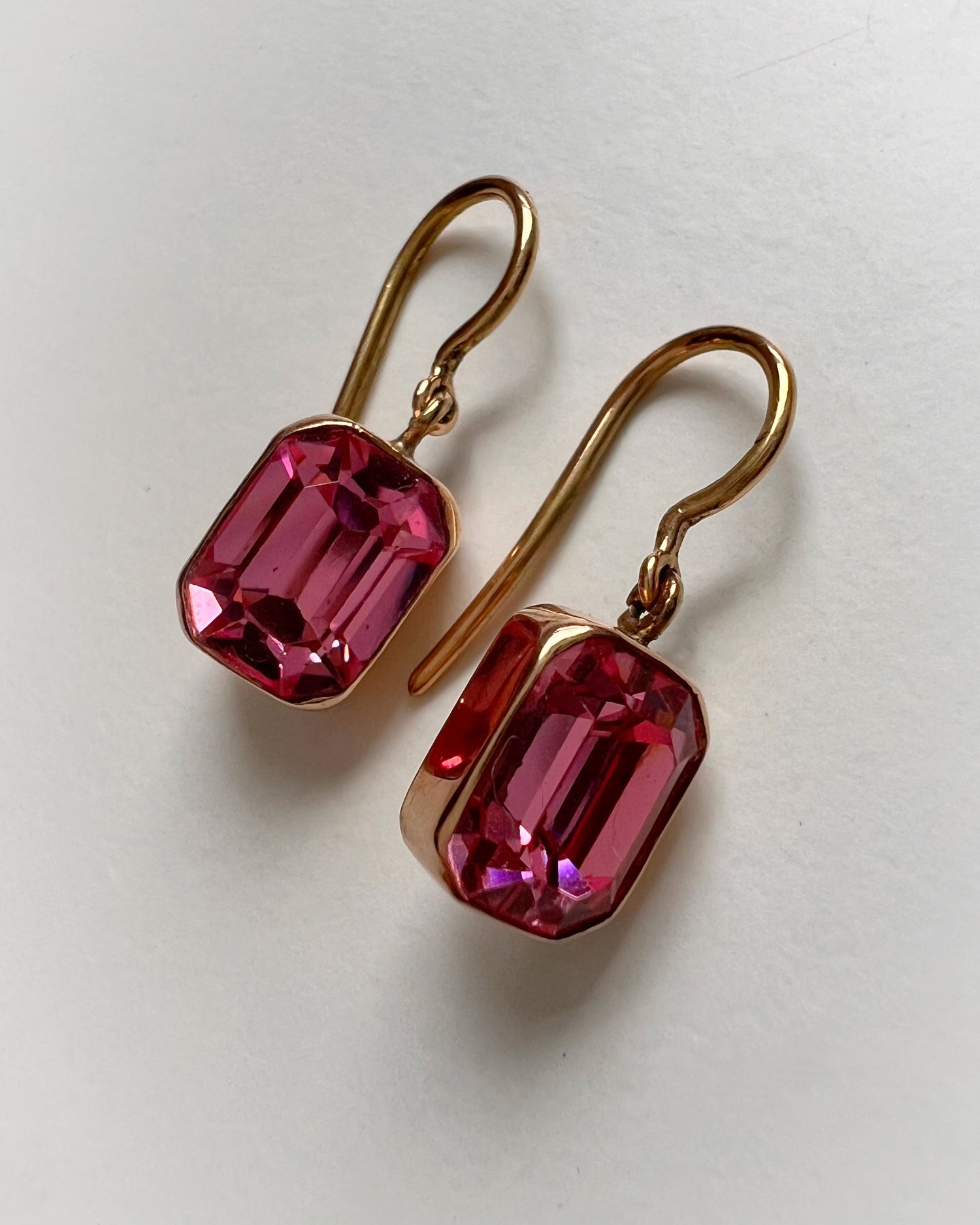 The pink paste stones are an octagonal cut with large tables, allowing plenty of light into the stones.