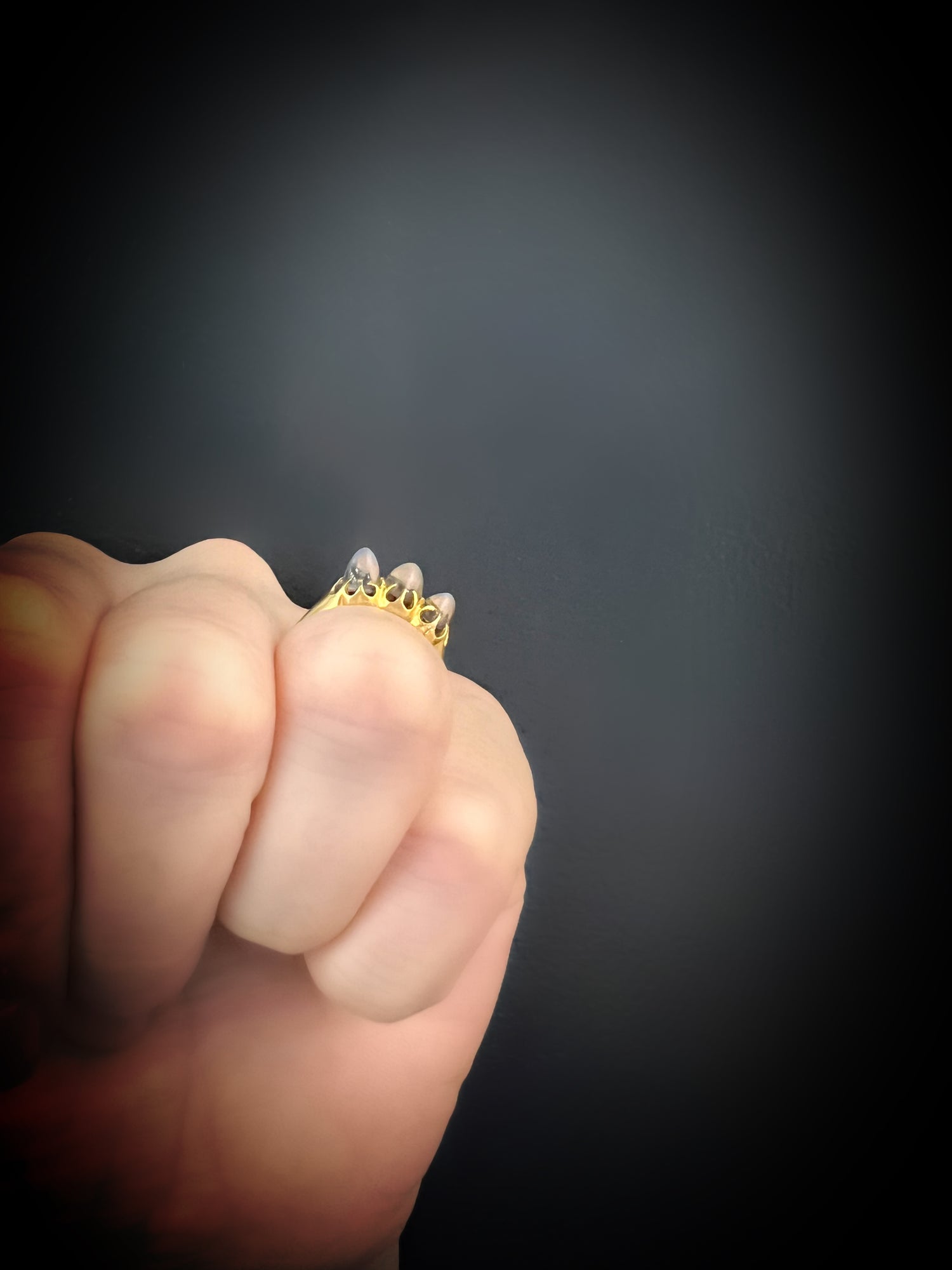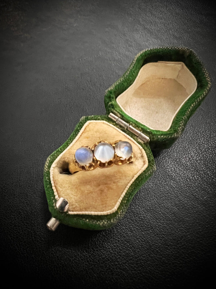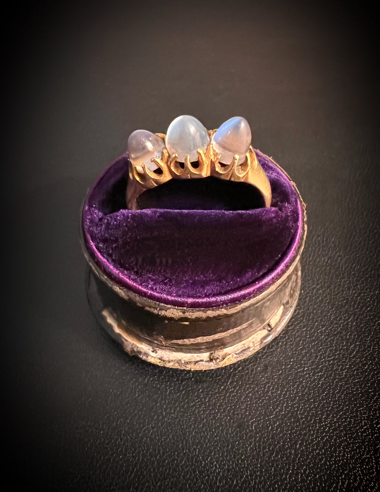 The ring has three super high cabochon moonstones with a lovely silver/blue lustre.
