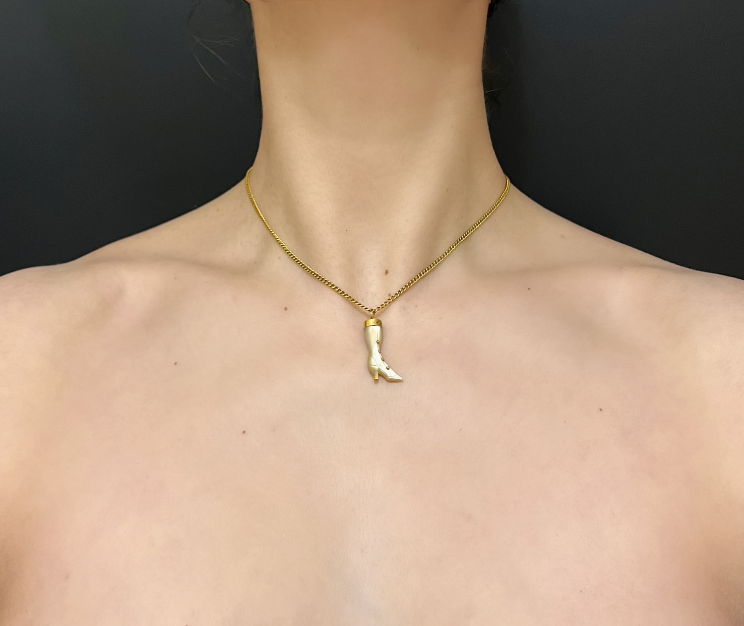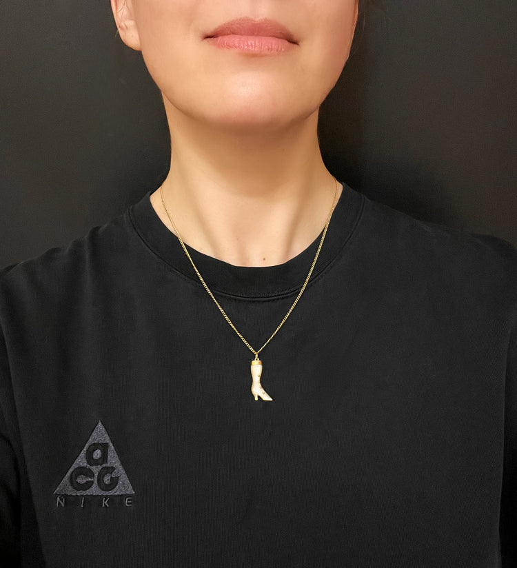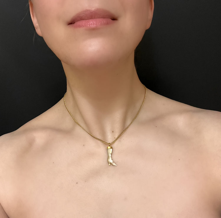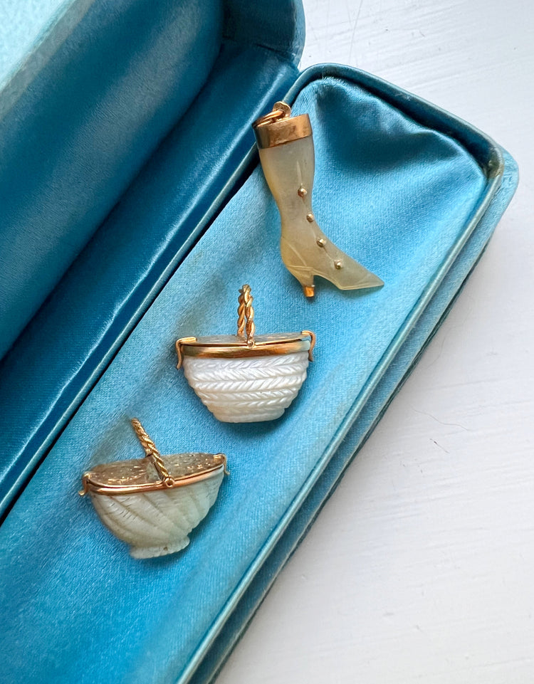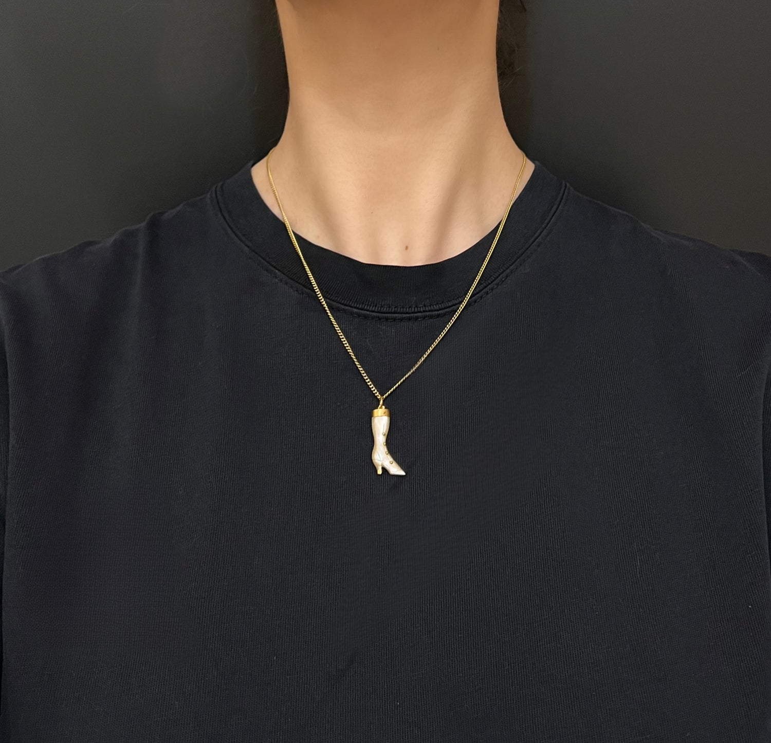 A super cool Victorian Mother of Pearl boot pendant, with high carat gold details.