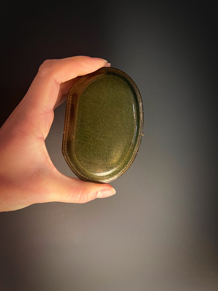 DARK GREEN OVAL TOOLED LEATHER MULTI RING BOX