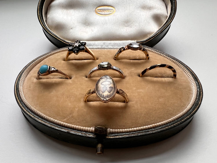 We recommend removing pieces of jewellery before washing hands or showering, as water can damage the antique settings.