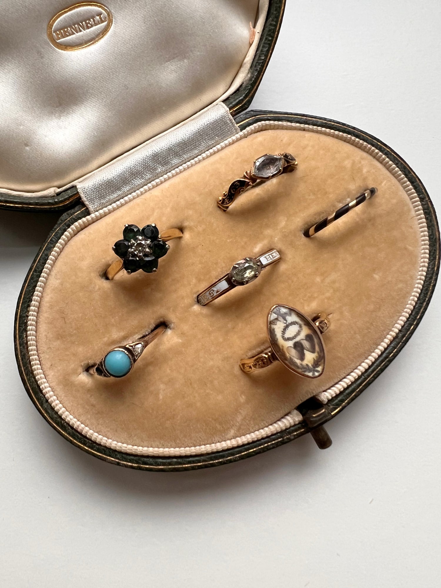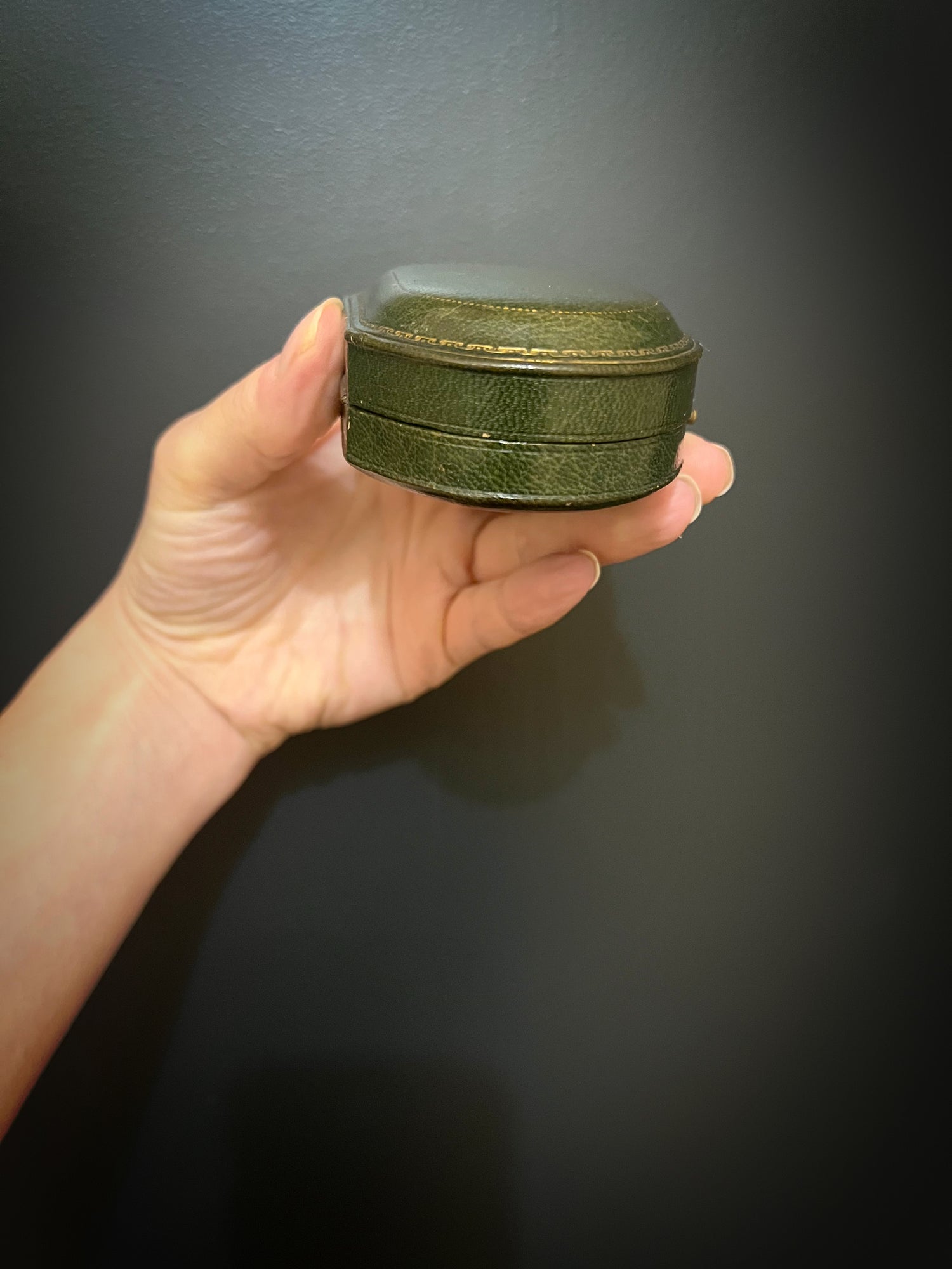 A gorgeous dark bottle green leather multi ring box, circa 1900/1910.