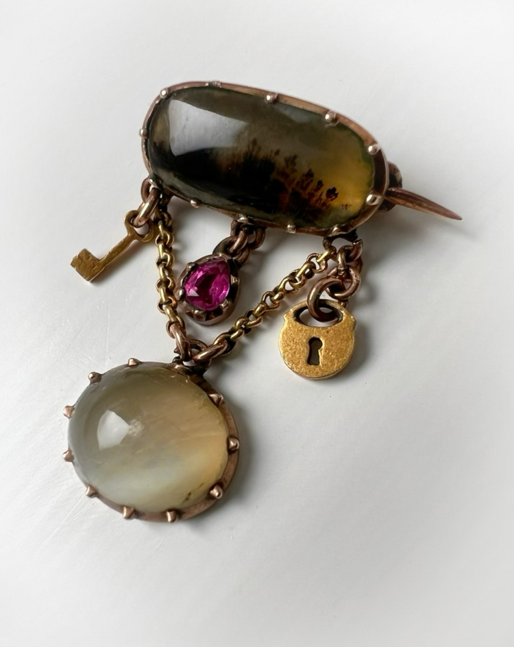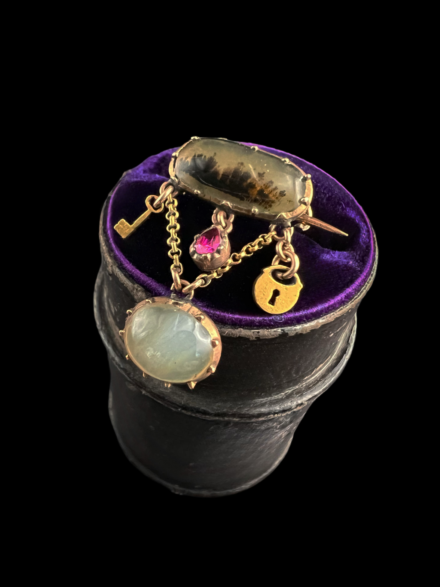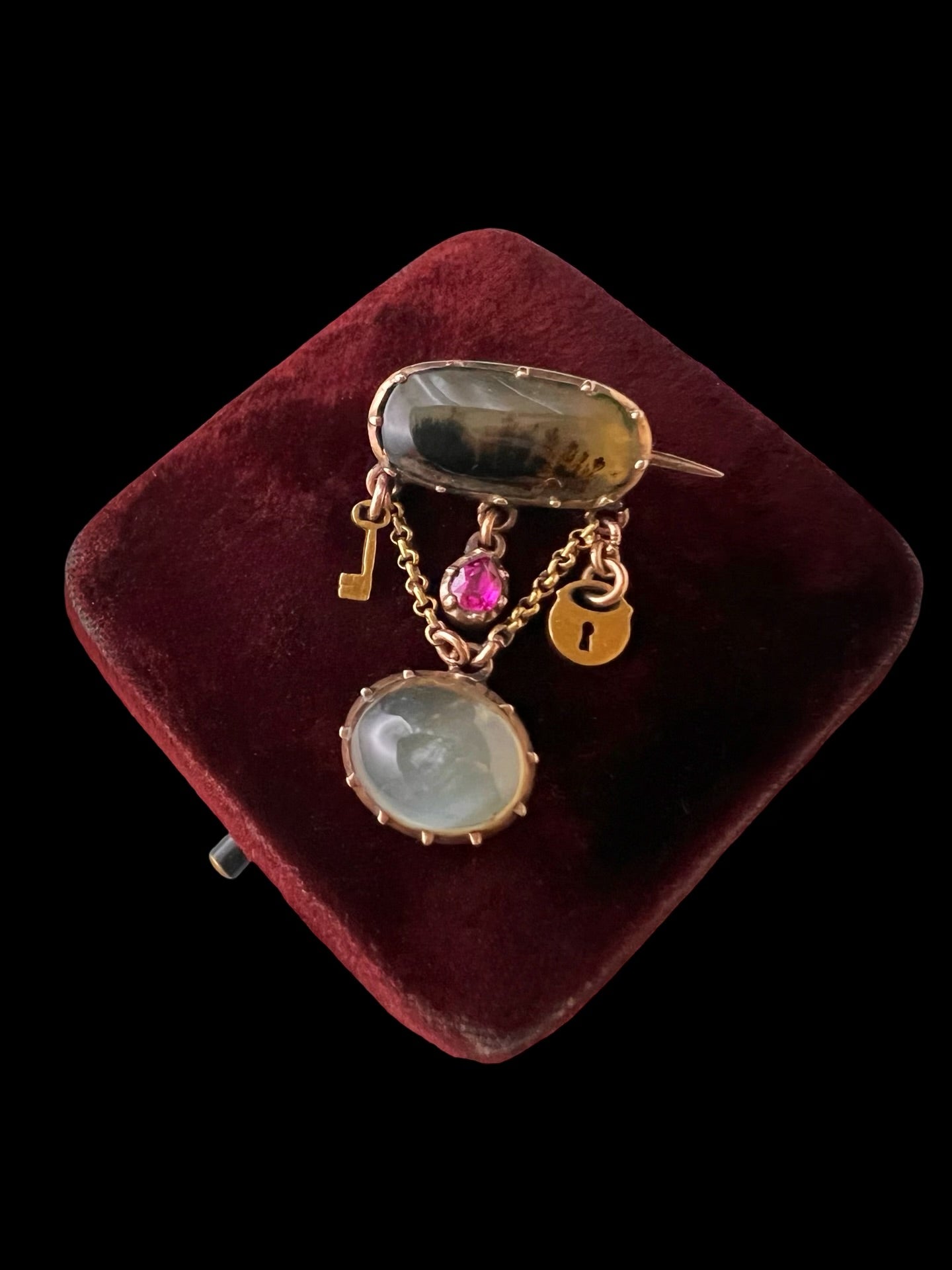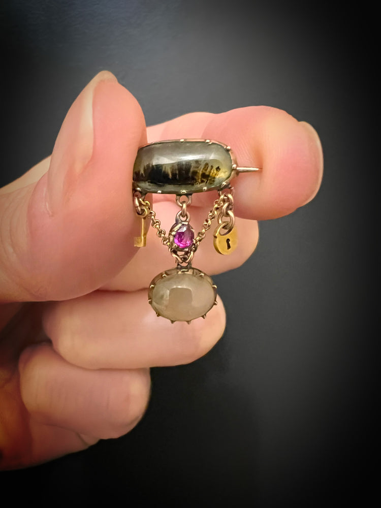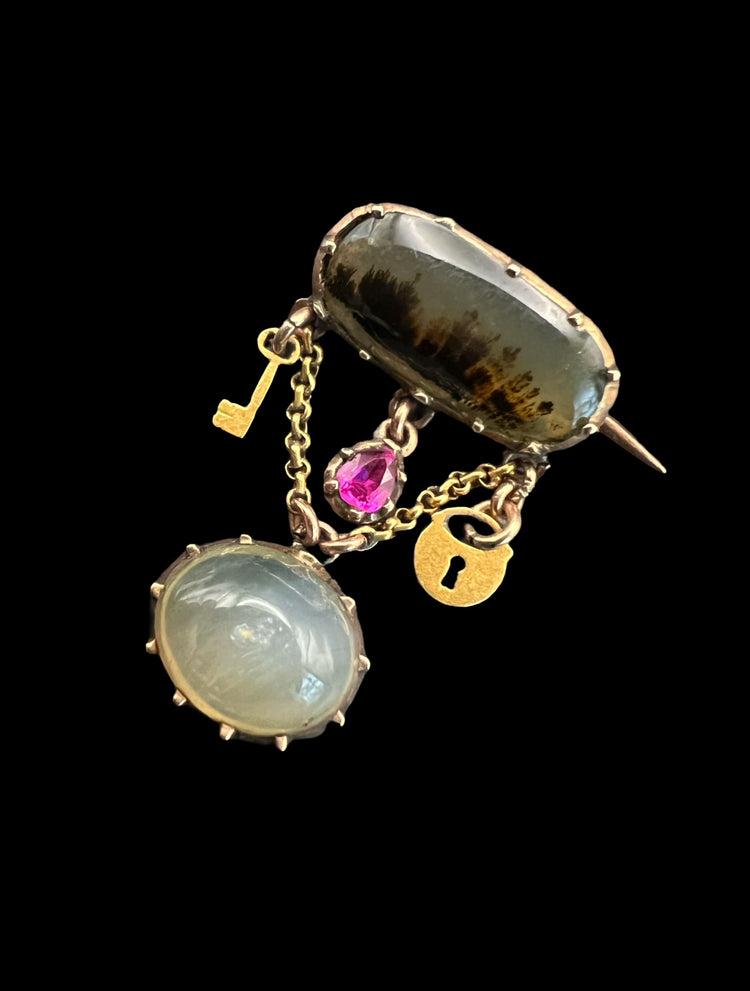 GEORGIAN PADLOCK & KEY GEM SET BROOCH