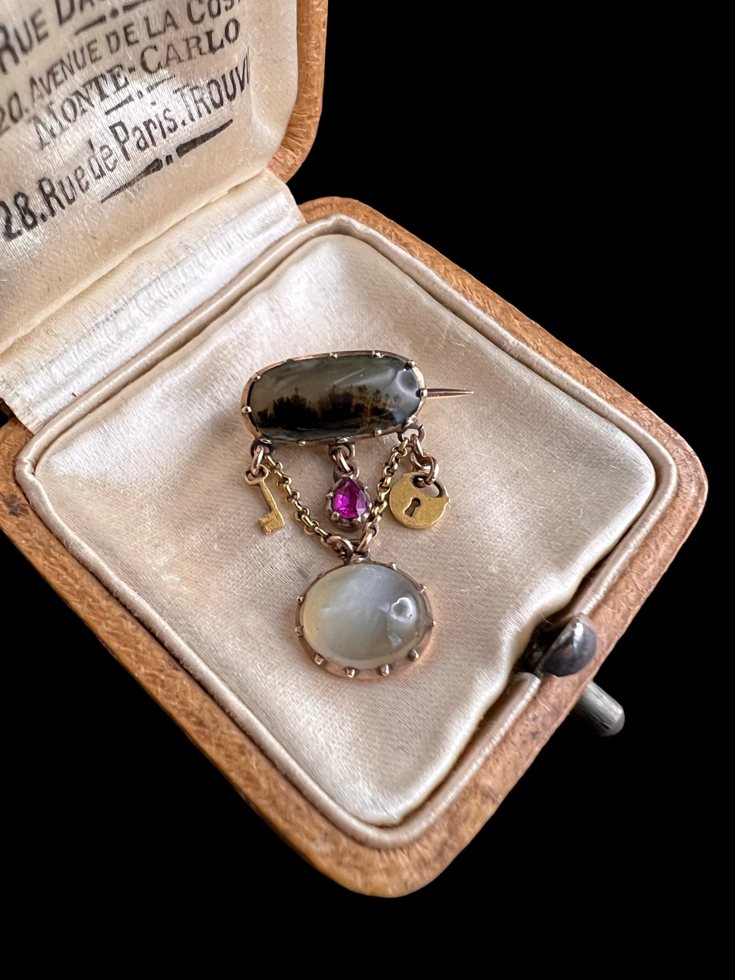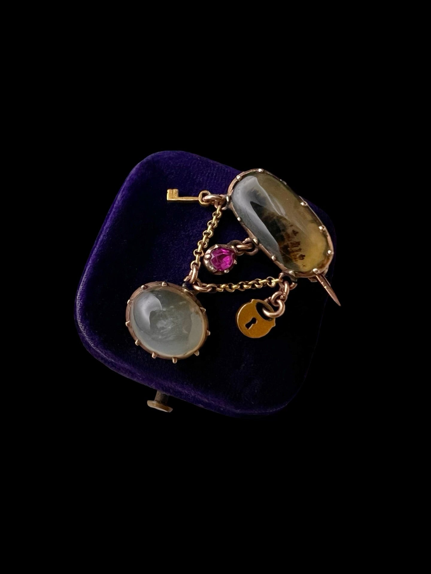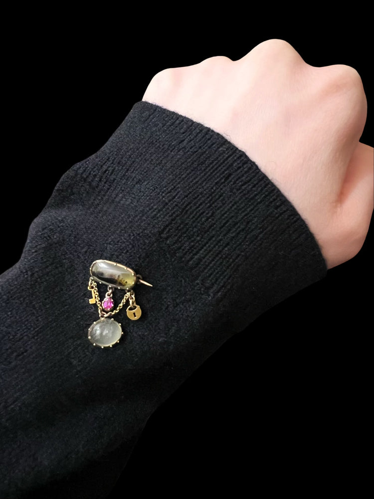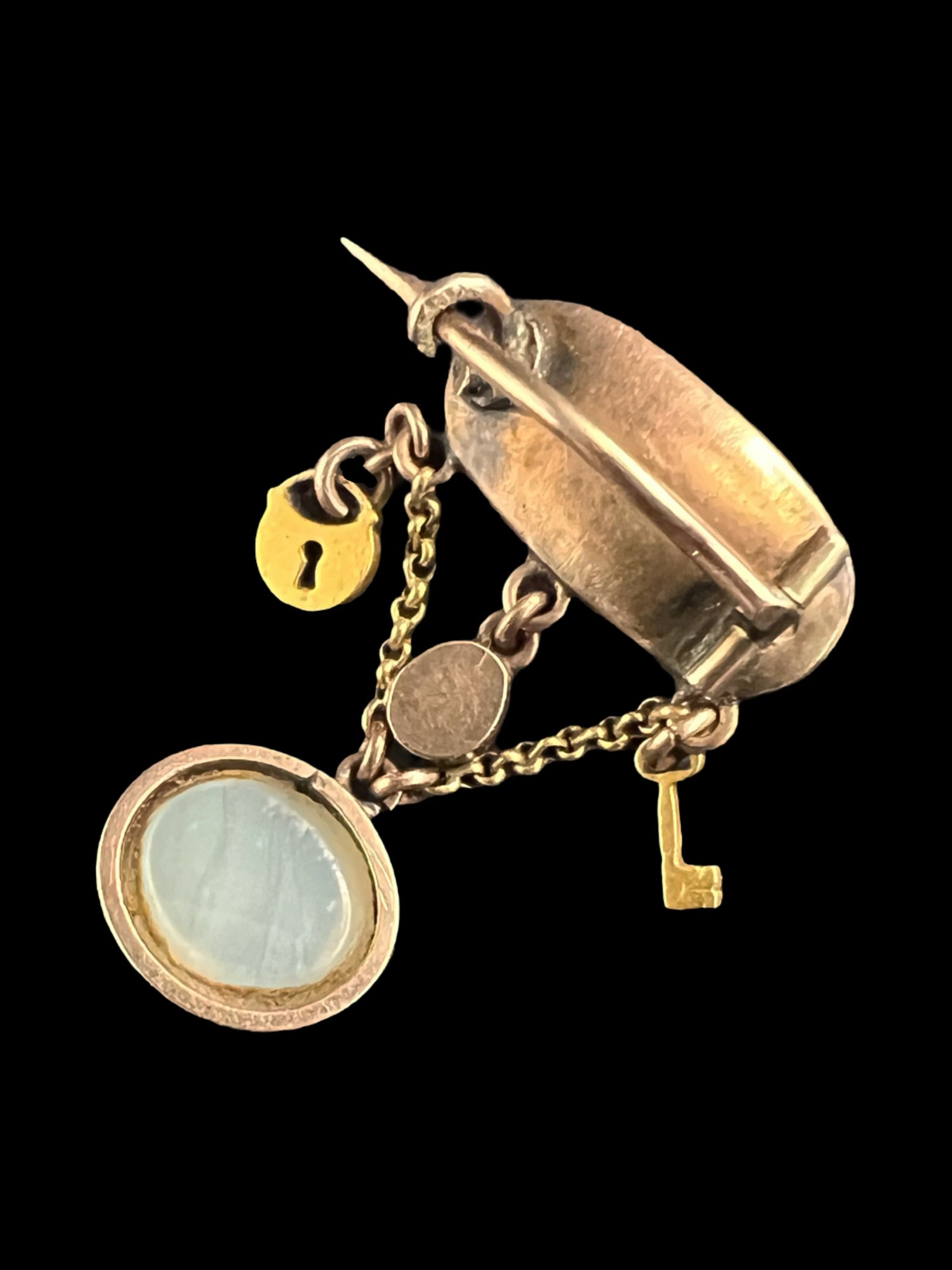 GEORGIAN PADLOCK & KEY GEM SET BROOCH