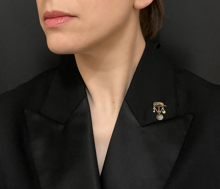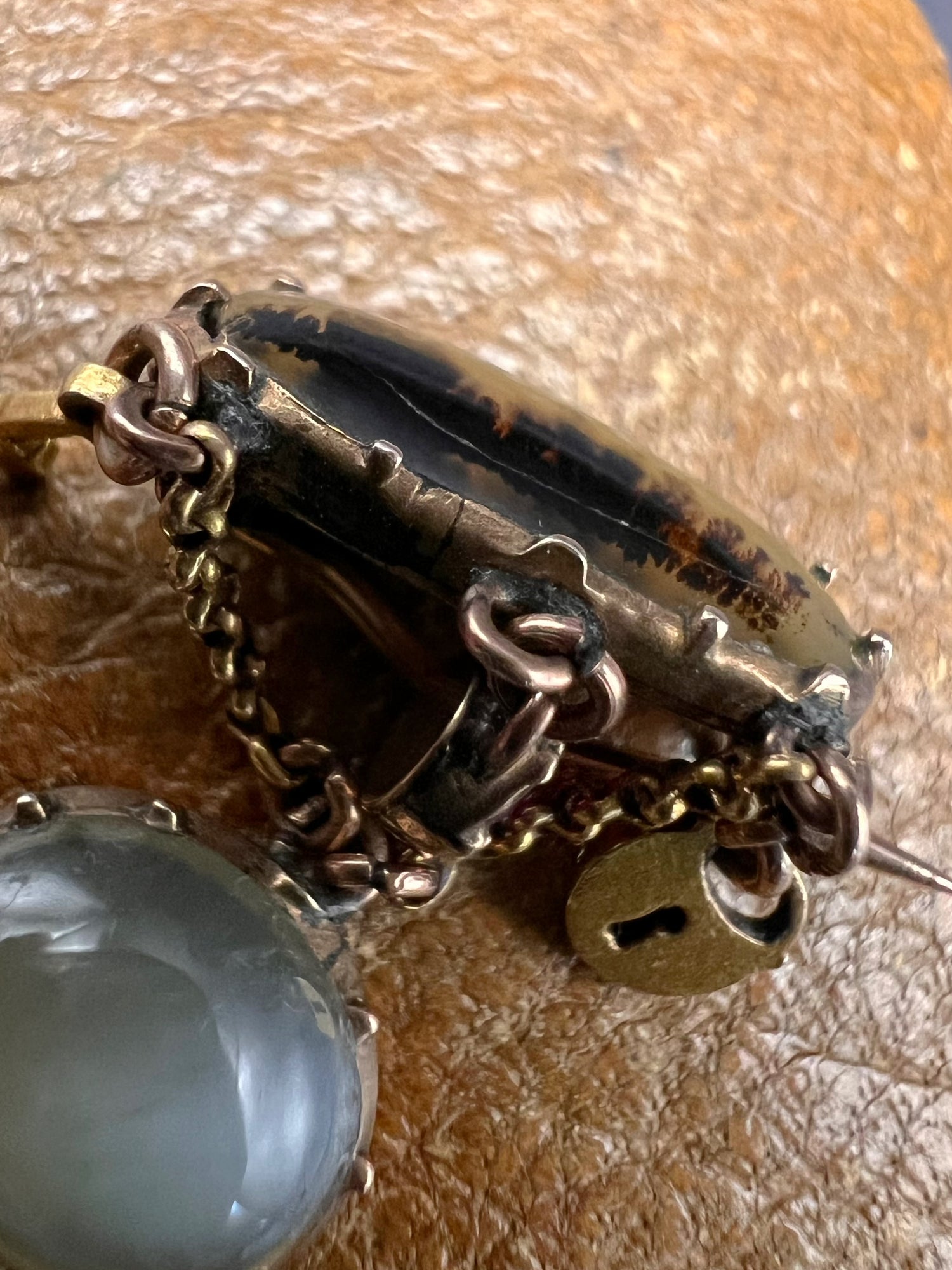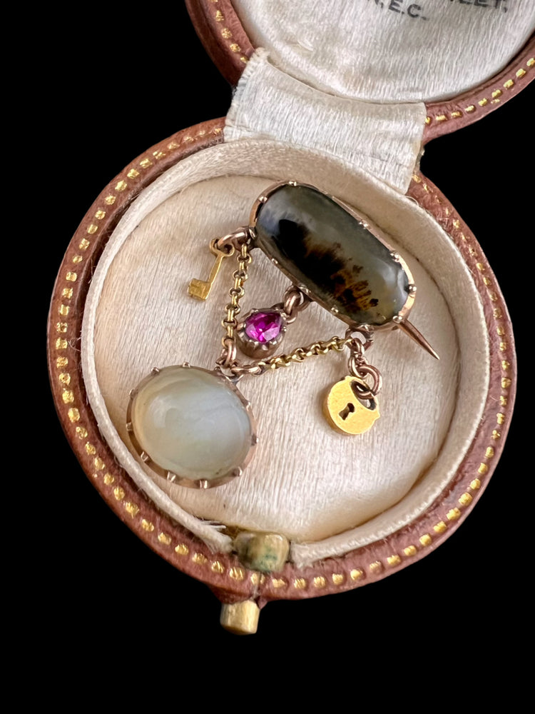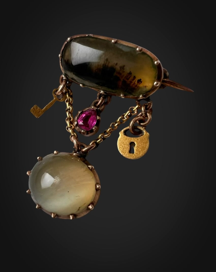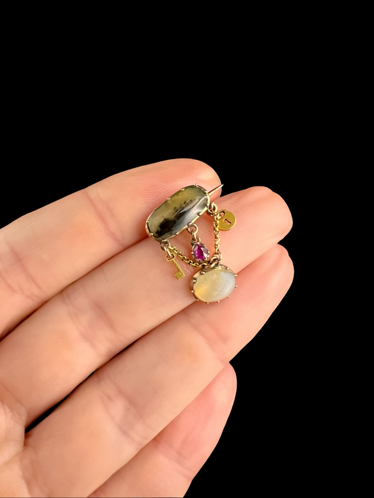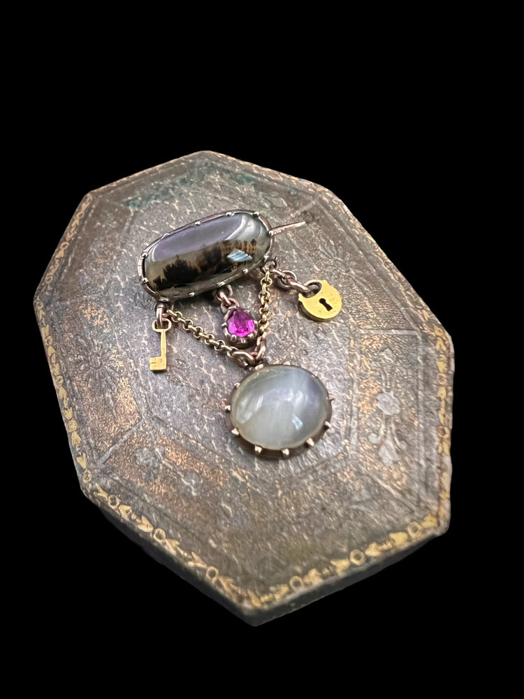 GEORGIAN PADLOCK & KEY GEM SET BROOCH