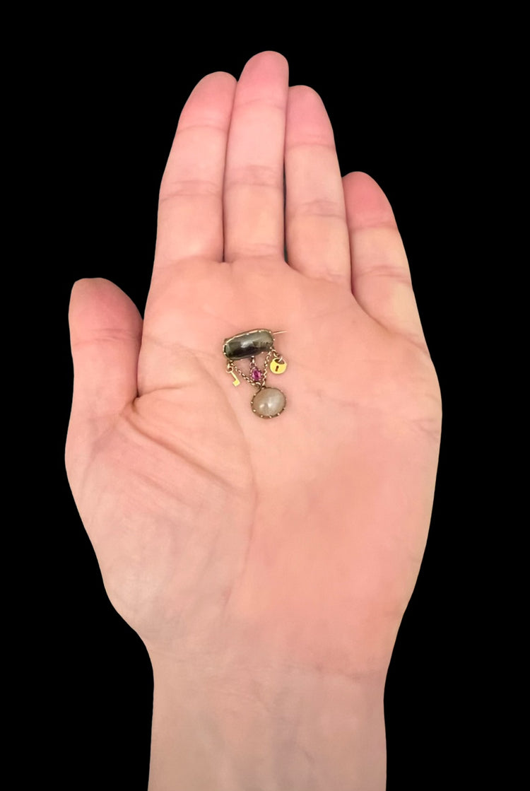 15ct gold, Agate, Ruby & Cats eye Chrysoberyl