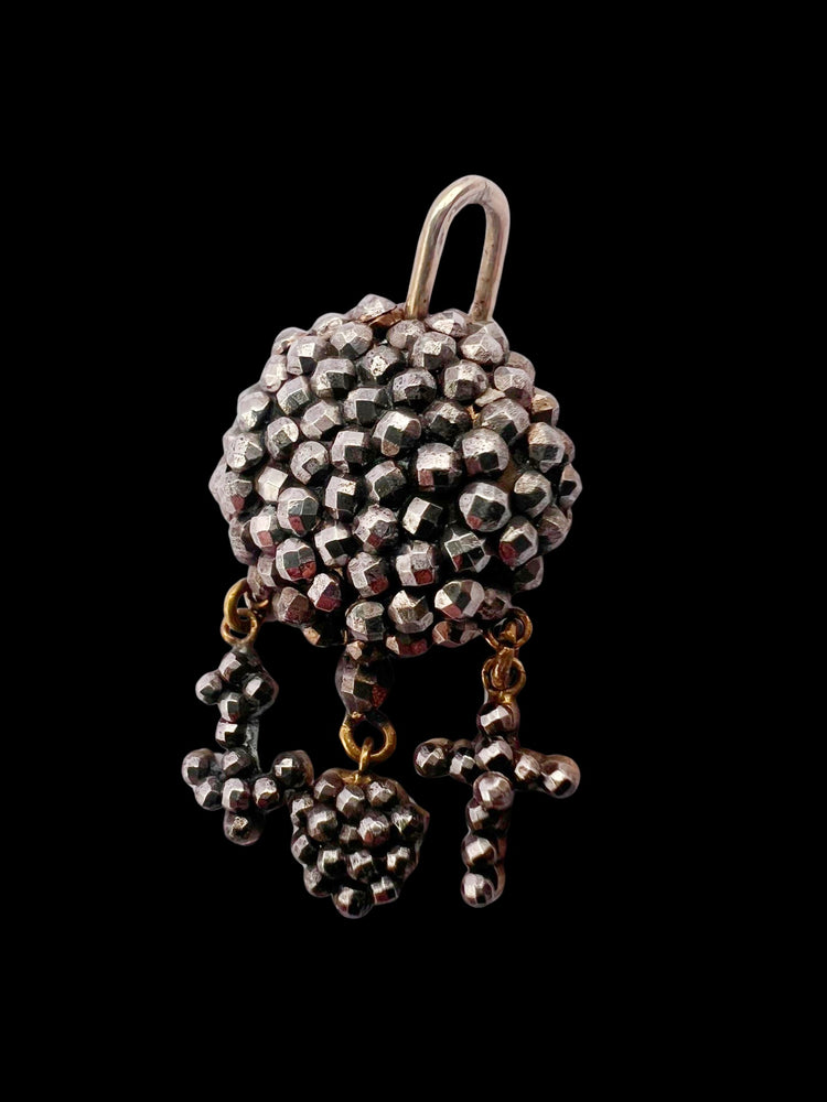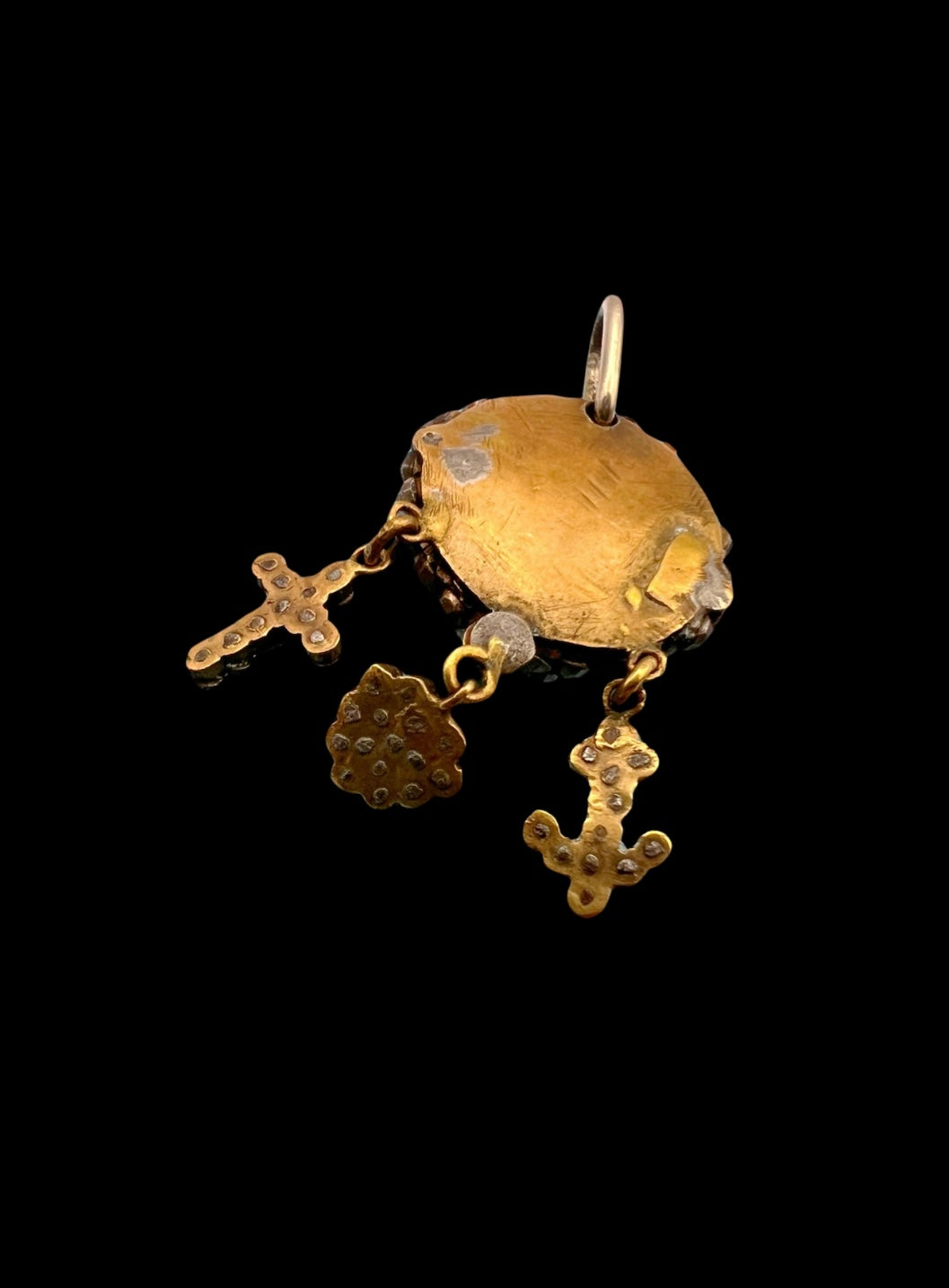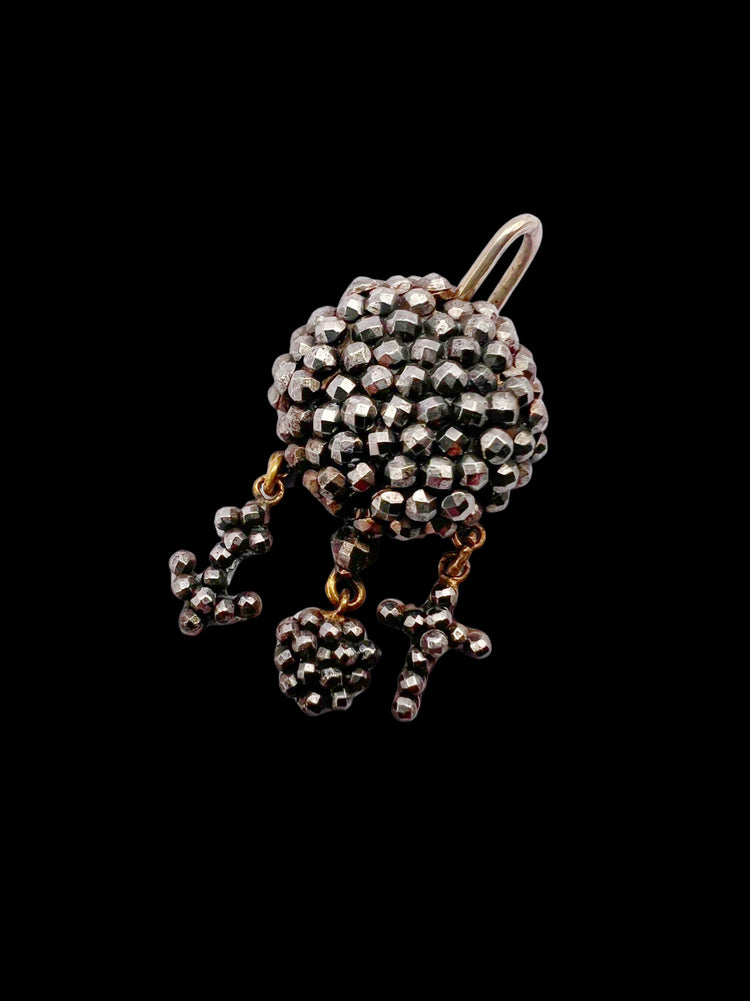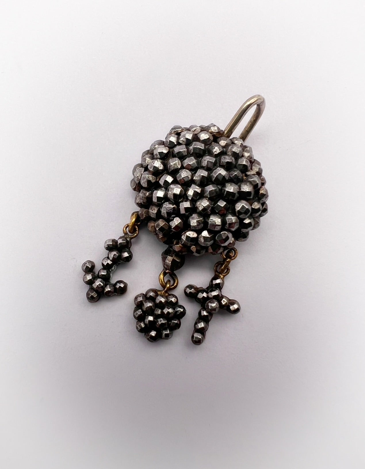 These hang from a chunky dome of cut steel, and a large metal bail.