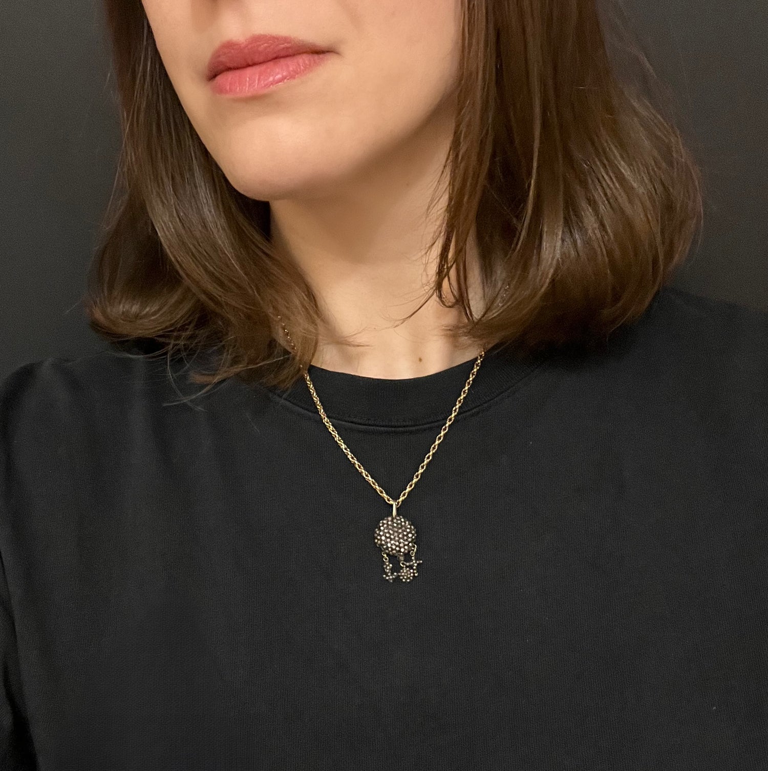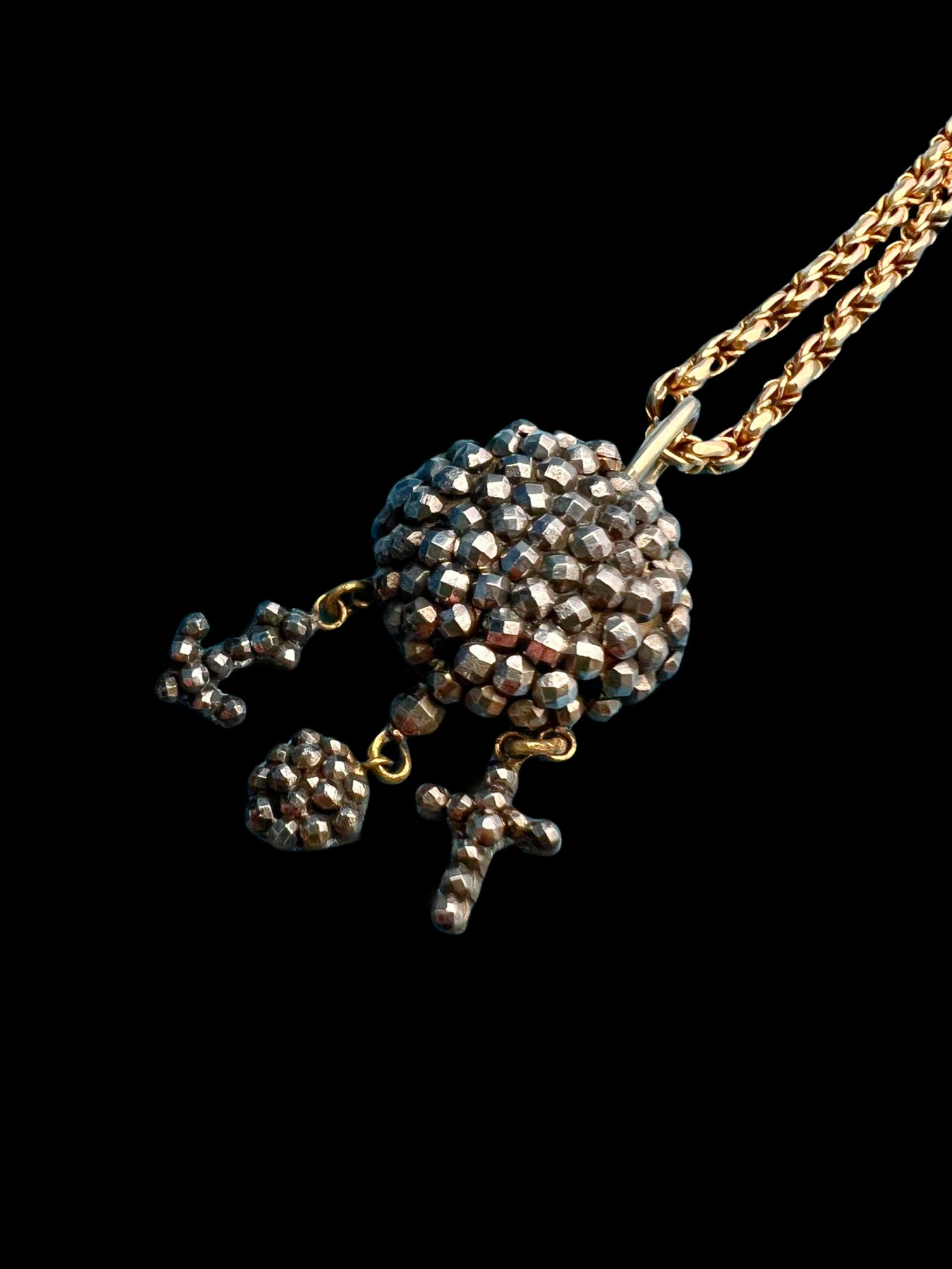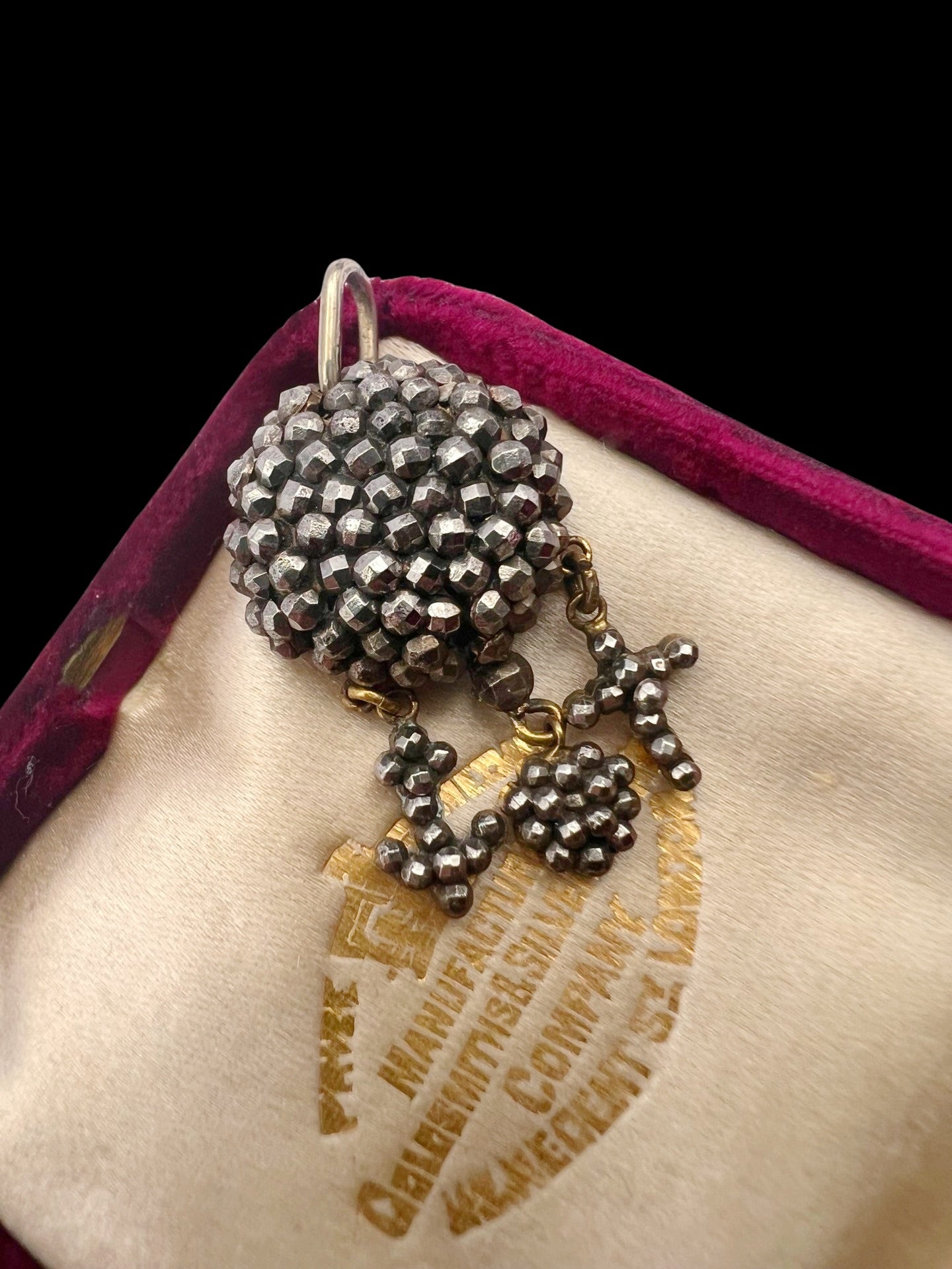 These hang from a chunky dome of cut steel, and a large metal bail.