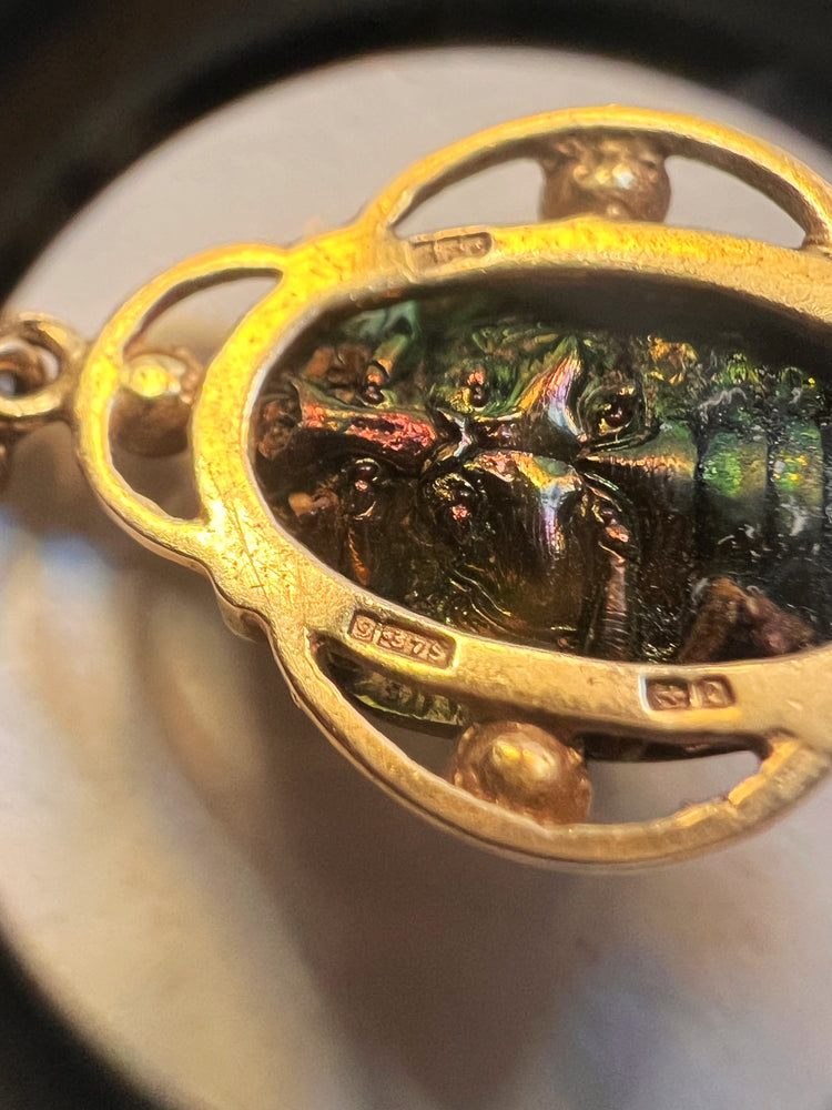 The gold setting is open at the back, so you can see the full detail of the beetle, which is so fascinating.