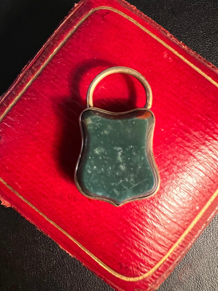 This is a lovely Victorian Scottish Agate and 9ct gold padlock pendant.