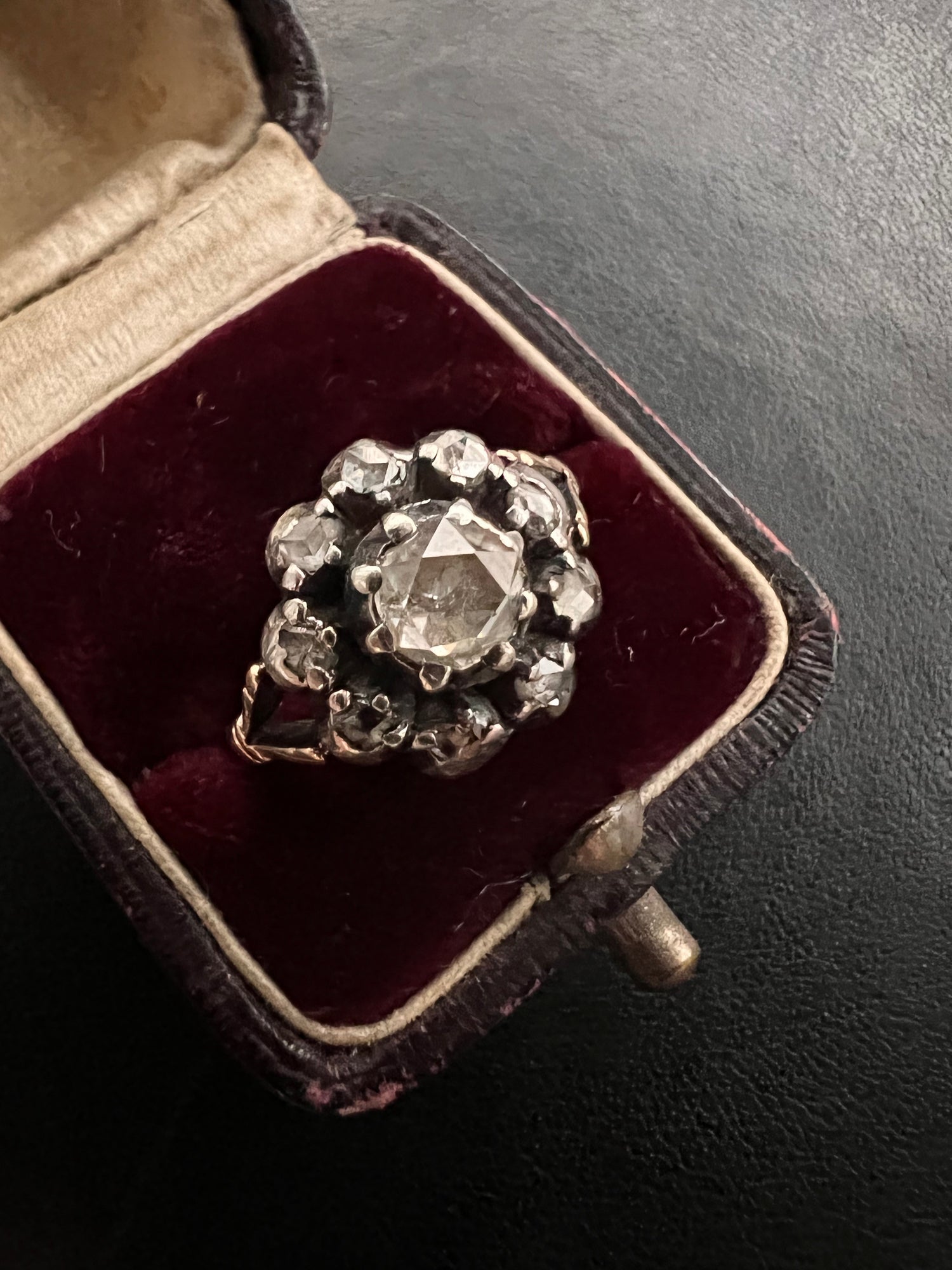 We recommend removing pieces of jewellery before washing hands or showering, as water can damage the antique settings.