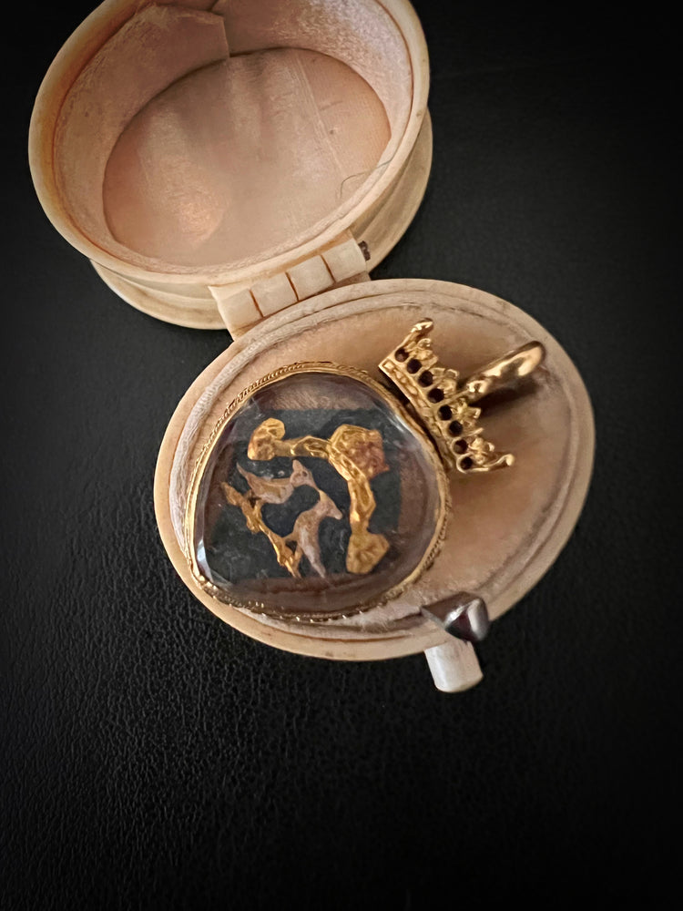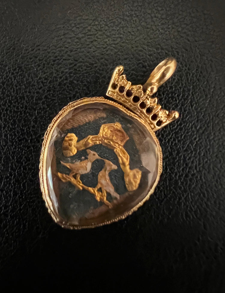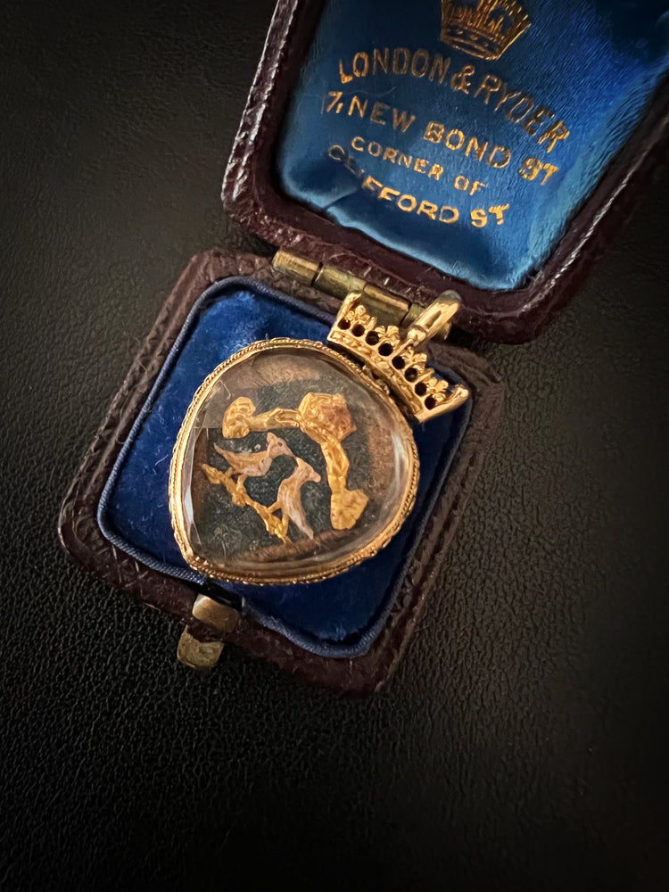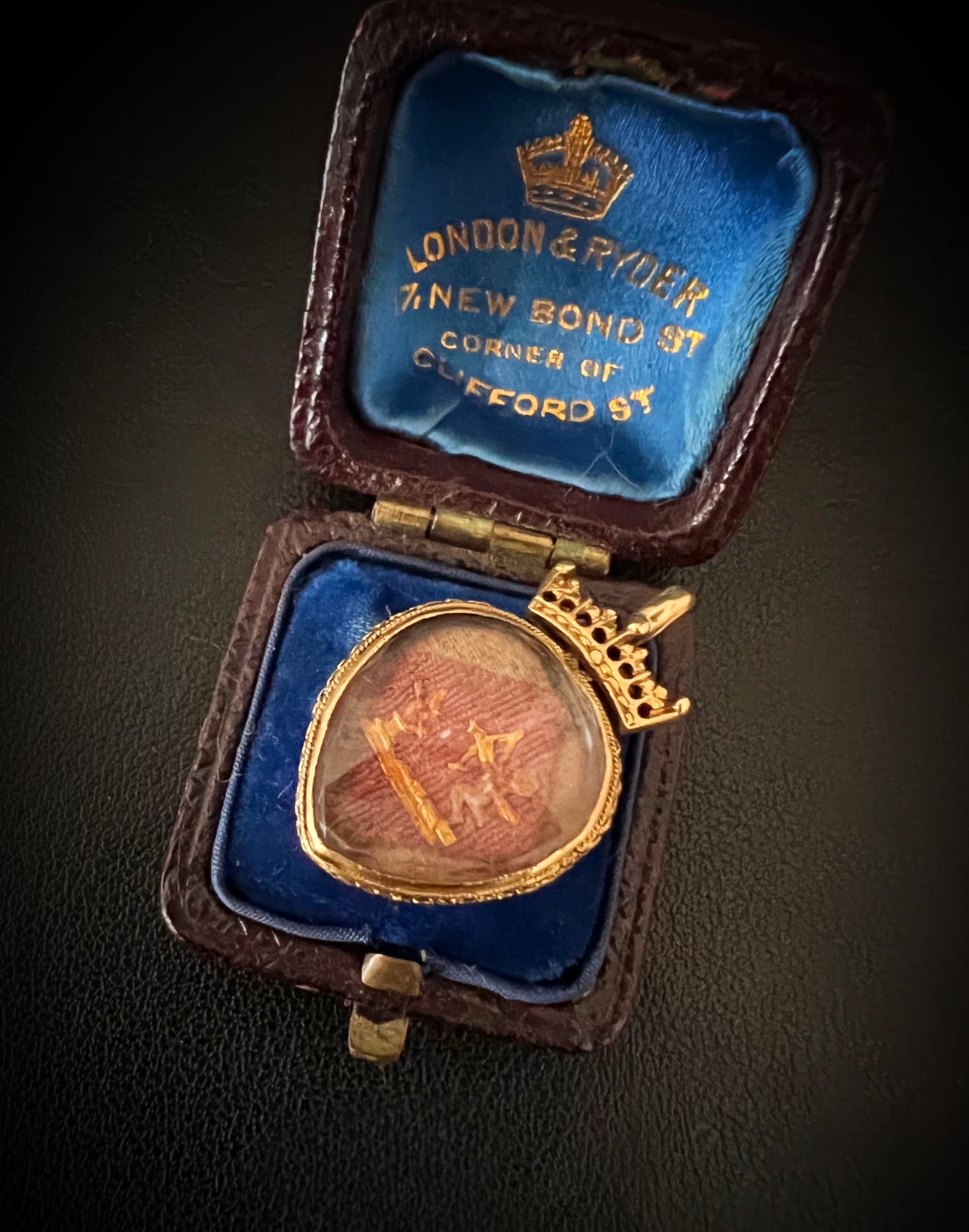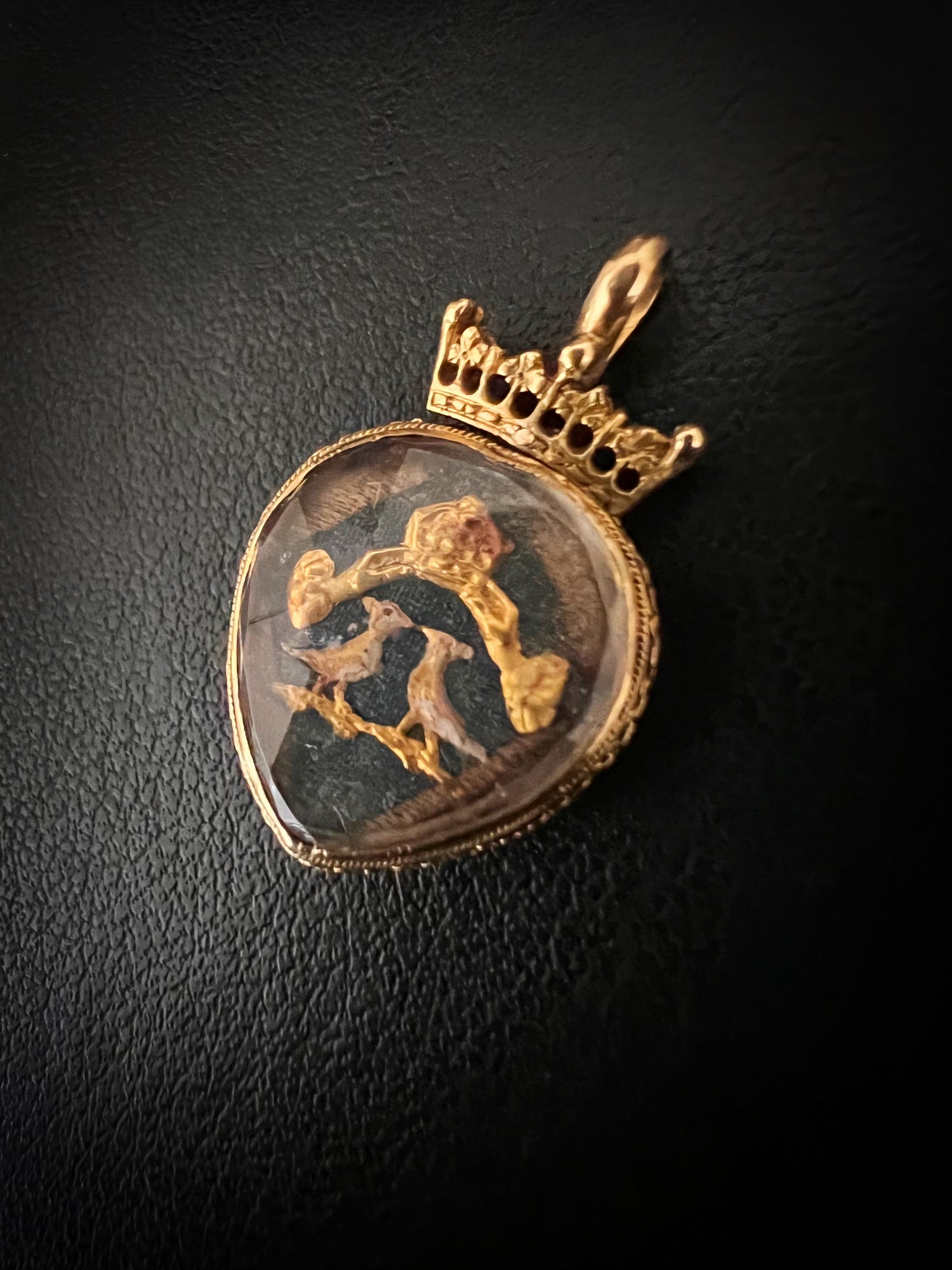 The heart is made of high carat gold with a roped border and topped with a gorgeously modelled crown.