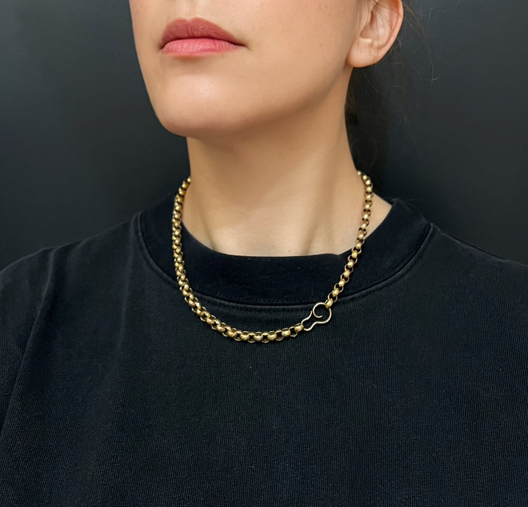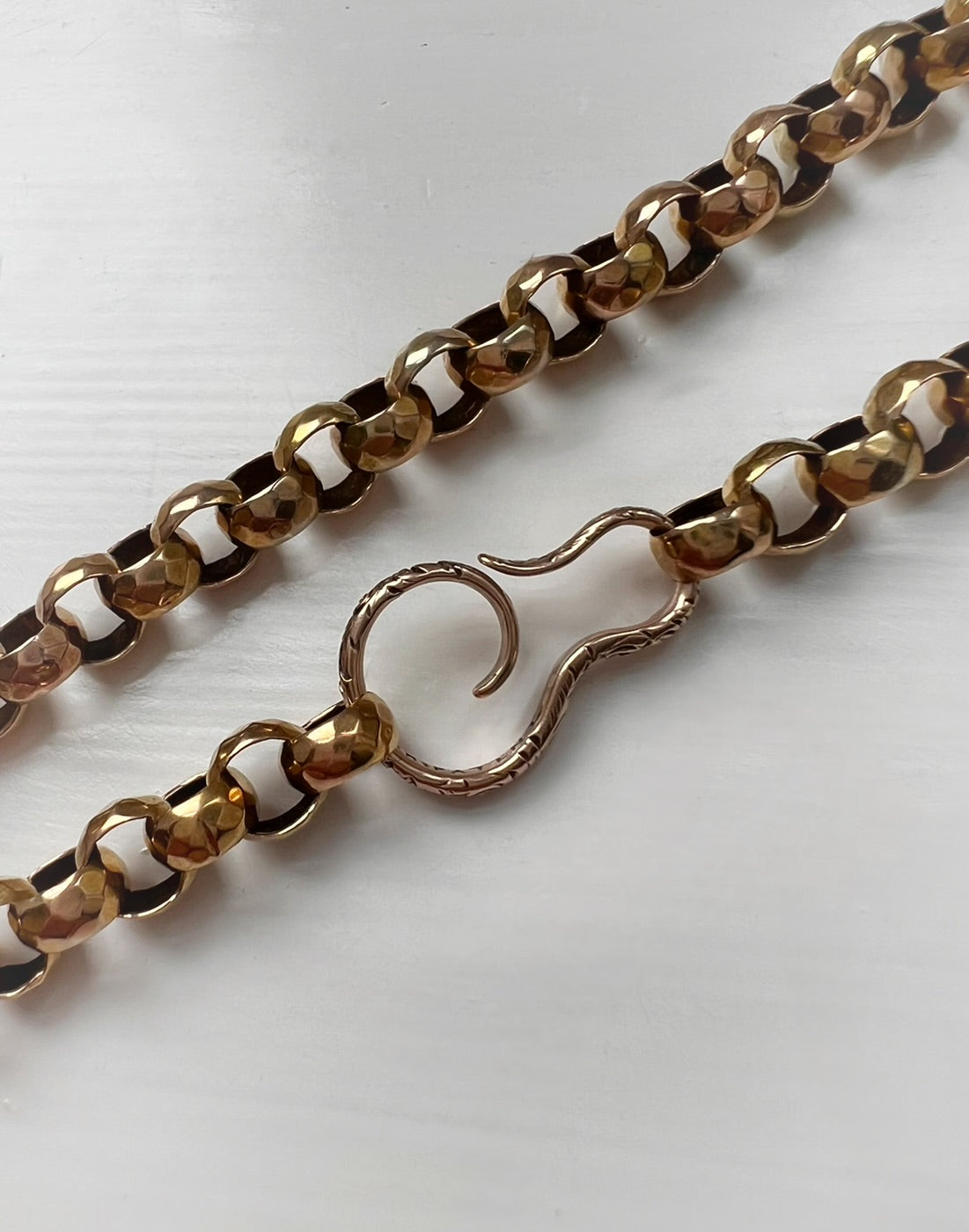 A completely unique 9ct gold swirl chain extender.