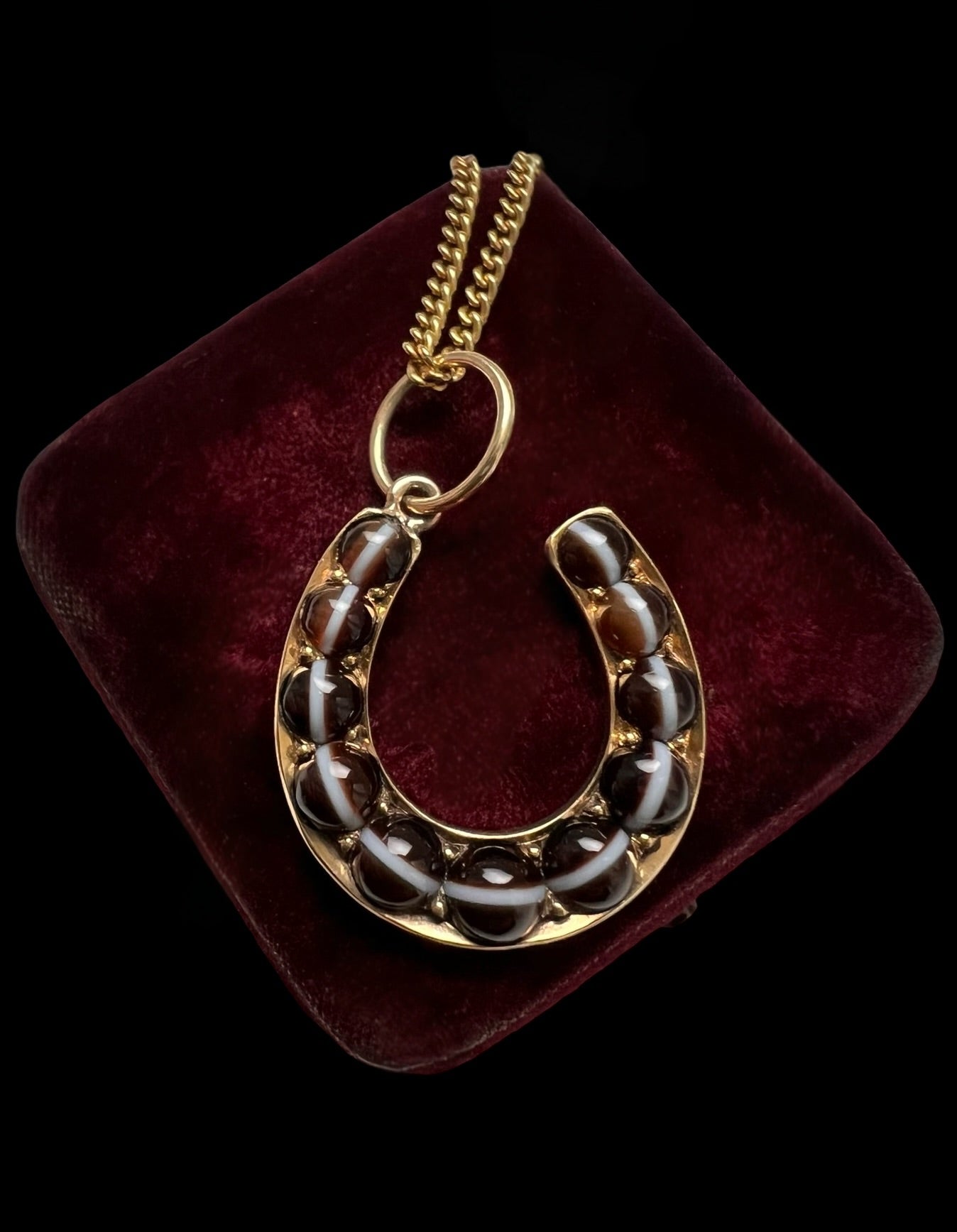VICTORIAN BANDED AGATE HORSESHOE PENDANT