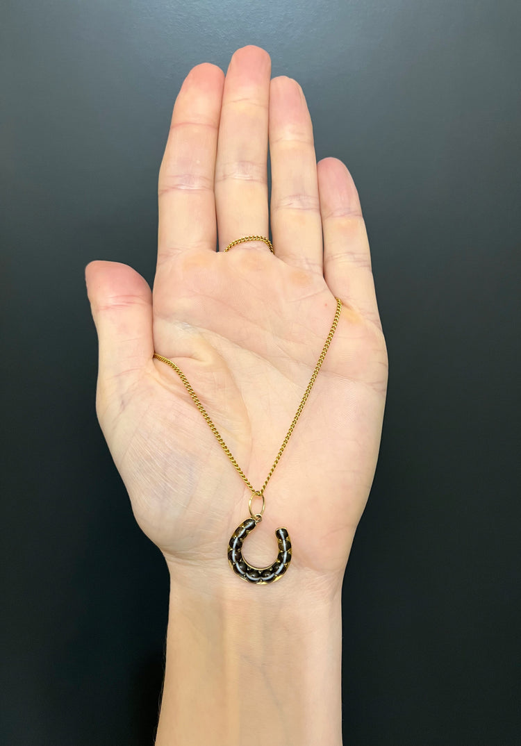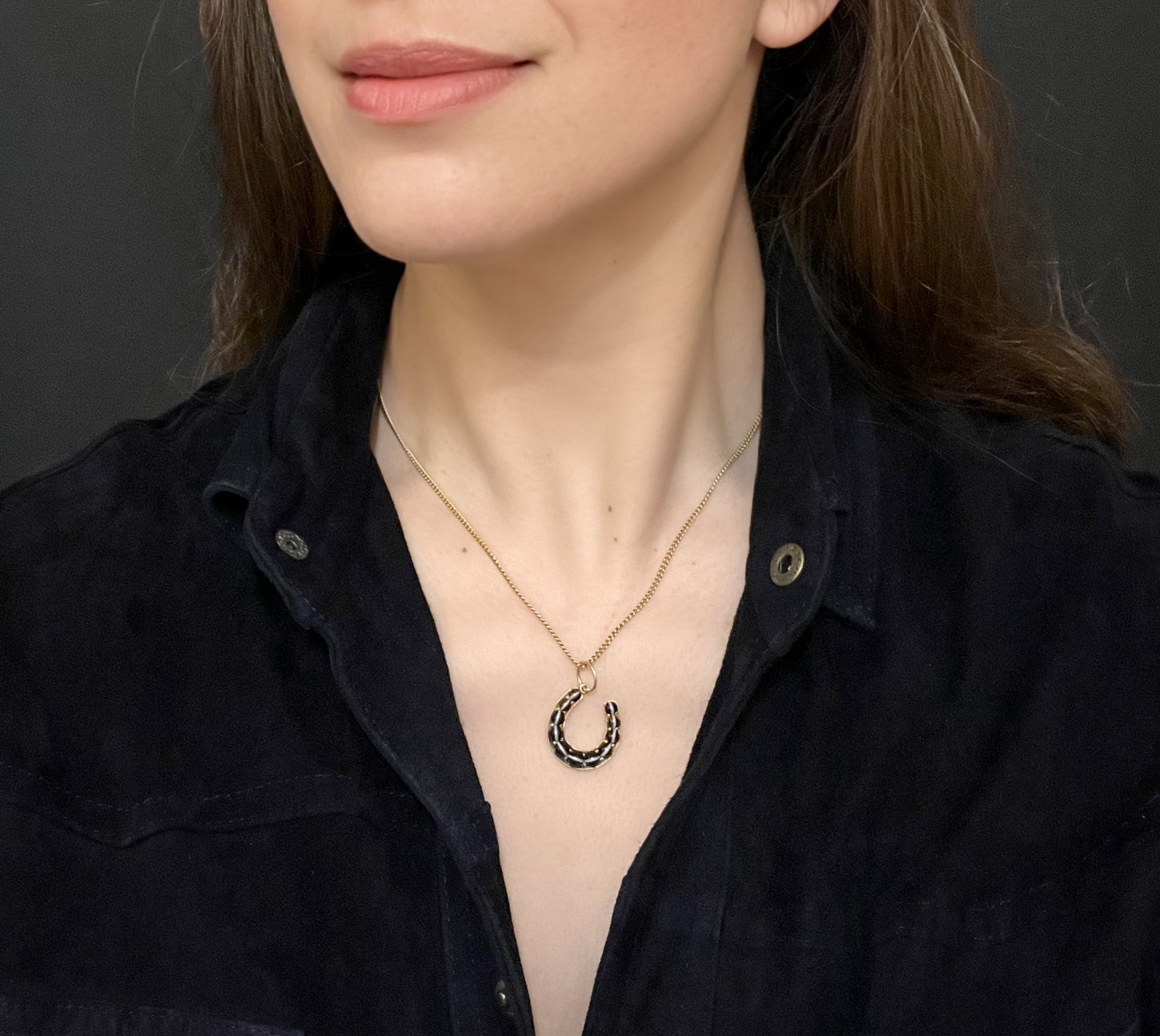 The horseshoe looks fantastic worn alone or with a bunch of charms.