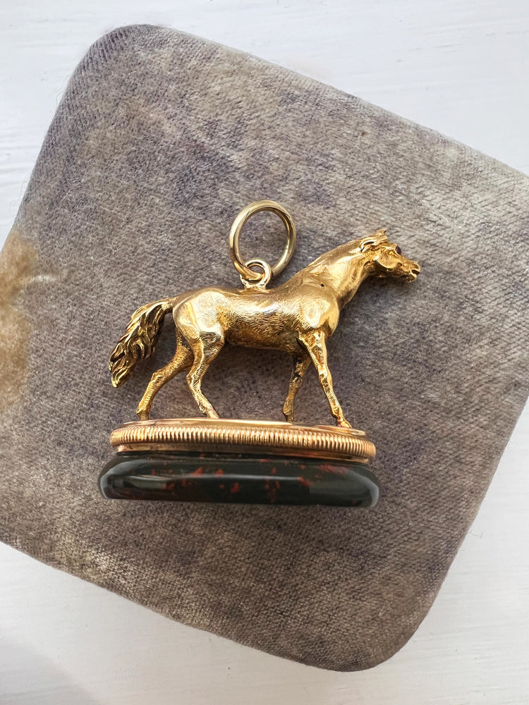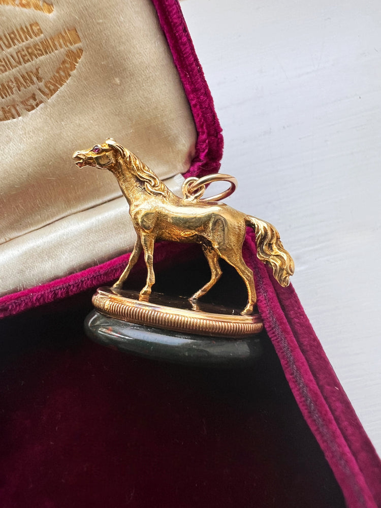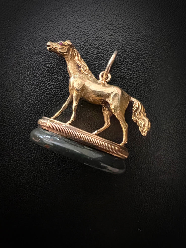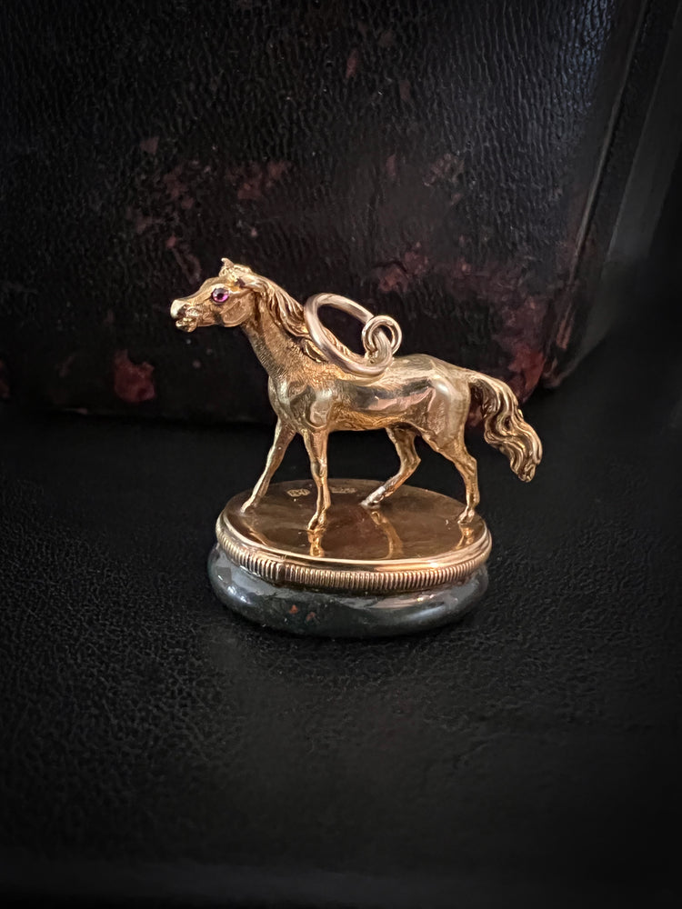 A late 19th century 14ct gold fob pendant depicting a horse.