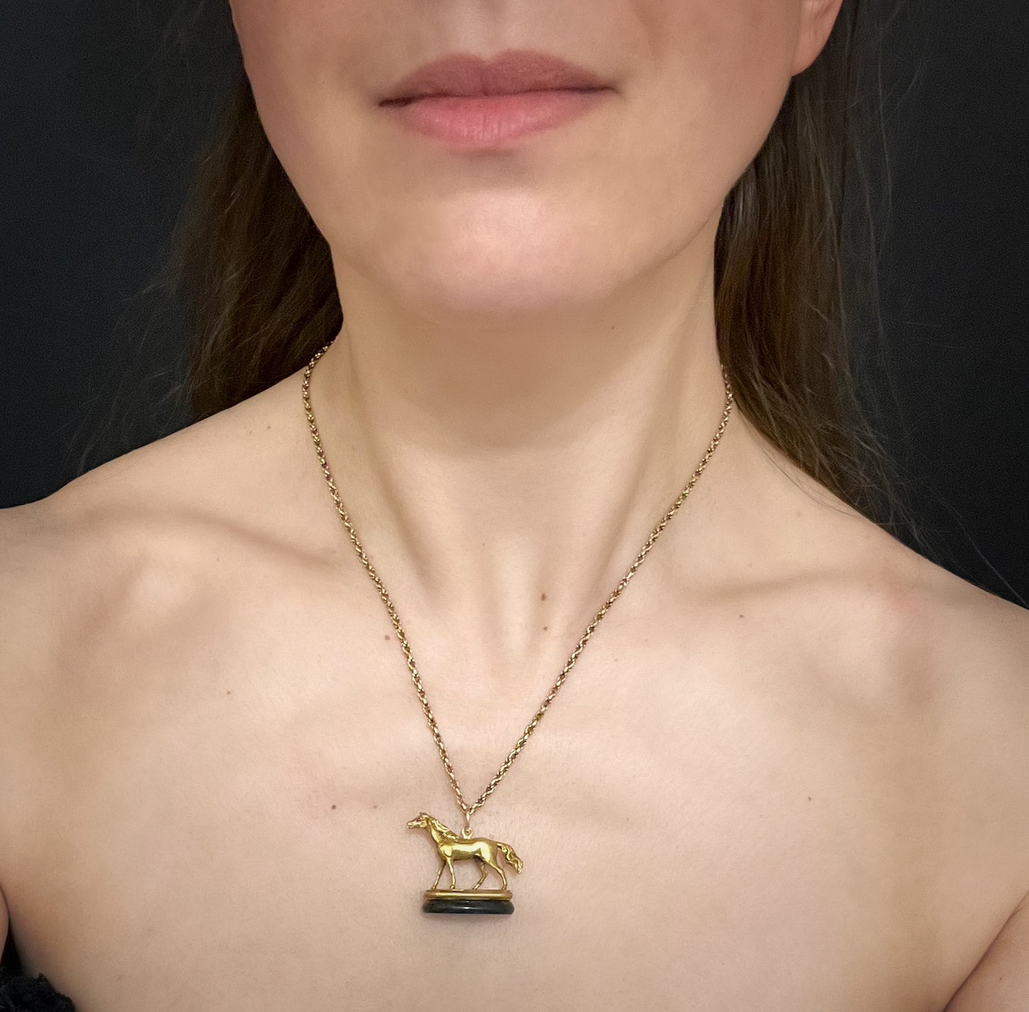 19TH CENTURY FINELY MODELLED HORSE FOB PENDANT