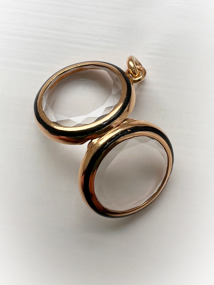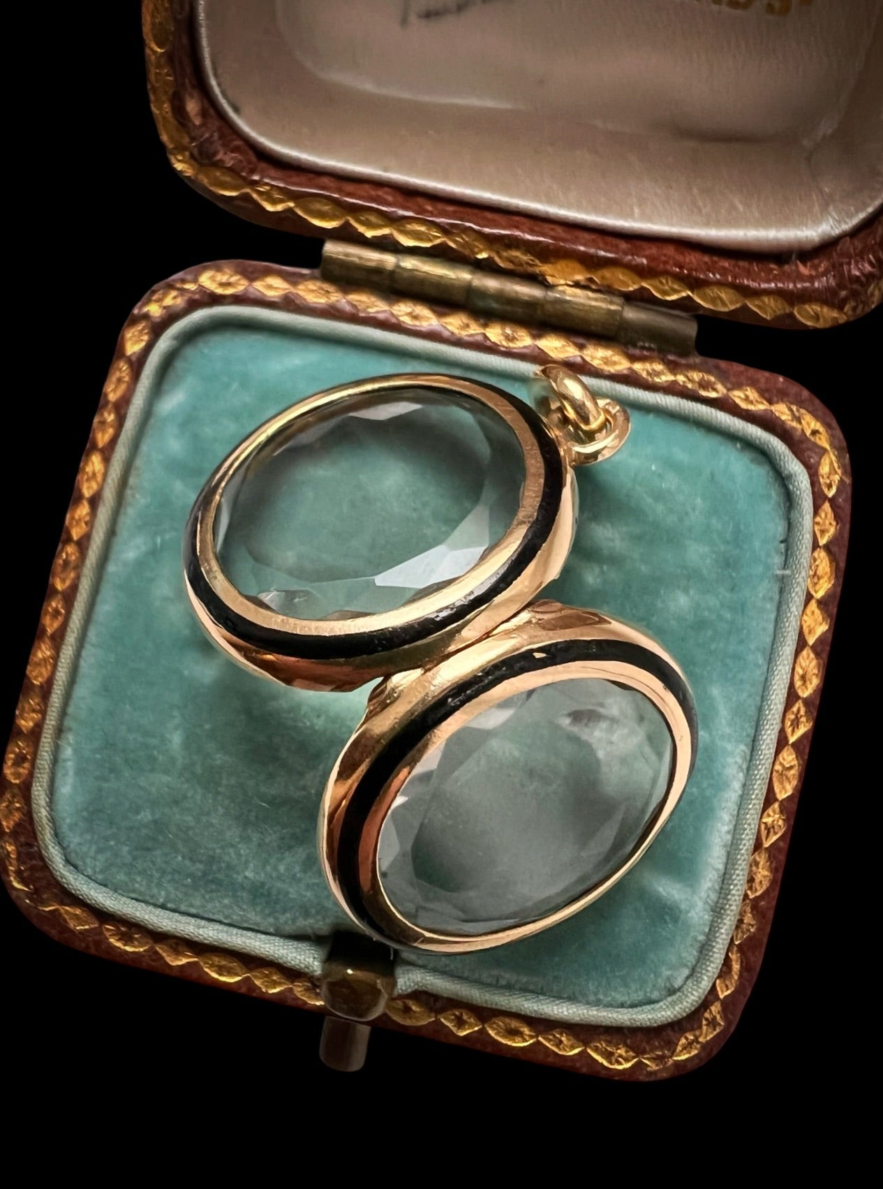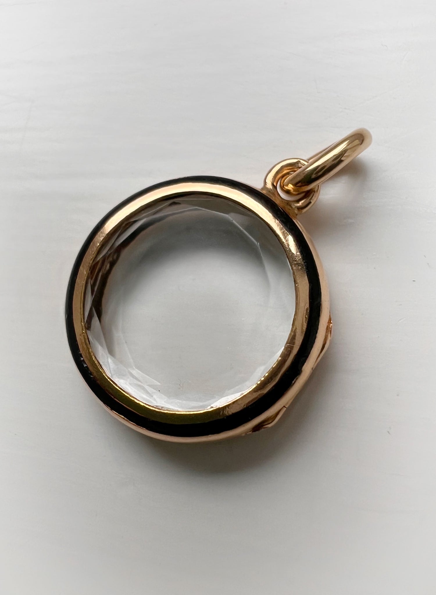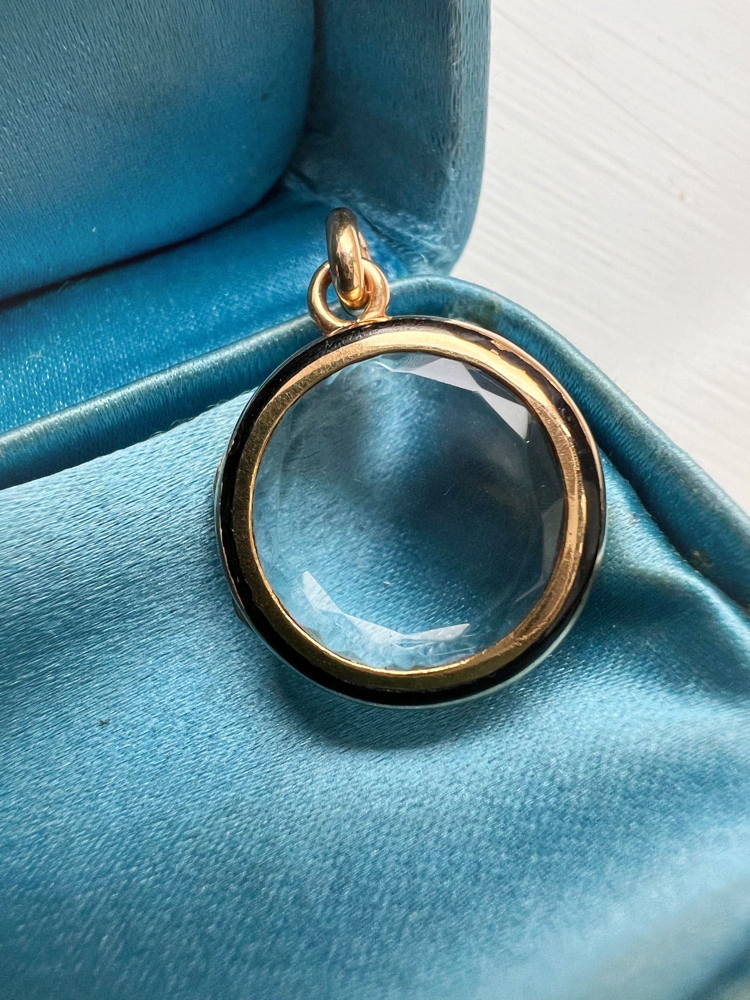 19TH CENTURY FACETED GLASS & ENAMEL 18CT GOLD LOCKET