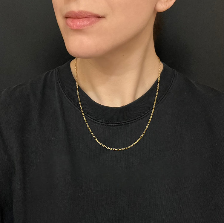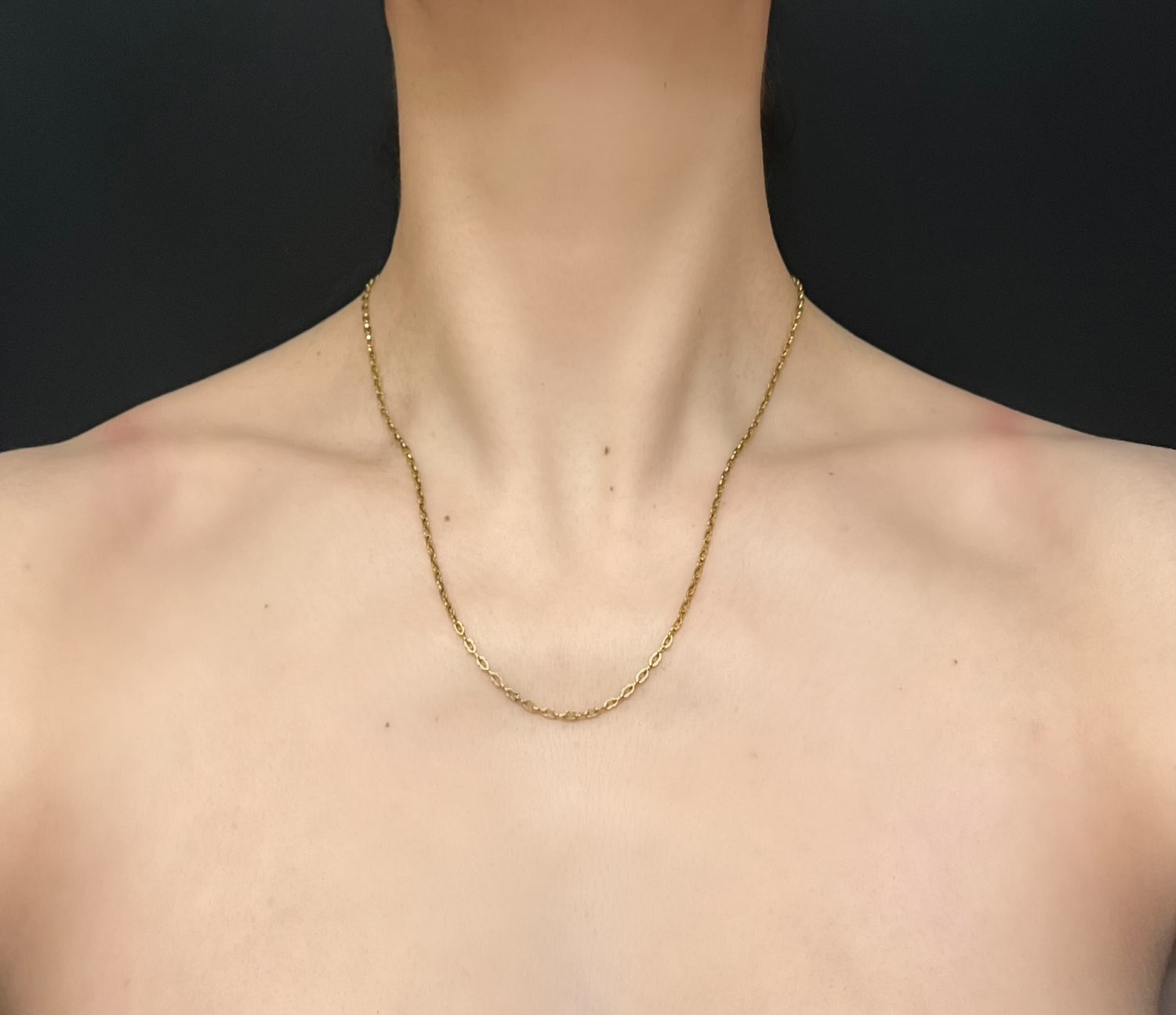 The gold is a nice yellow tone, and the links are a fancy take on the classic belcher.