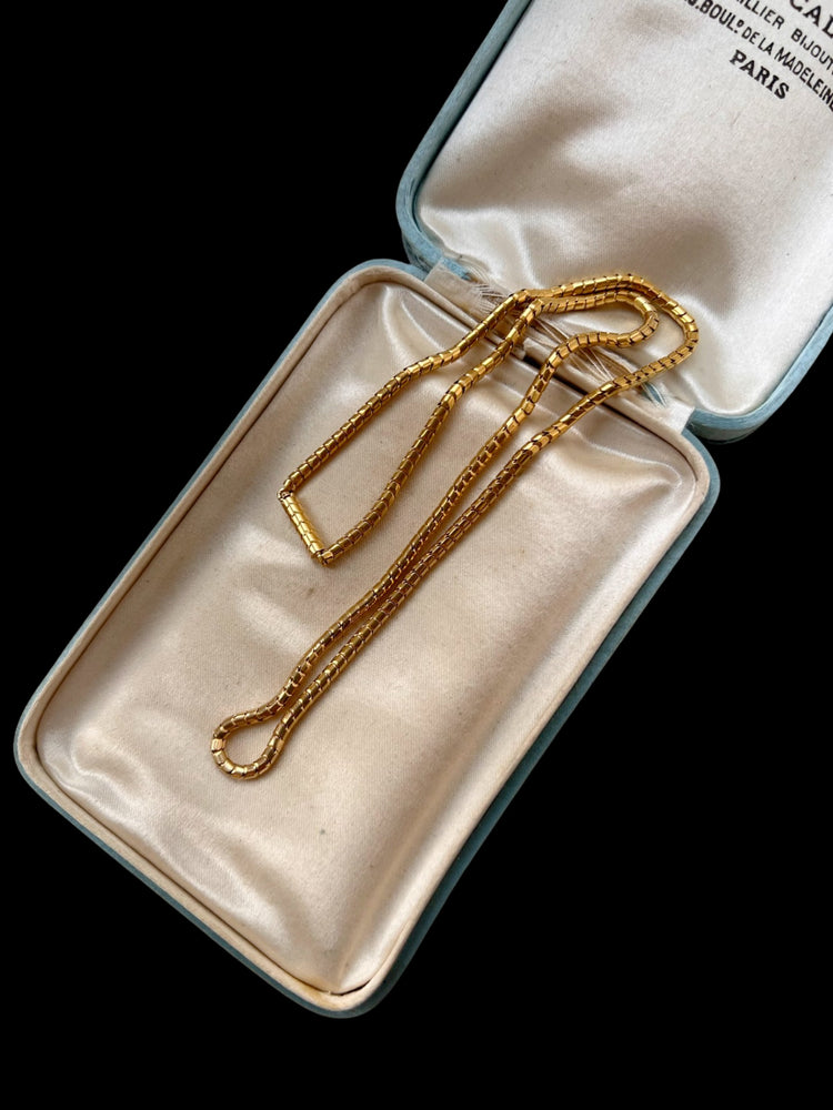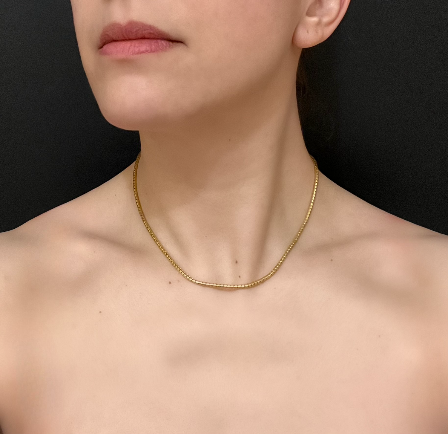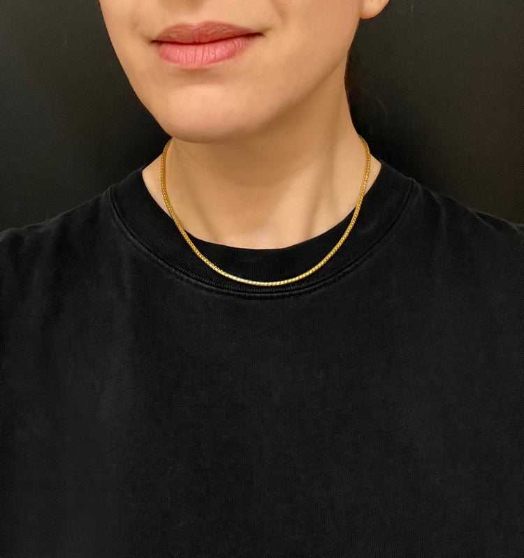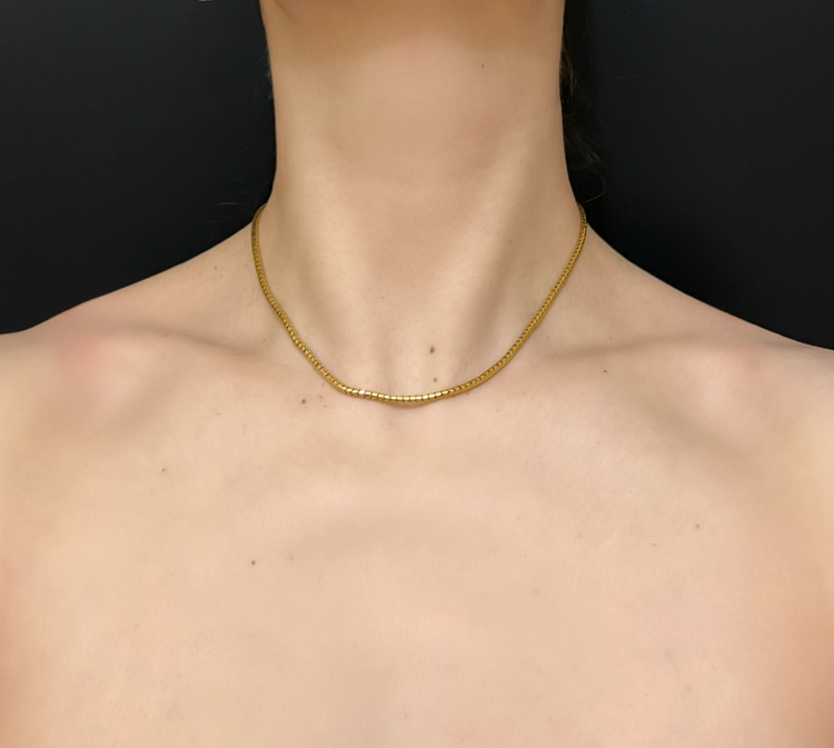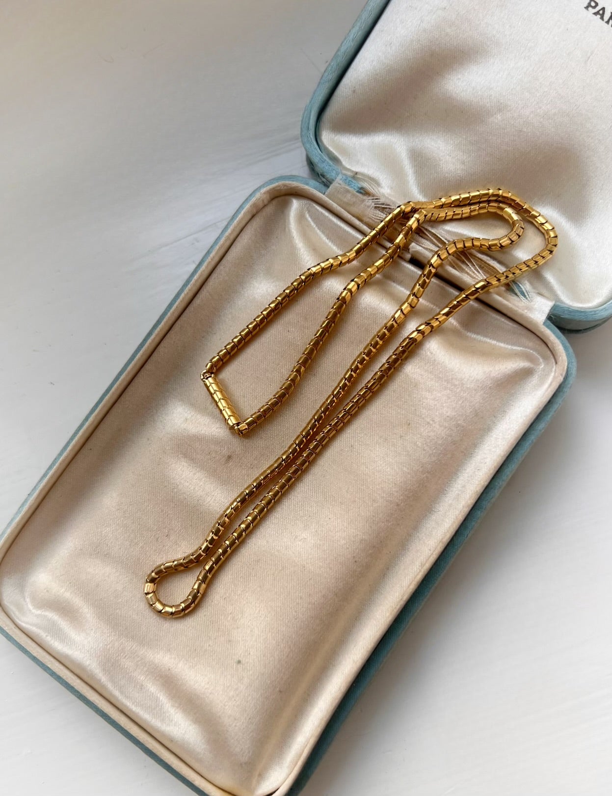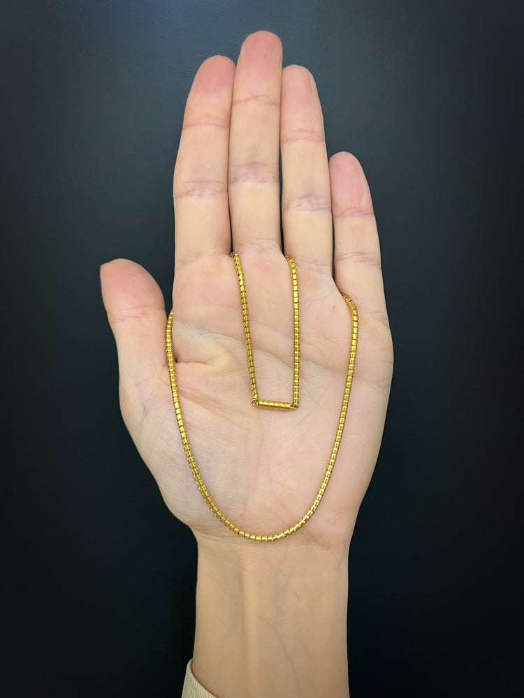 The barrel clasp has a snake link pattern engraved in the gold making it blend in perfectly with the chain.