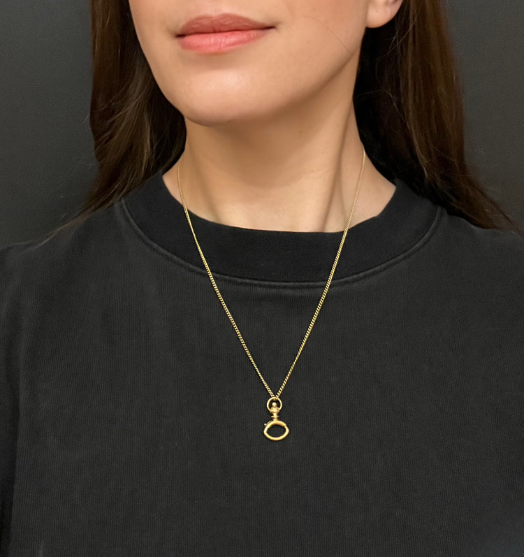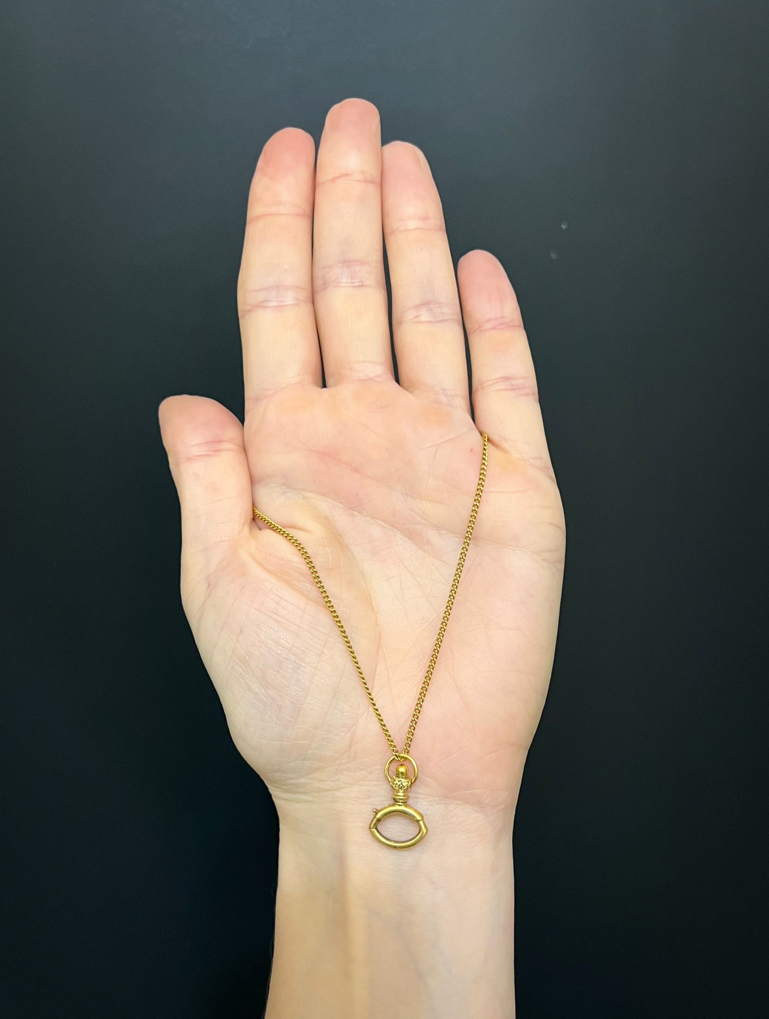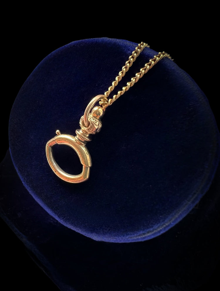 Made of solid 15ct gold, the design has an eye shaped bolt, which is a great shape for adding multiple pendant to a chain, it’s also a good length to use as a chain extender.