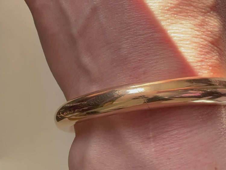Hallmarked 15ct on inside of bangle.