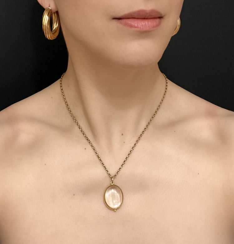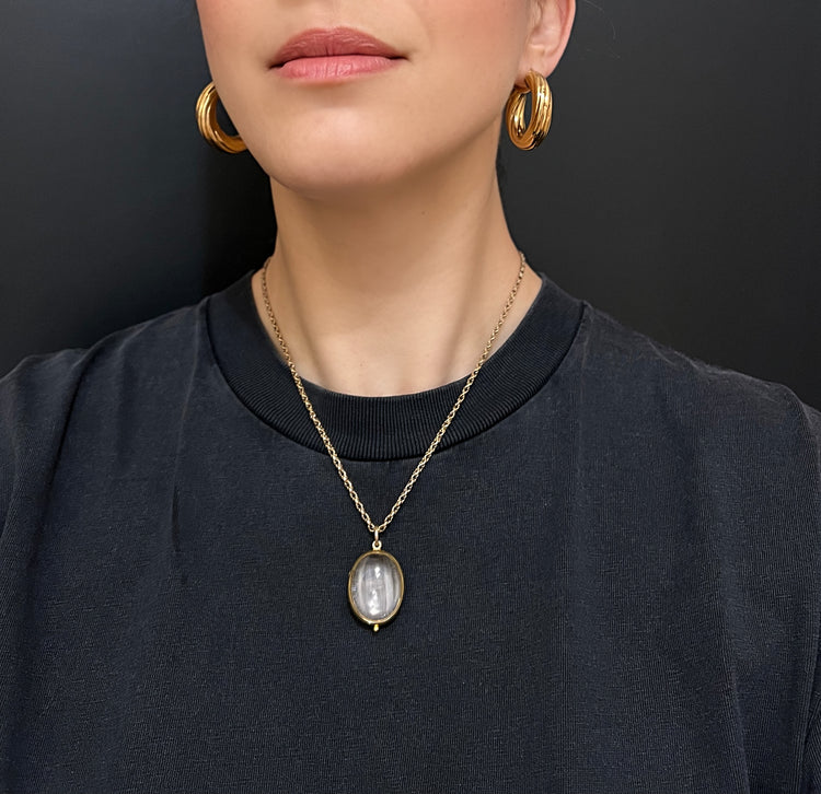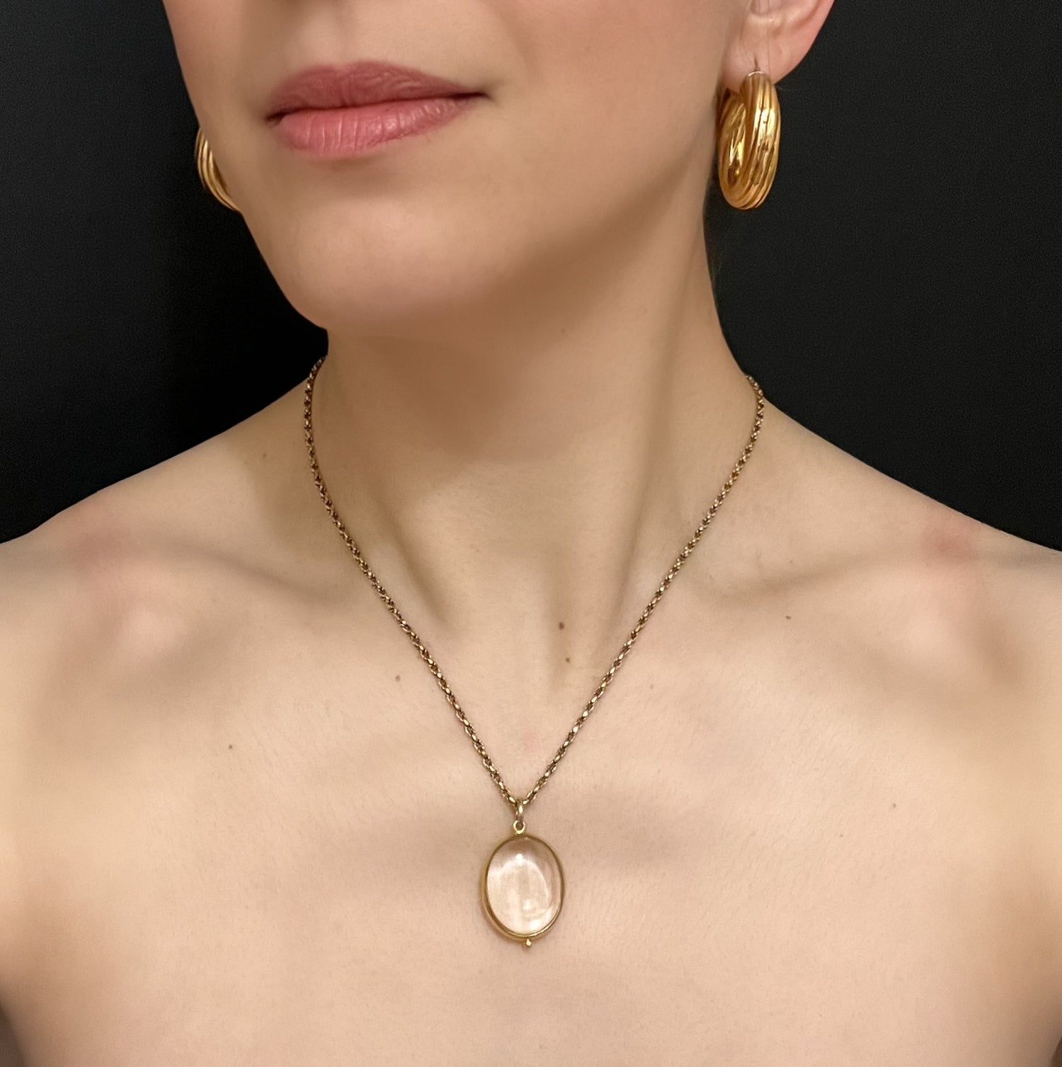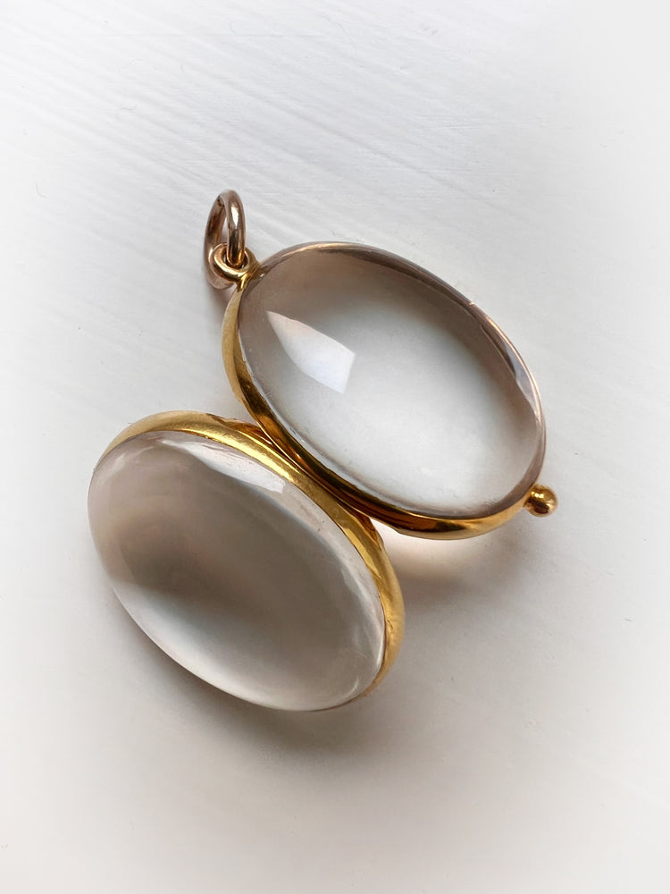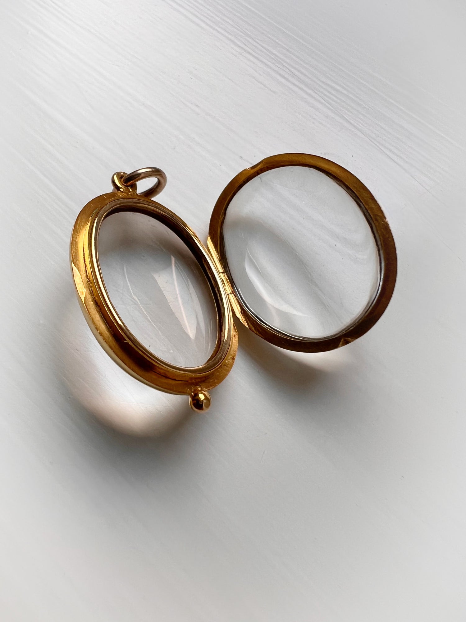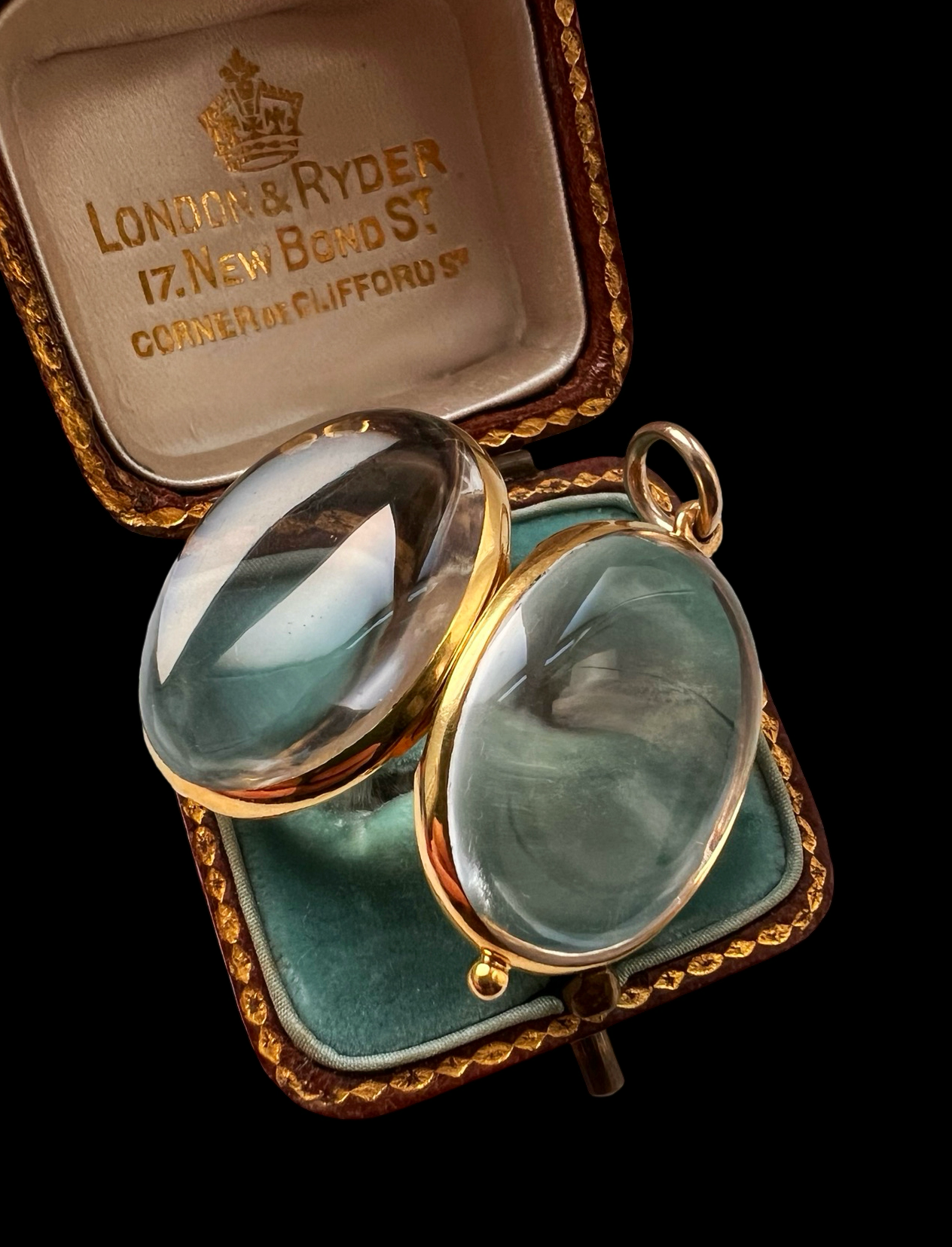 A gorgeously chunky Victorian Crystal oval locket set in a substantial 15ct gold frame.
