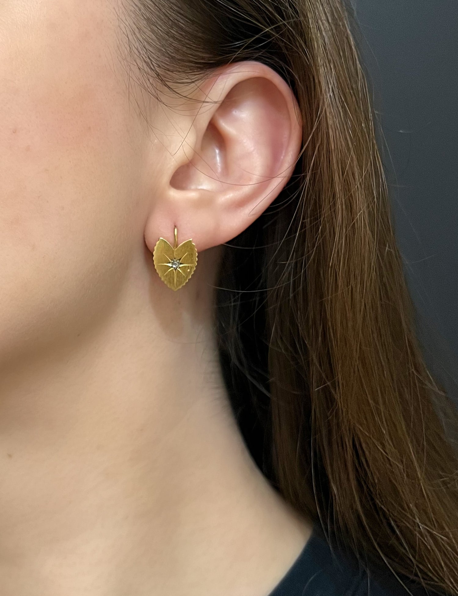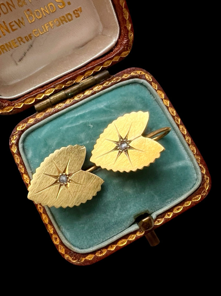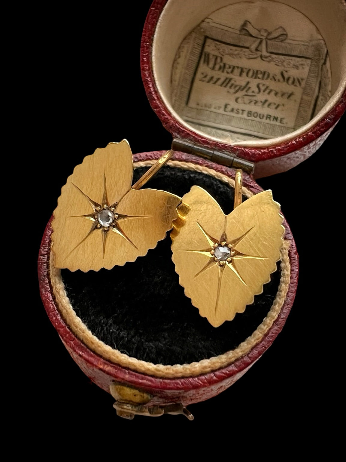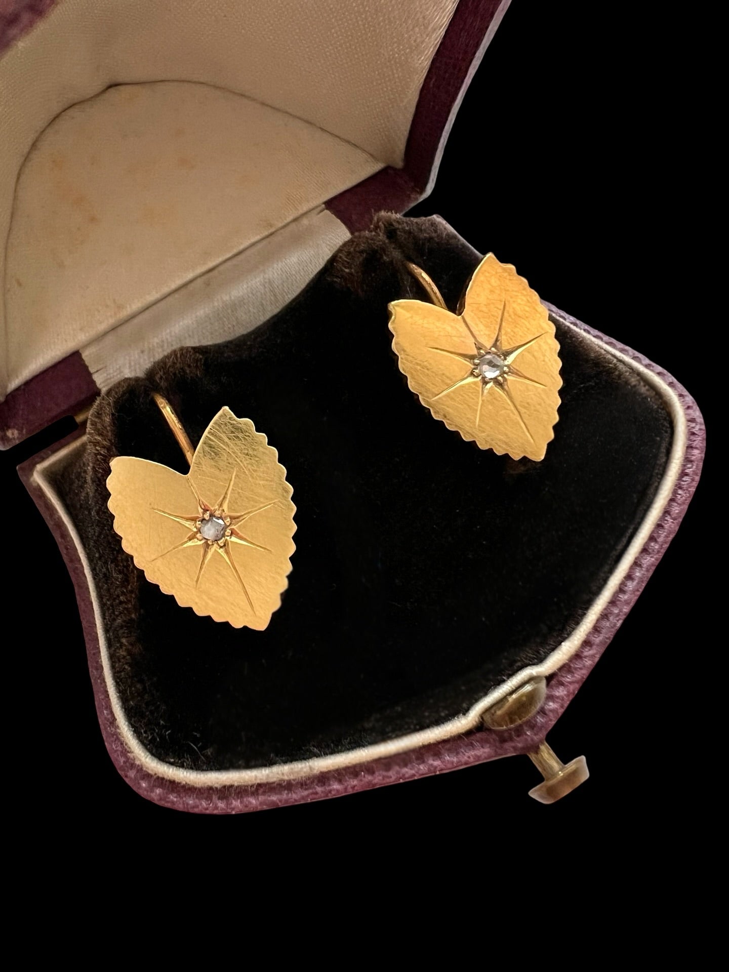 VICTORIAN 15CT GOLD & DIAMOND HEART EARRINGS