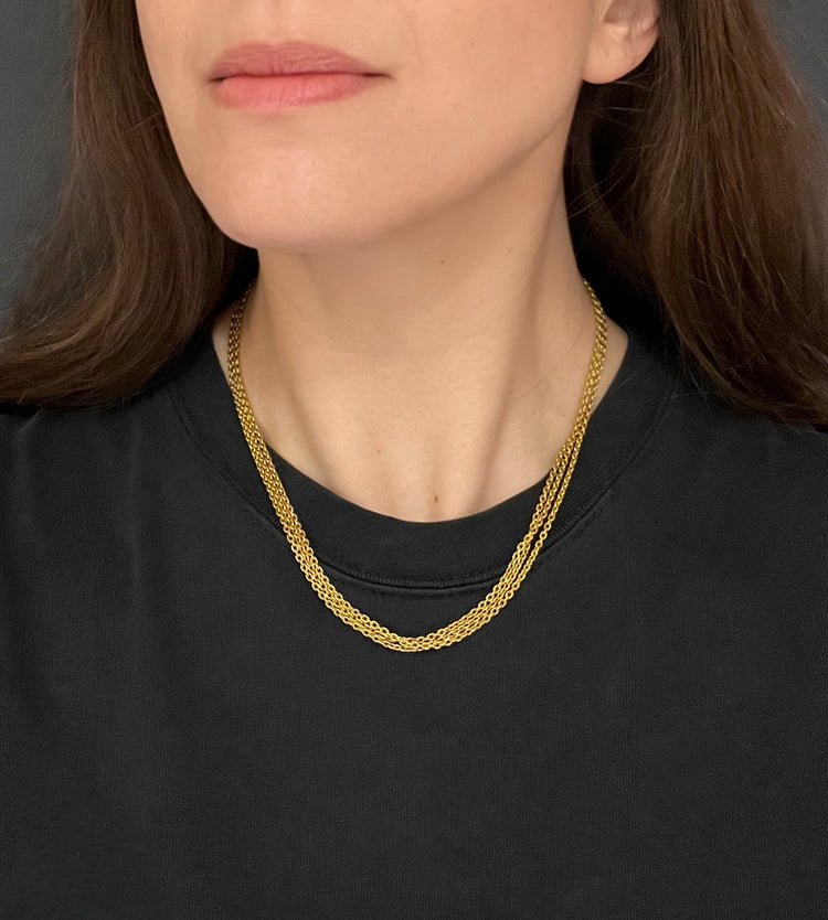 Measuring just over 55 inches, the chain is super long, so it can be worn up to three times around the neck for different looks.
