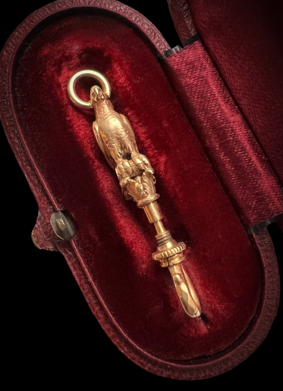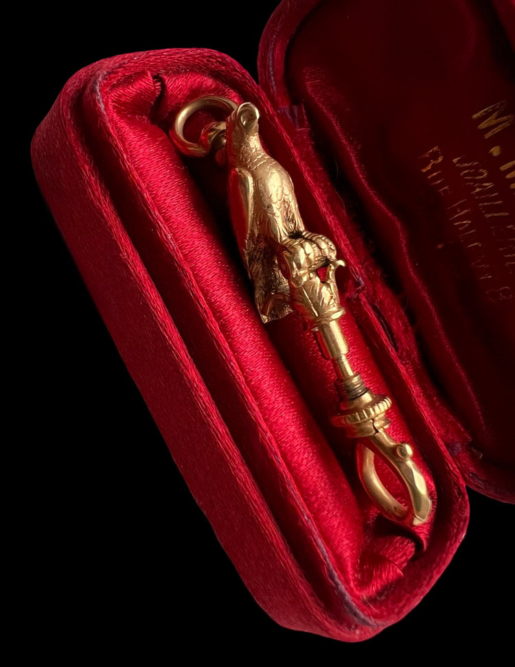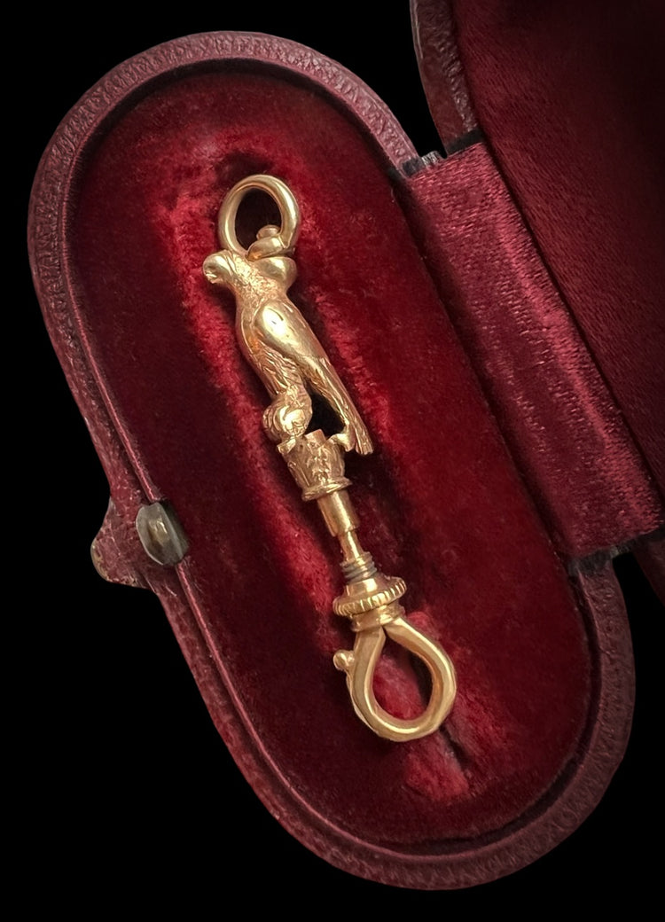 A super cool, super unique Victorian 15ct gold Parrot dog clip.
