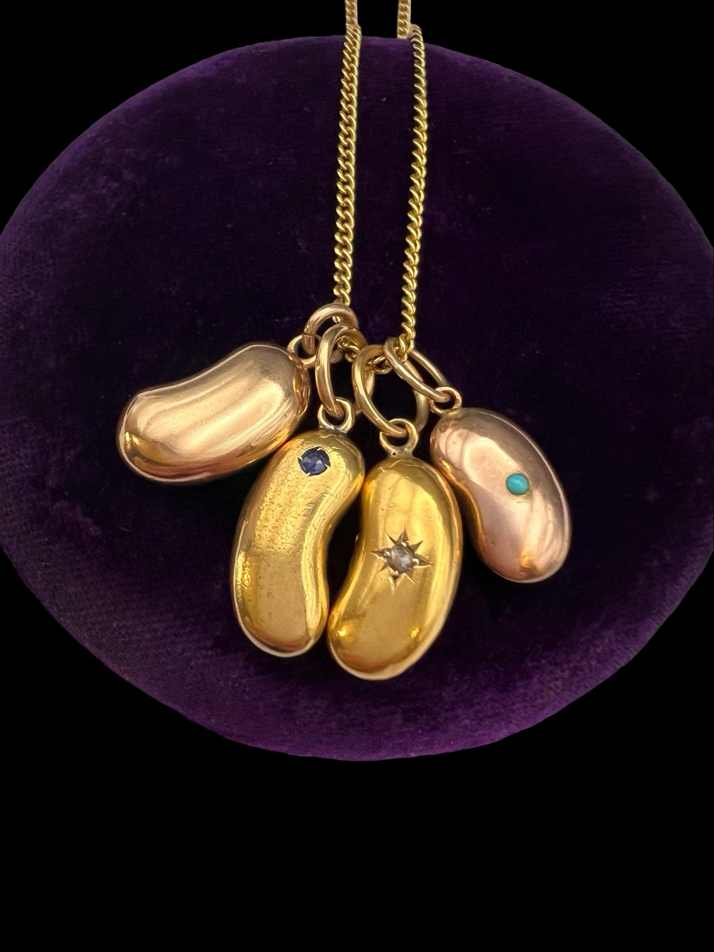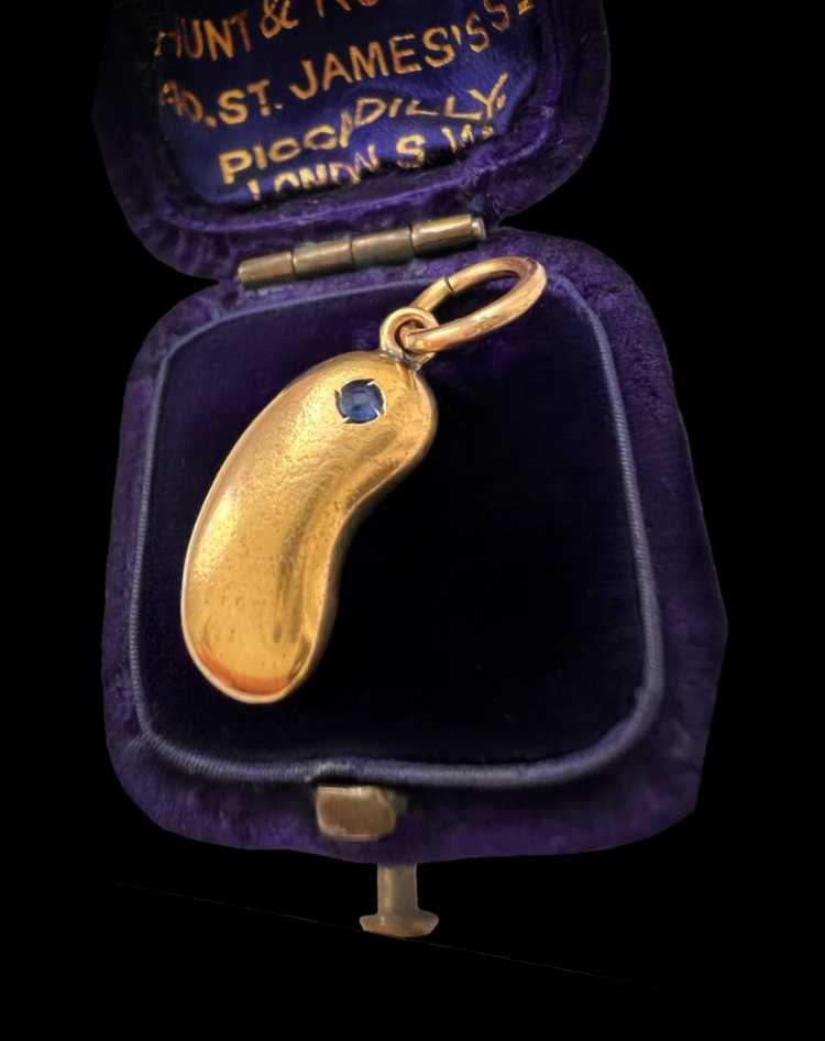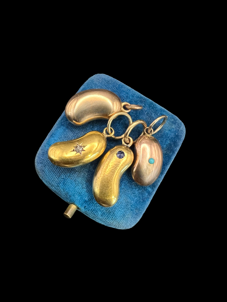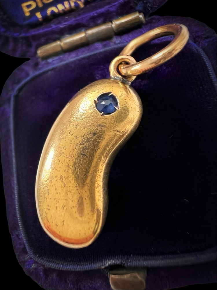VICTORIAN 15CT GOLD & SAPPHIRE LUCKY BEAN PENDANT