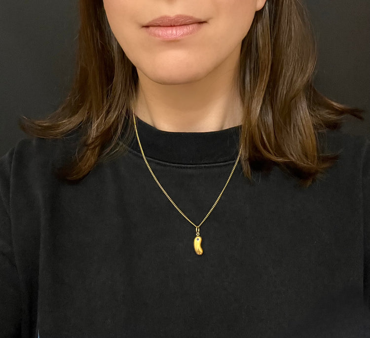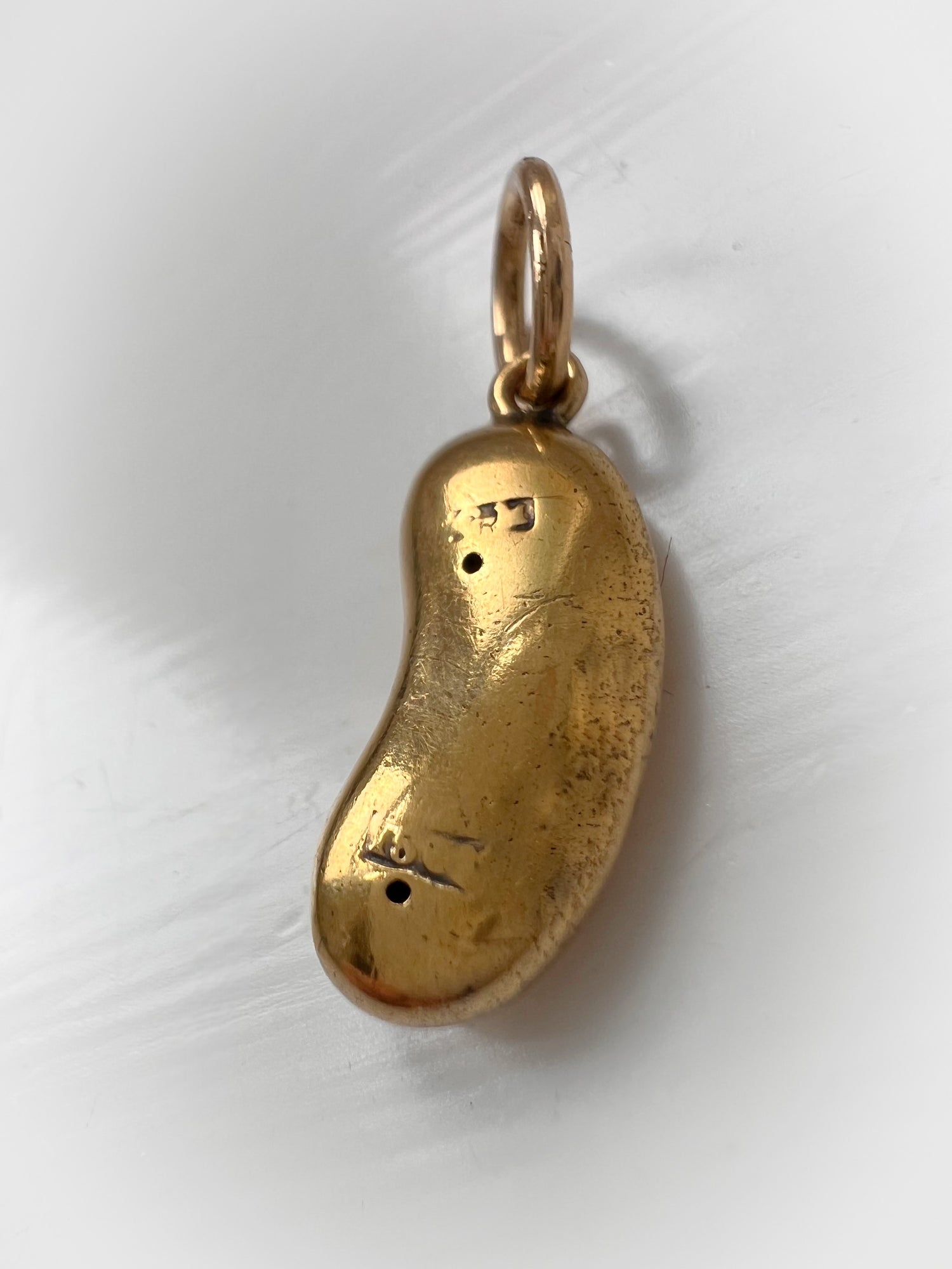 The gold has a slightly textured surface, to mimic the skin of the bean.