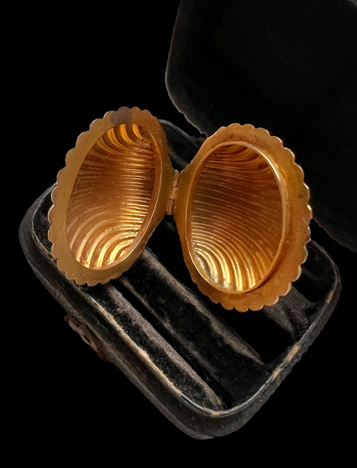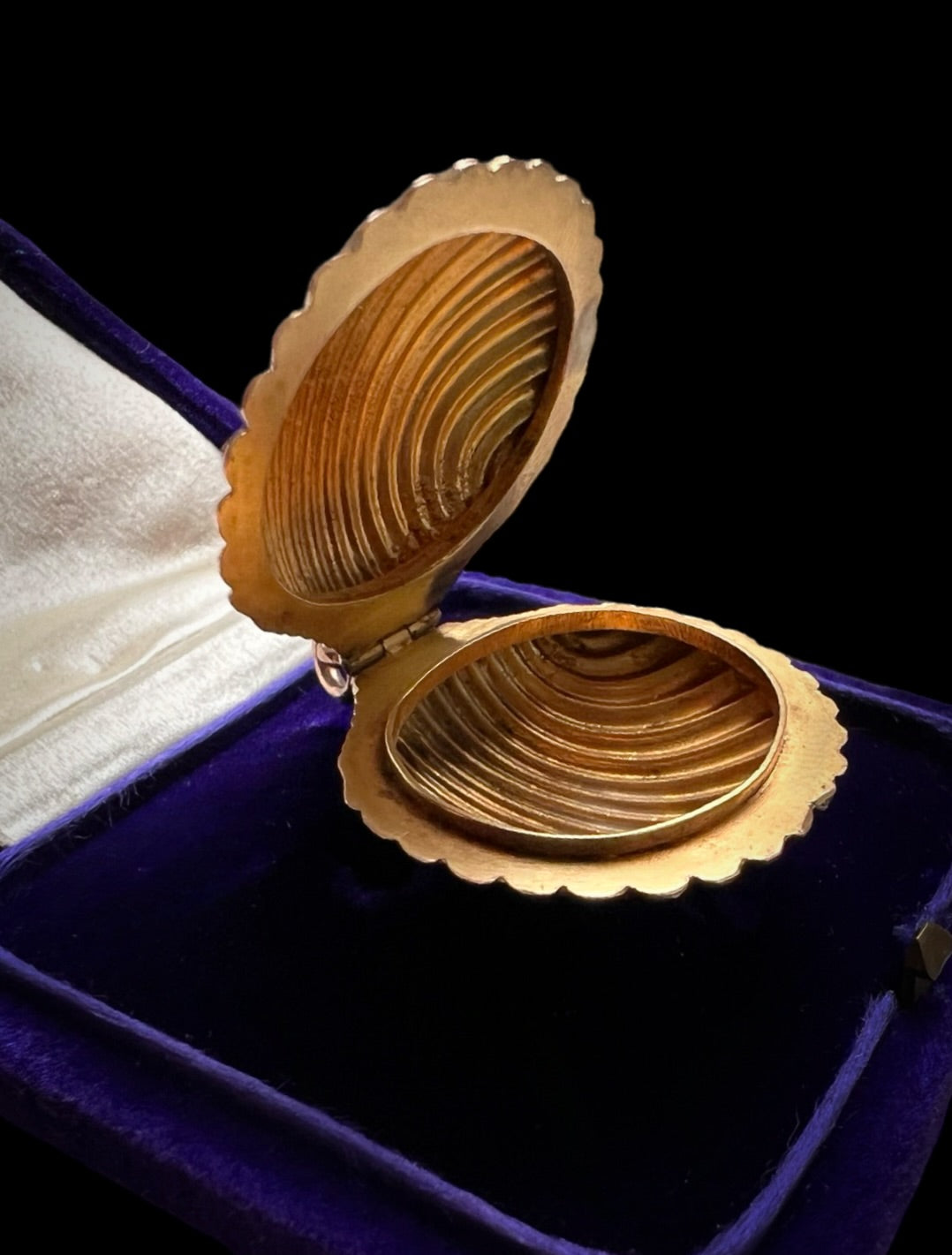 The shell opens to reveal the cavity inside. Likely a vinaigrette originally, and now a fantastic and functional locket.