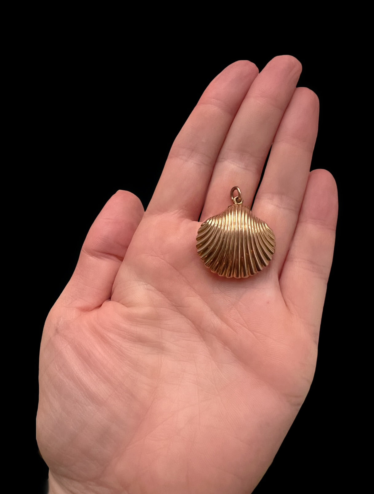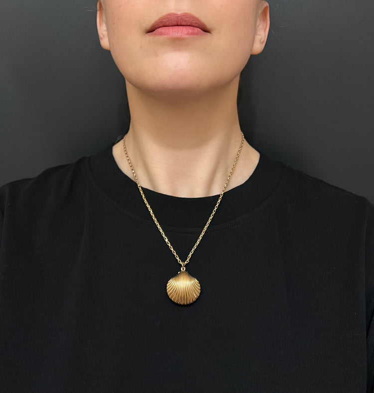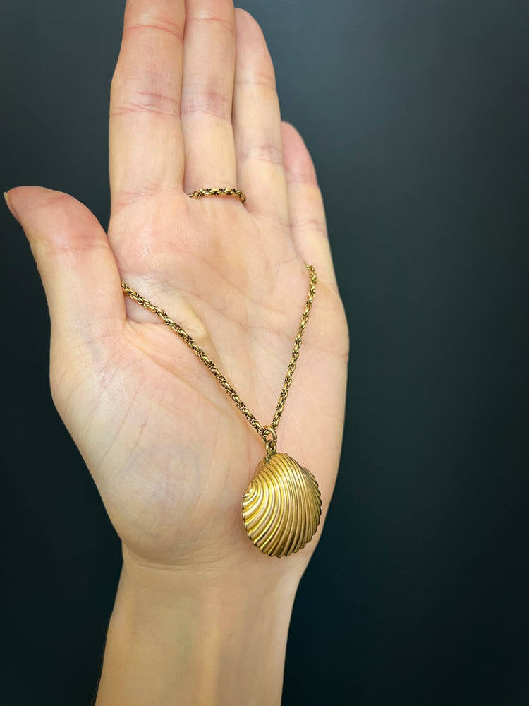 A stunning 15ct gold Scallop shell locket pendant.