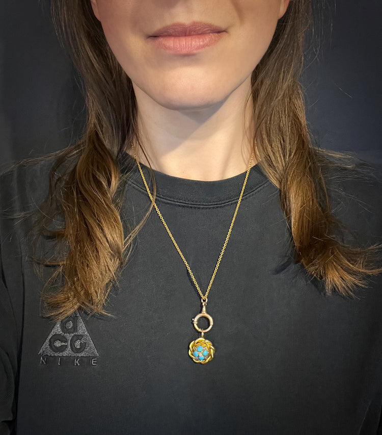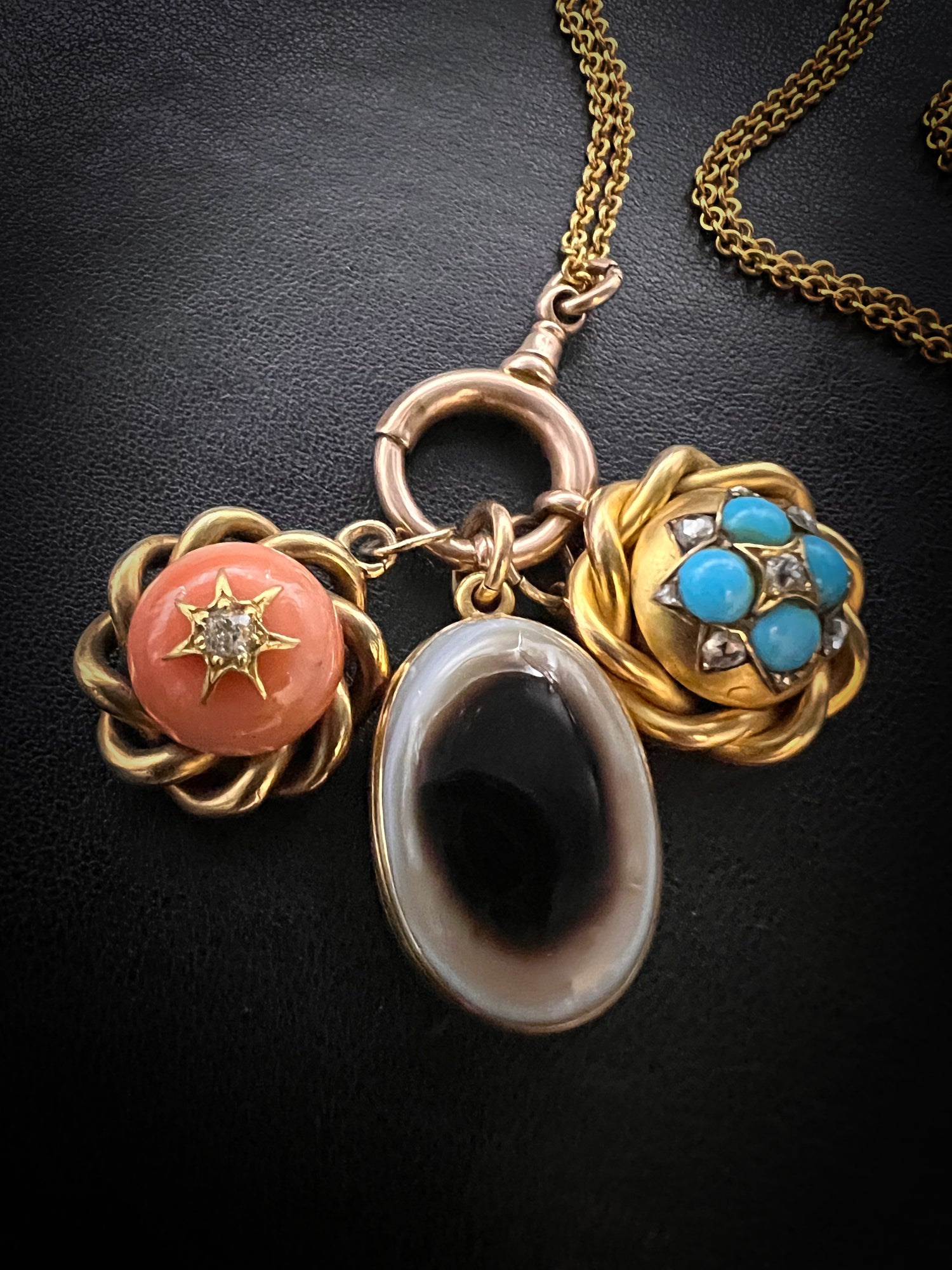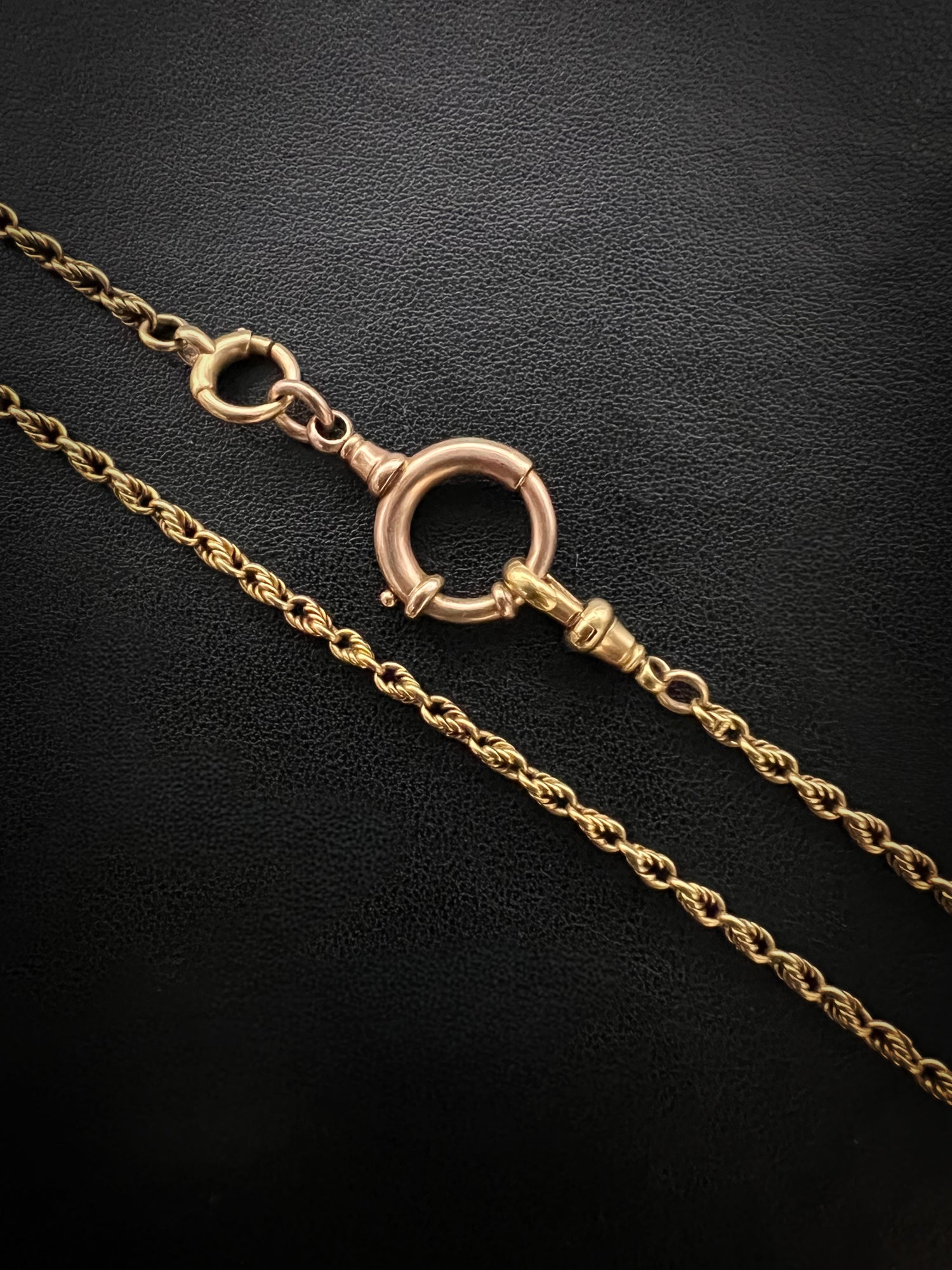 This design is rare as the large spring bolt has the neck of a dog clip, which looks great as a bail to hang charms from.