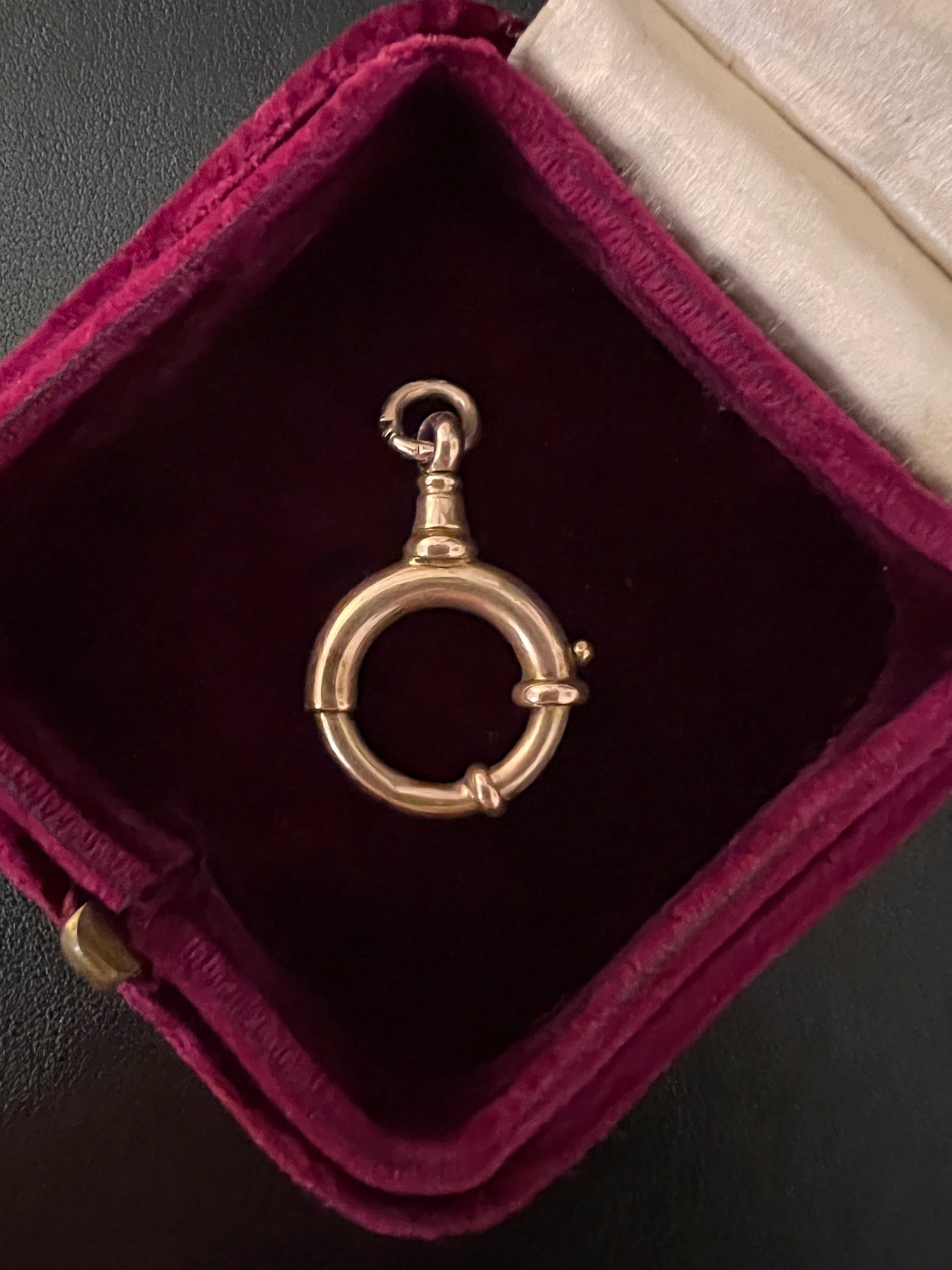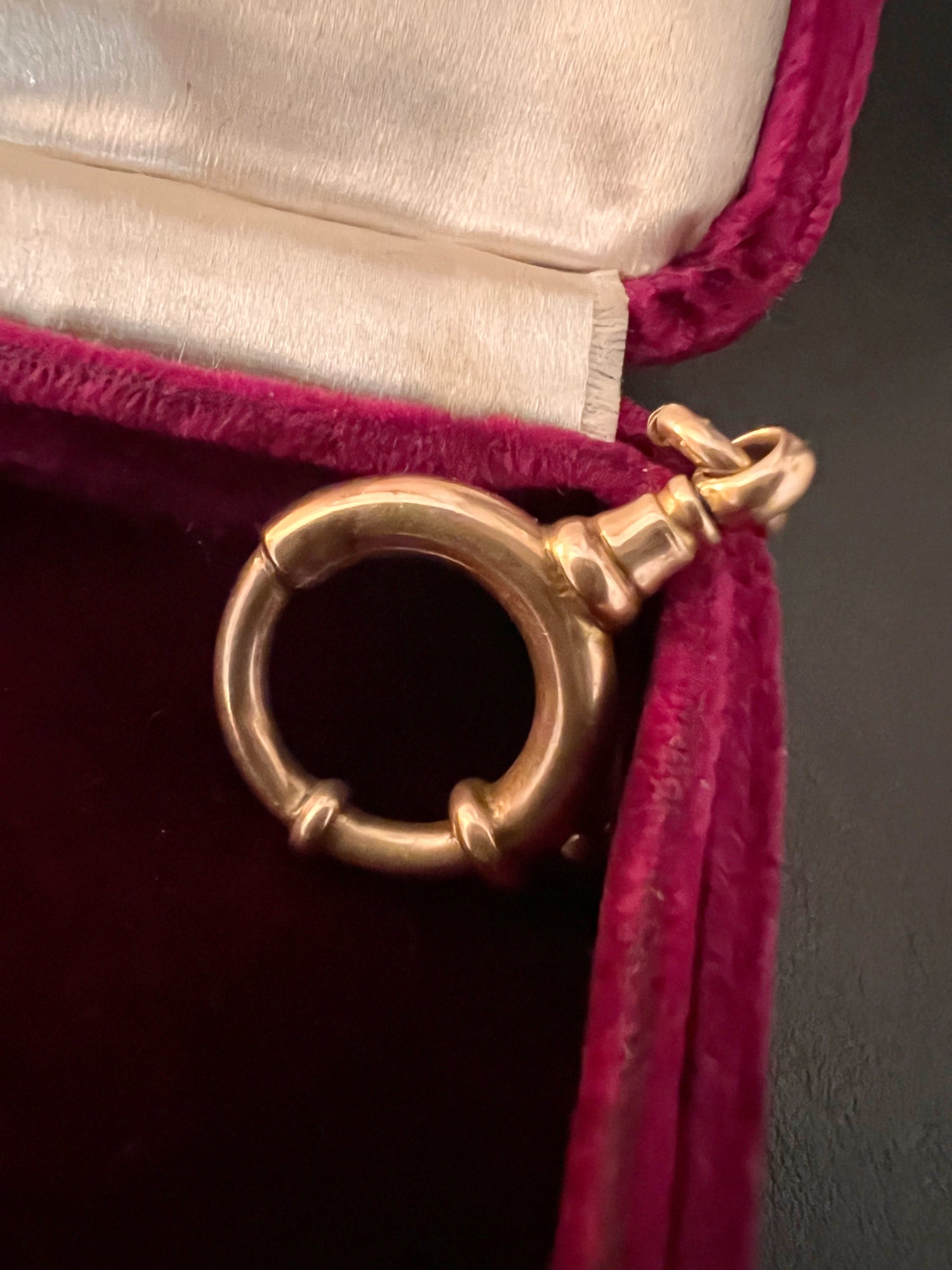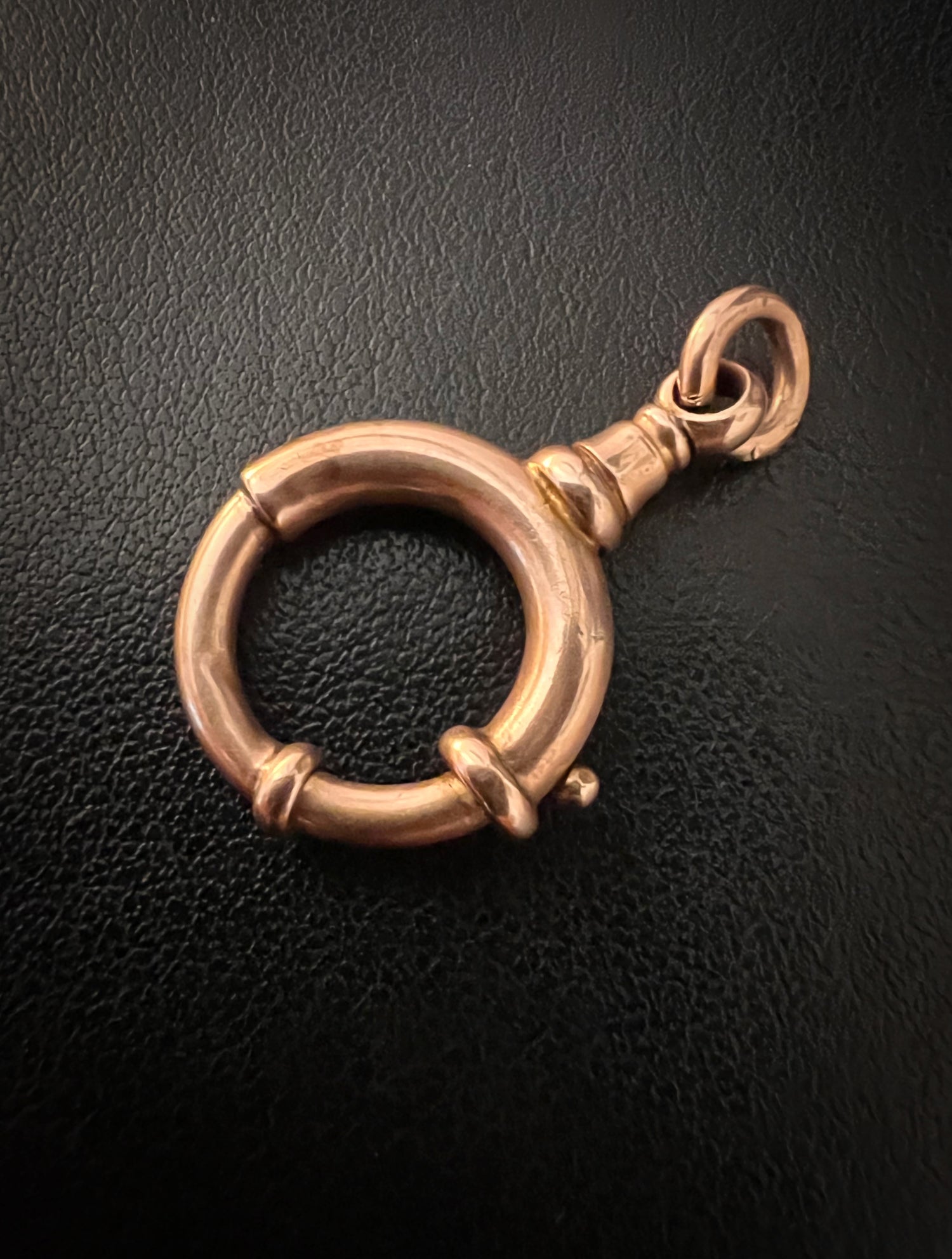 The bolt has a chunky jump ring which has a slight grove! See pic, but this doesn’t affect the piece and is nice to keep the original ring.