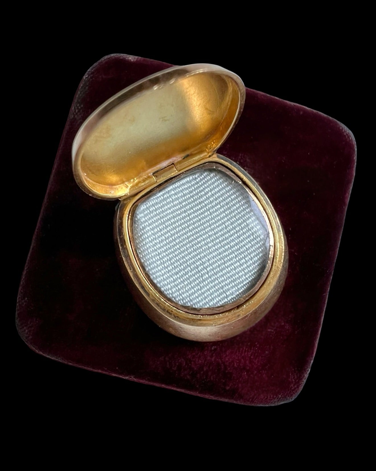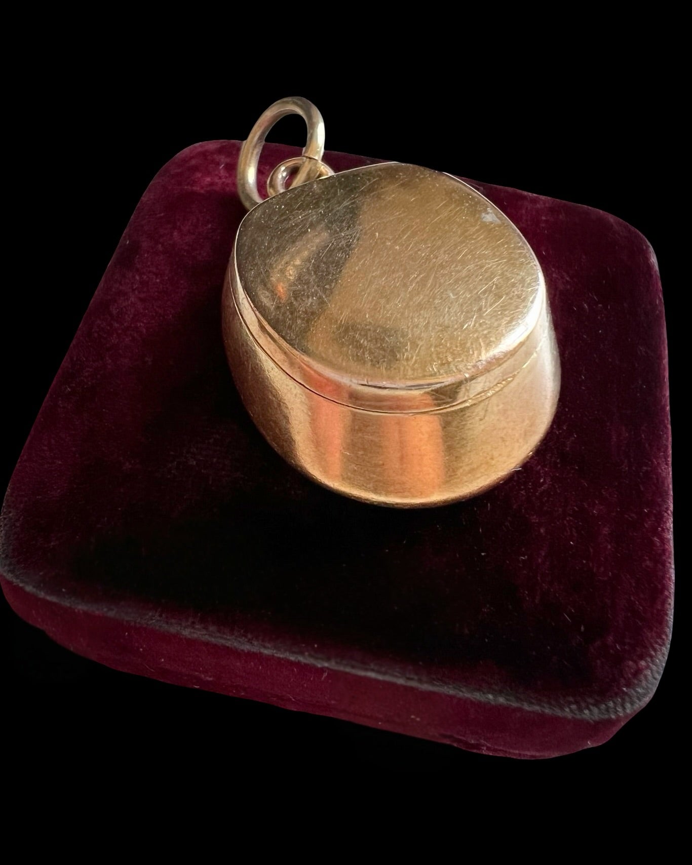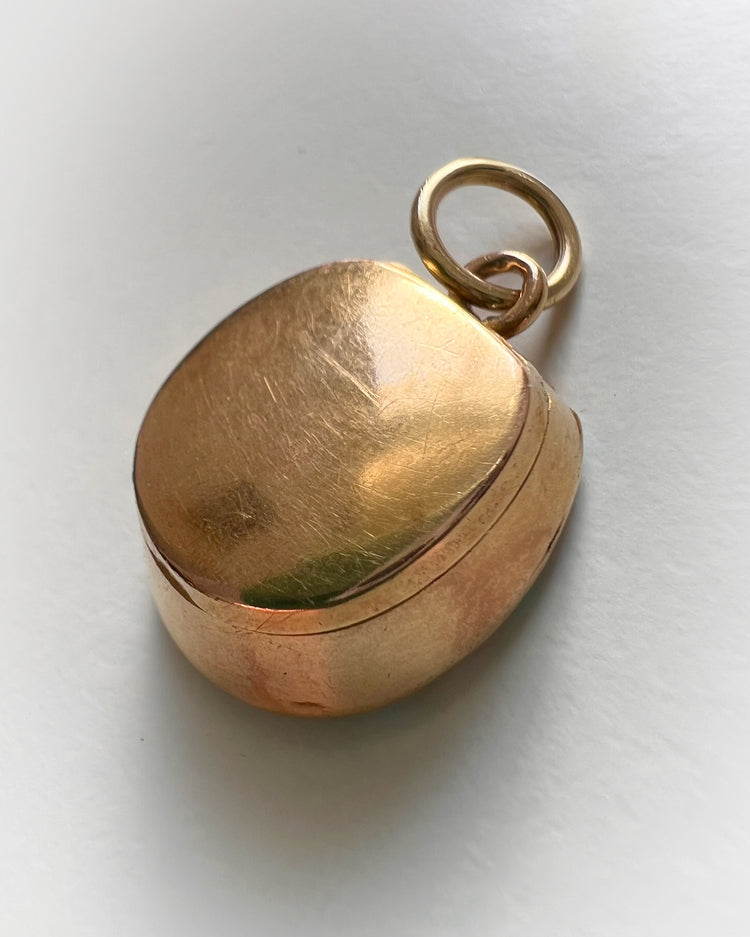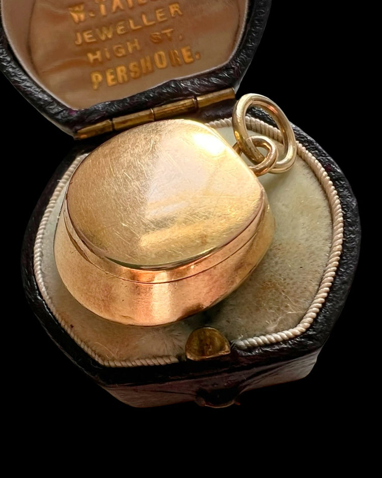 The locket is crafted in 15ct gold, in the shape of a shoed horse hoof.