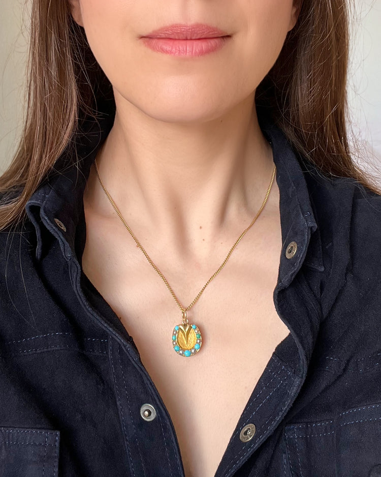 VICTORIAN 15CT GOLD & TURQUOISE HORSE HOOF PENDANT