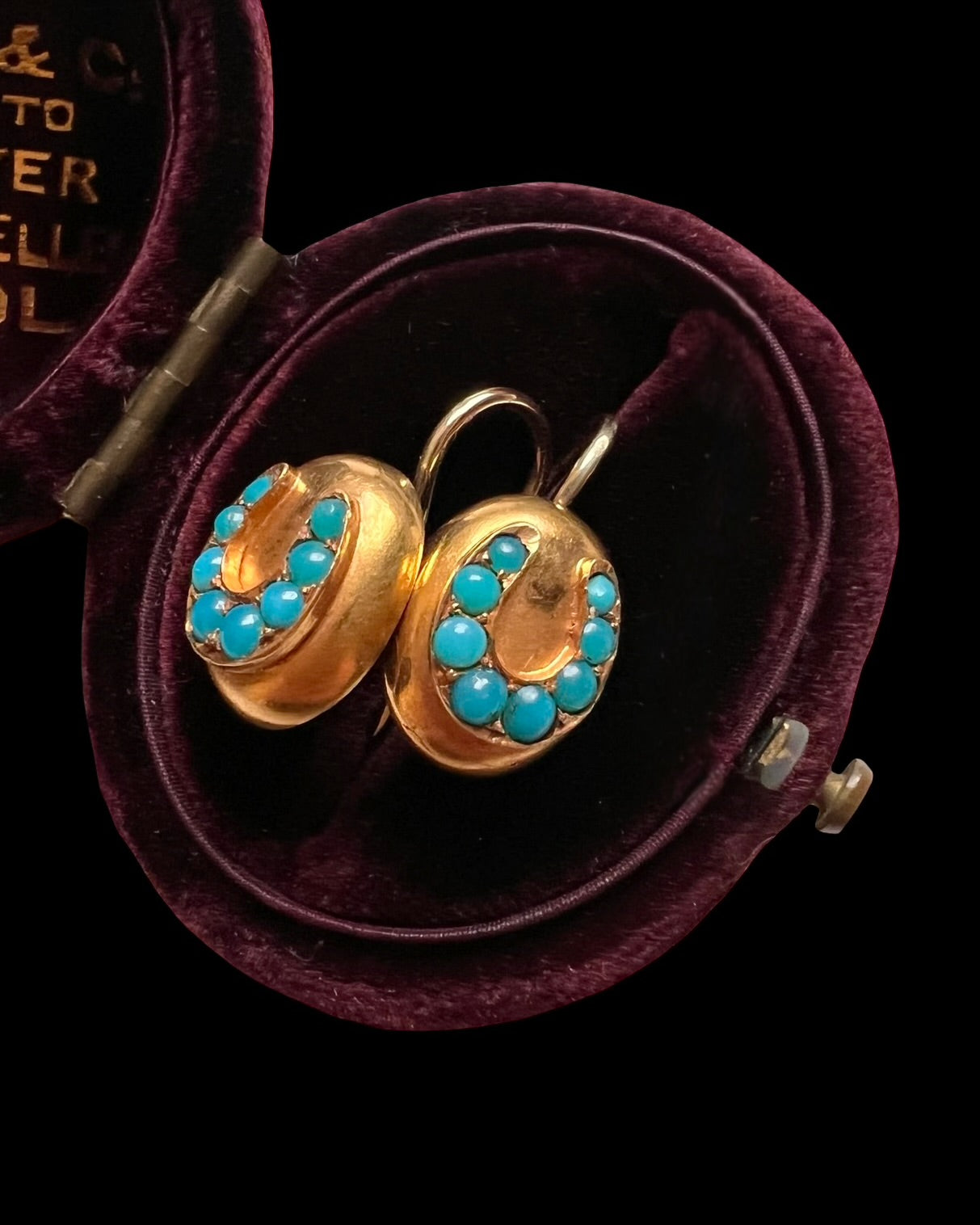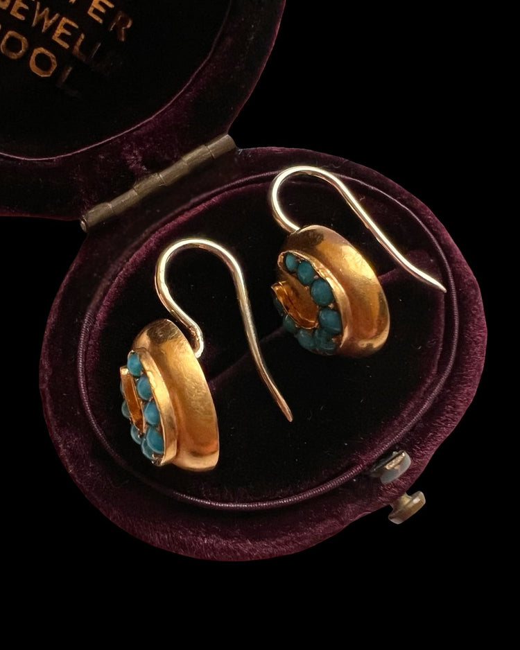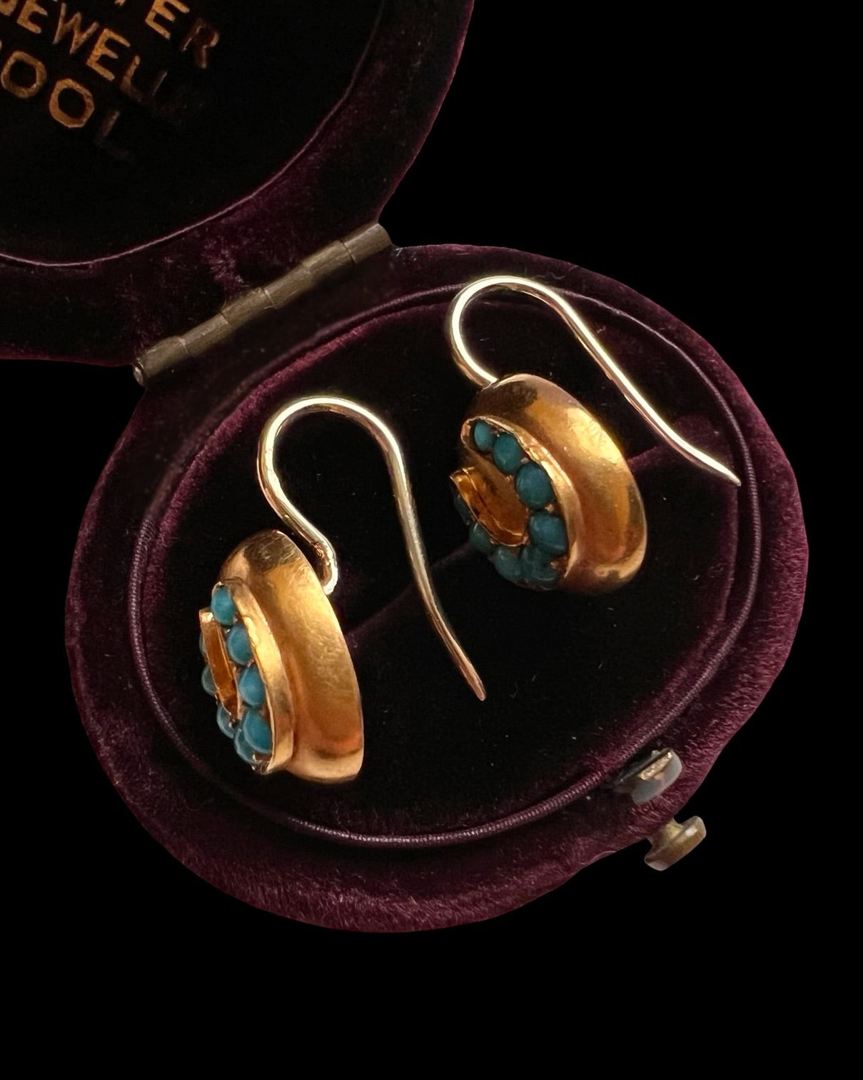 A super cute pair of Victorian 15ct gold and turquoise earrings.