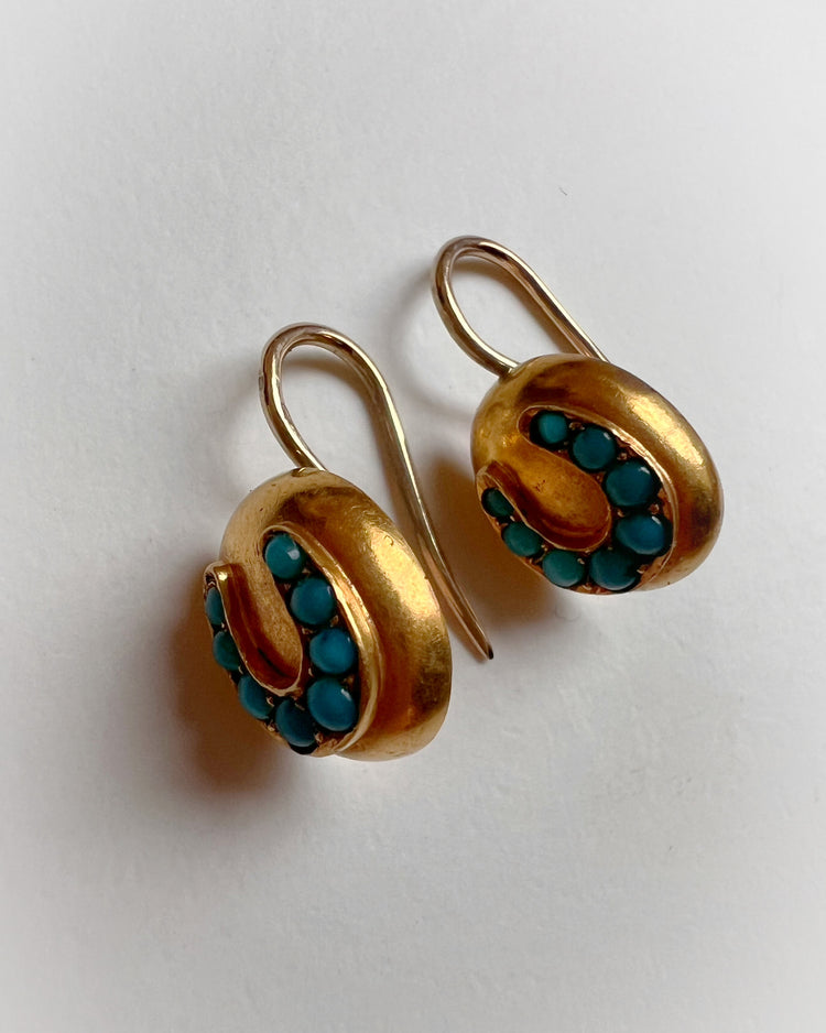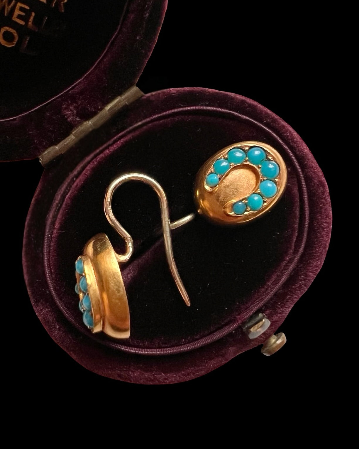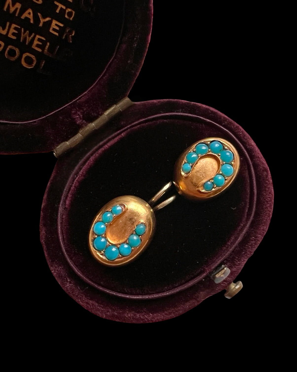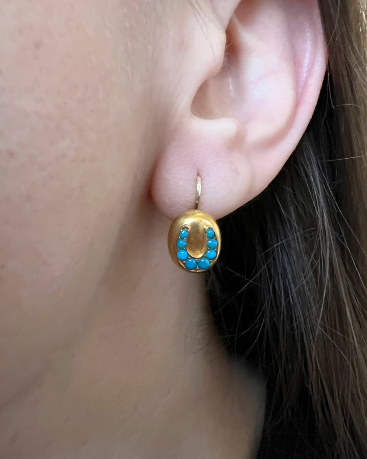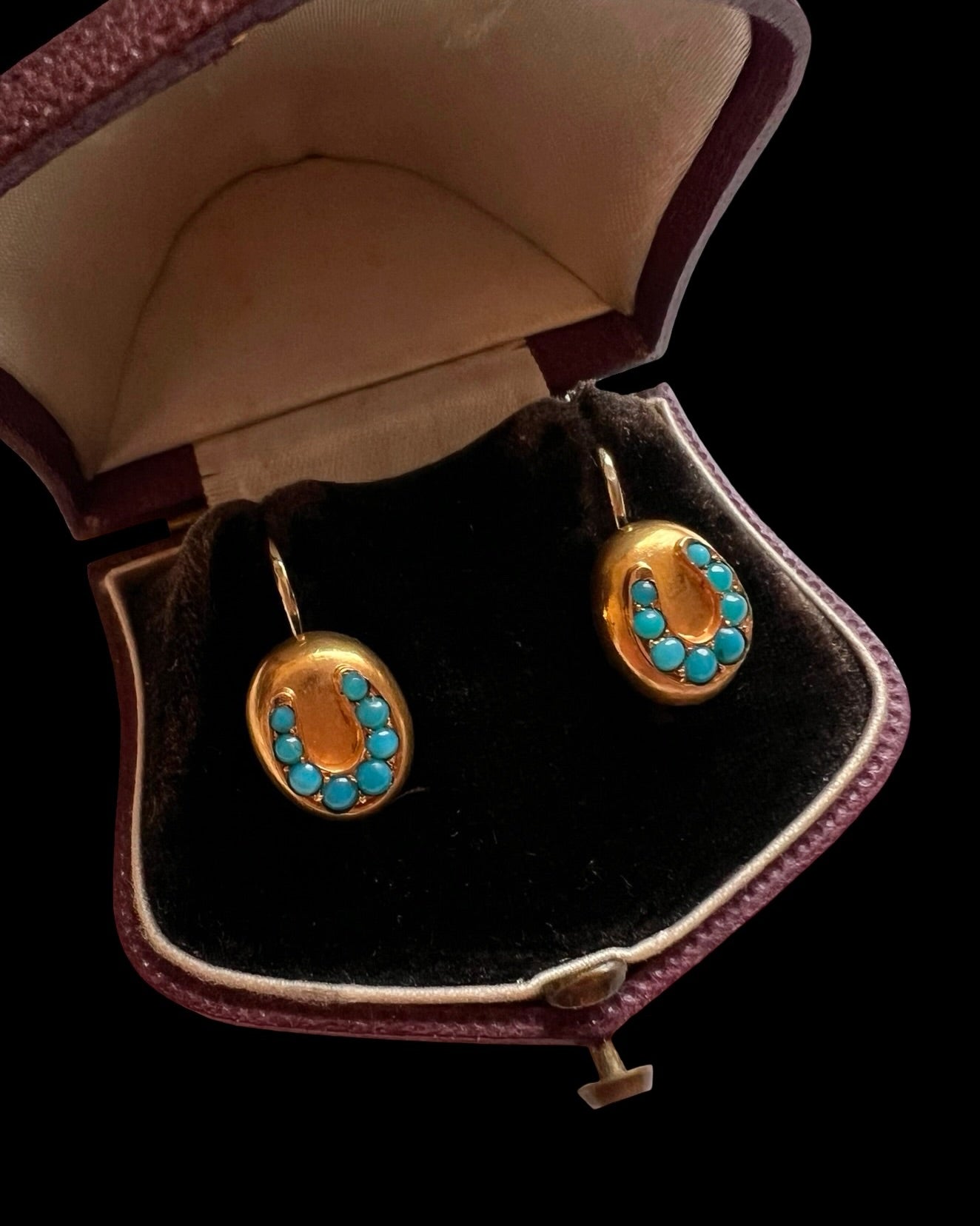 VICTORIAN 15CT GOLD & TURQUOISE HORSESHOE EARRINGS