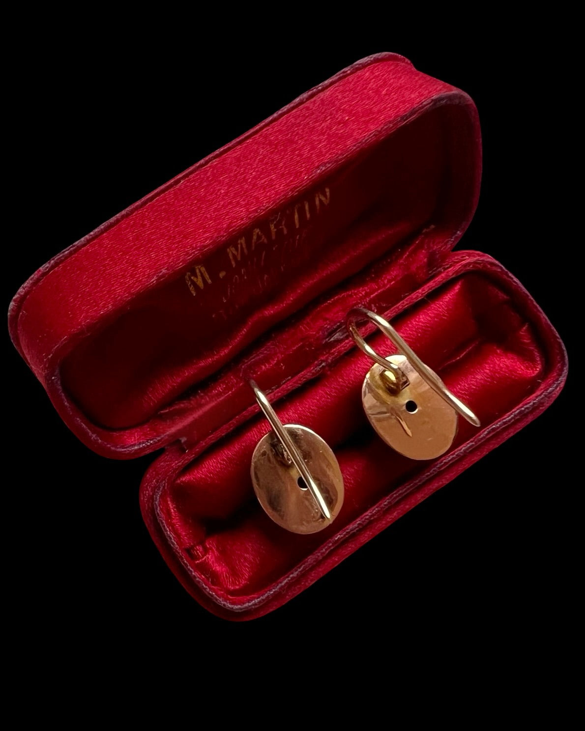 The oval domed earrings are a fantastic gold colour, with a slightly matt bloom which is so typical of this era of jewellery.