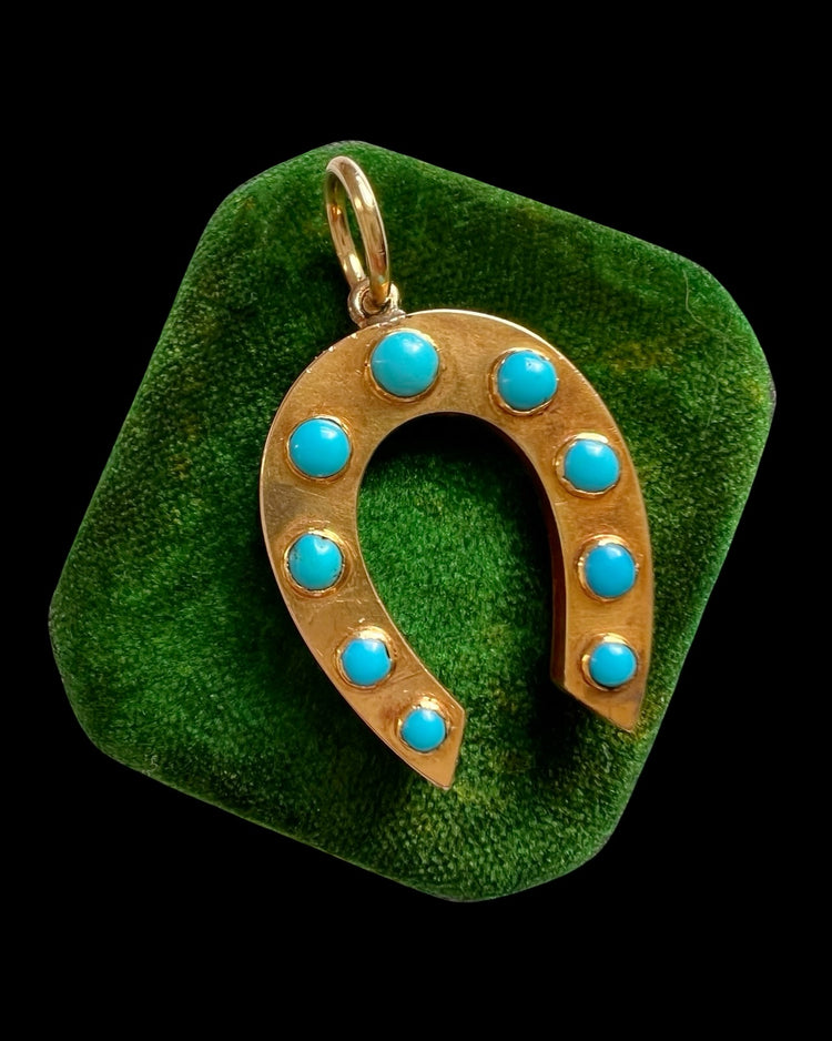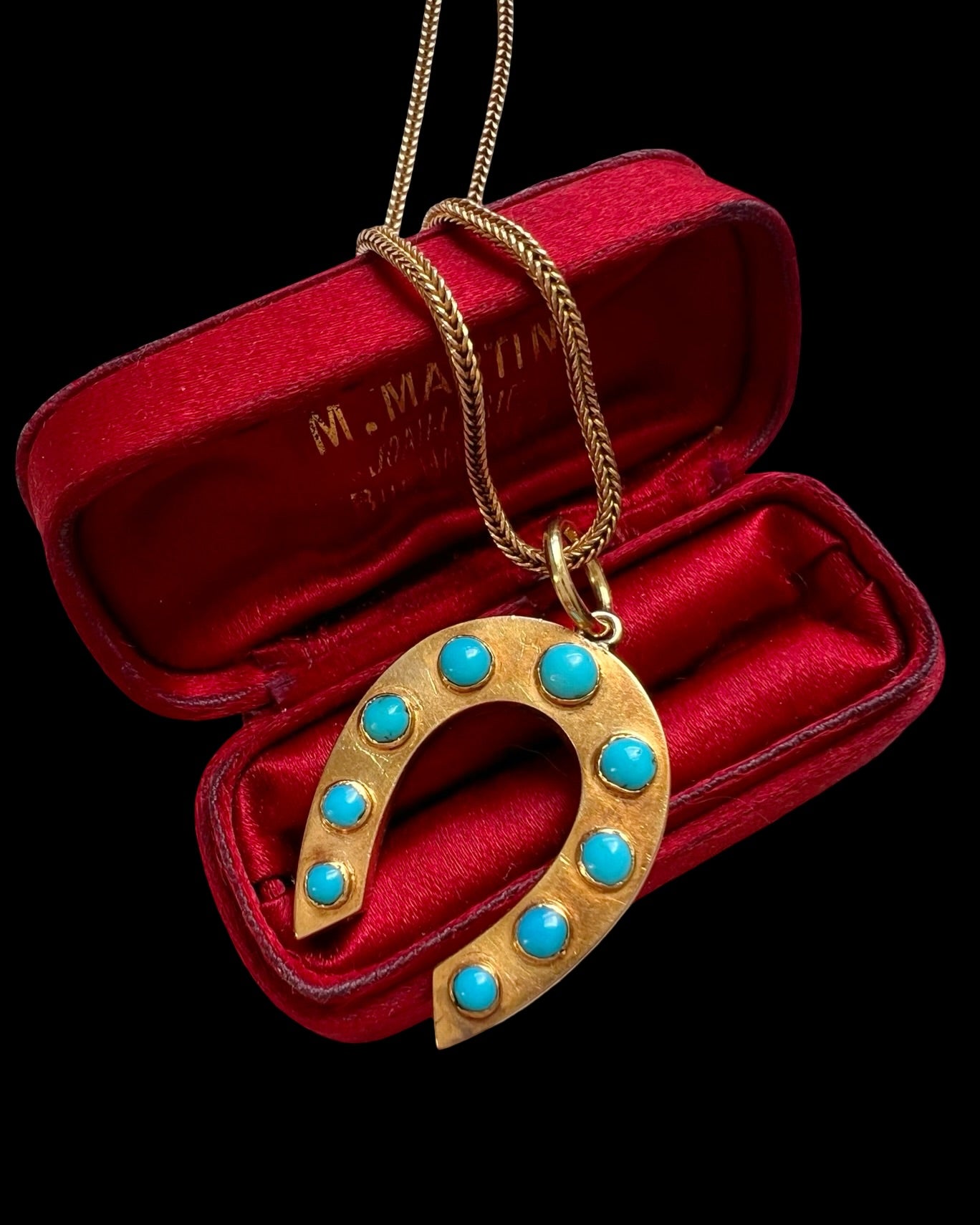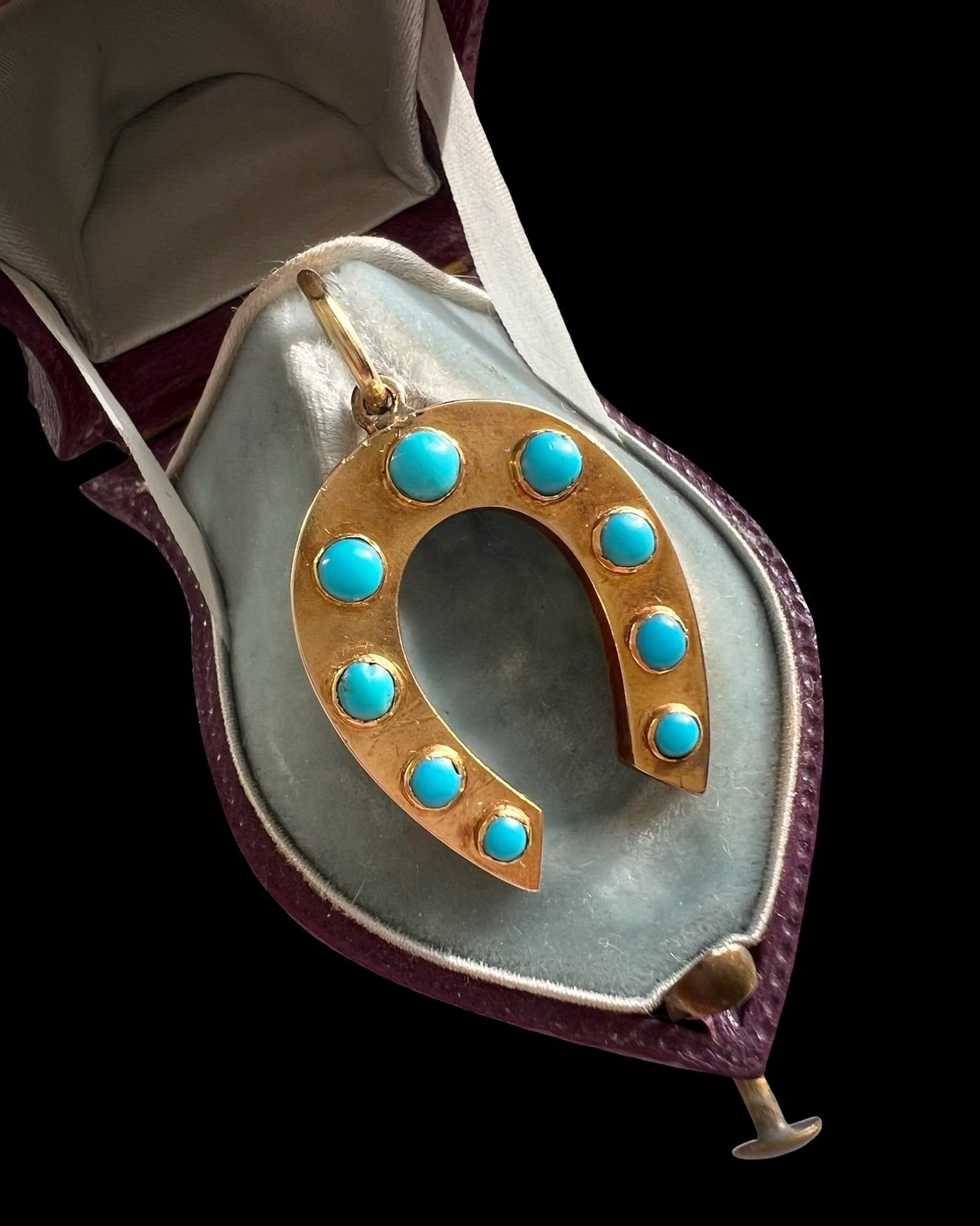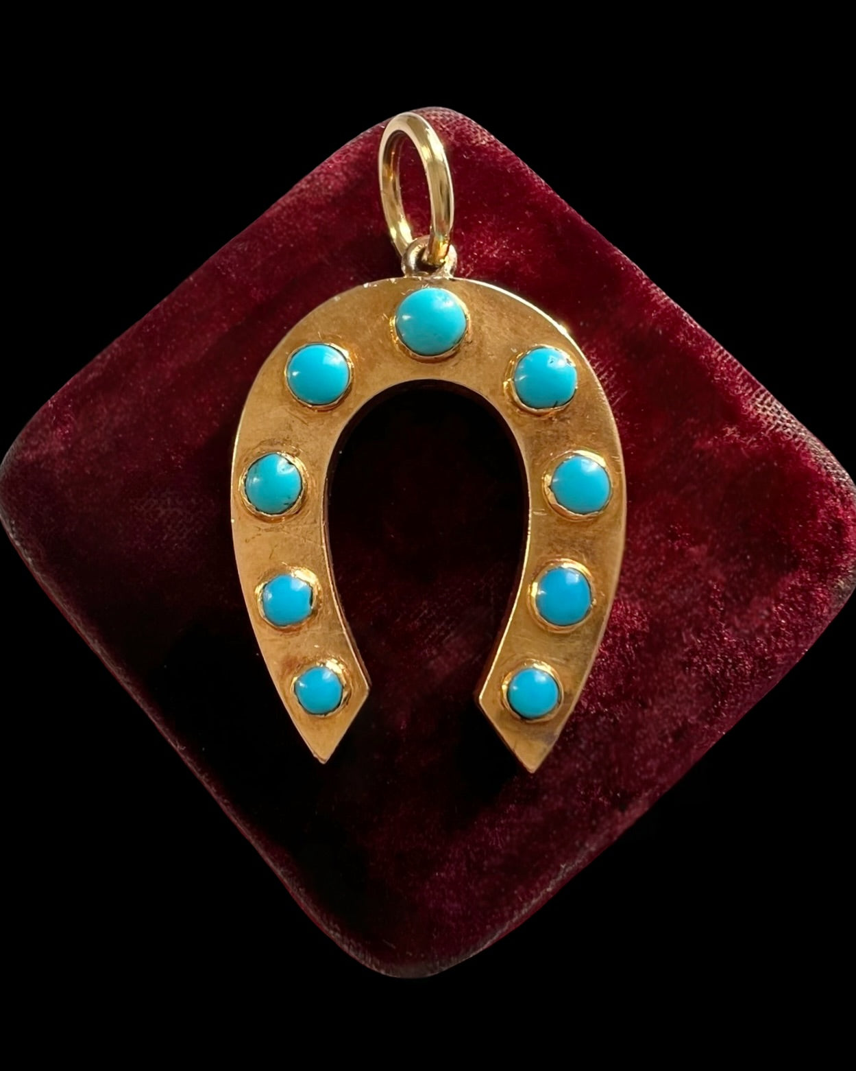VICTORIAN 15CT GOLD & TURQUOISE HORSESHOE PENDANT