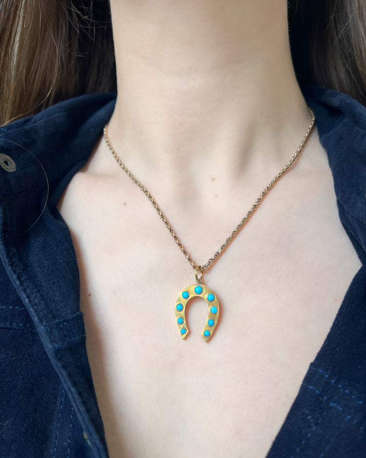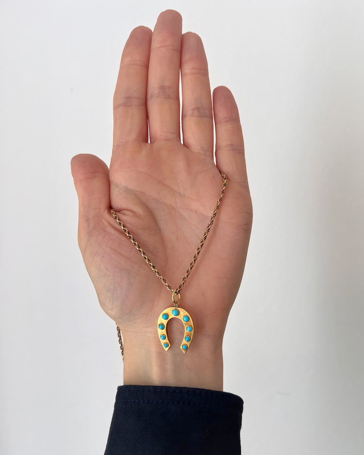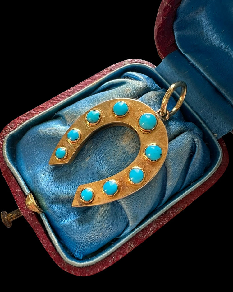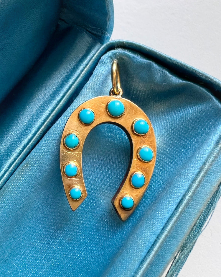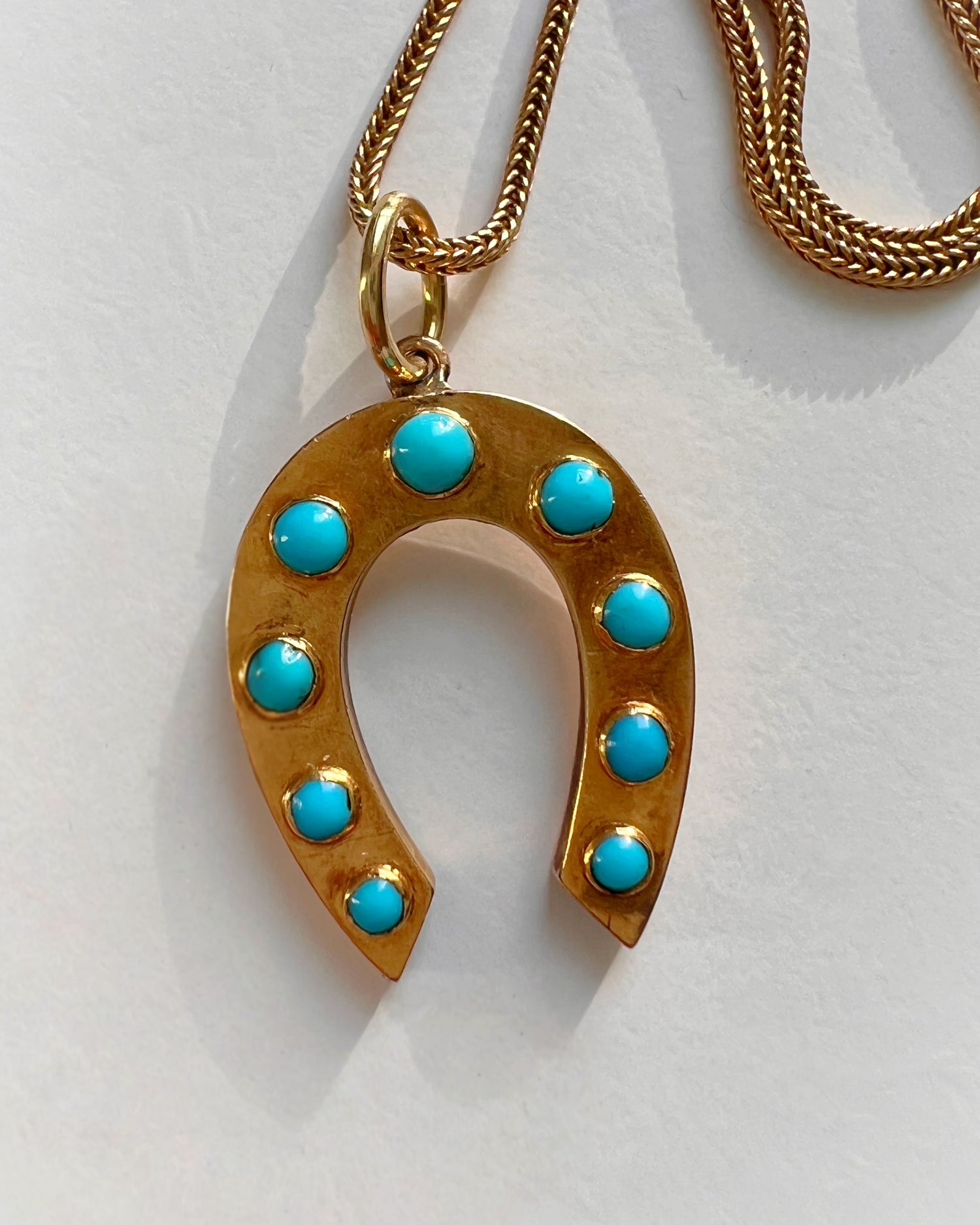 VICTORIAN 15CT GOLD & TURQUOISE HORSESHOE PENDANT