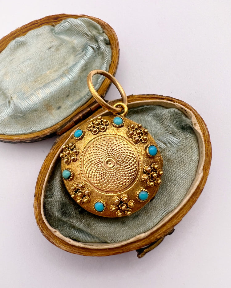 VICTORIAN 15CT GOLD & TURQUOISE LOCKET