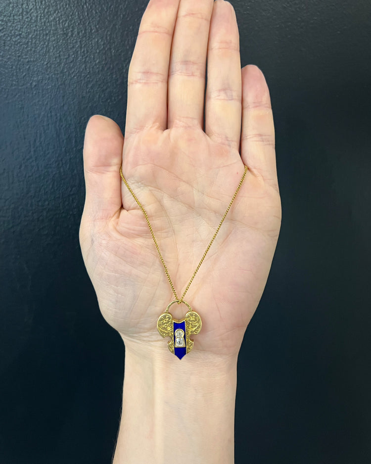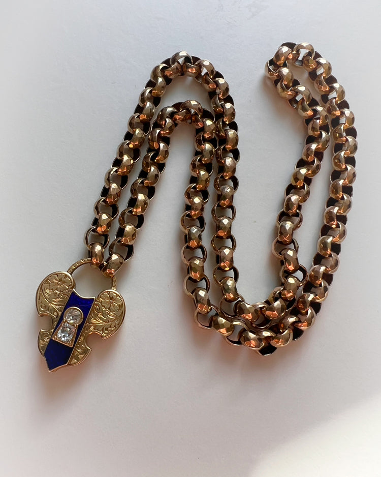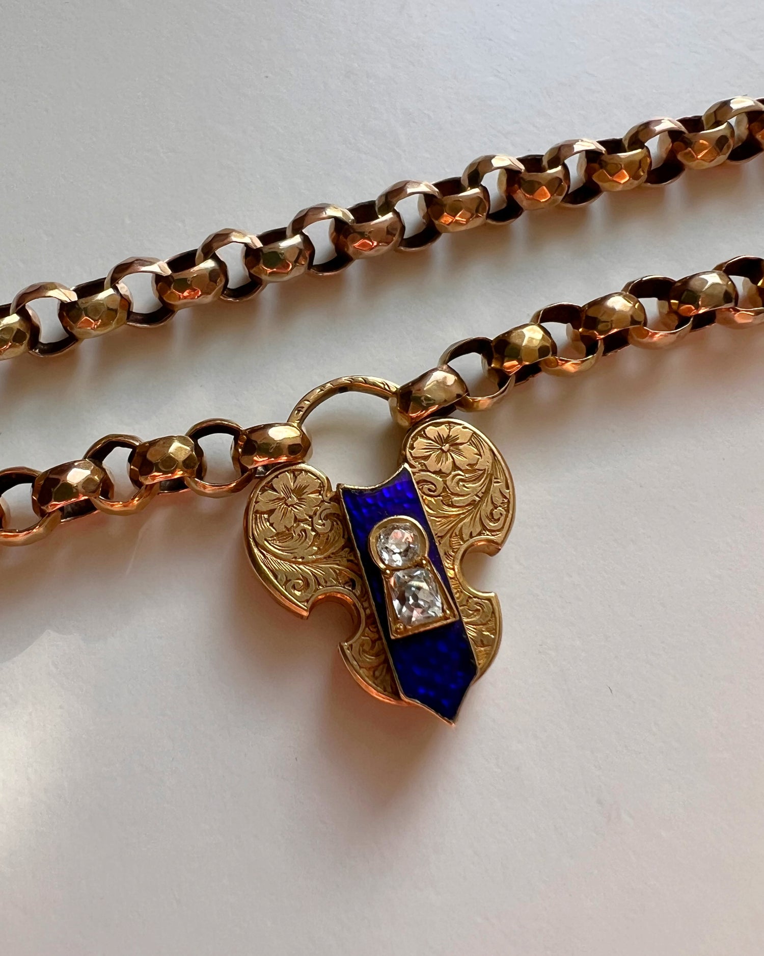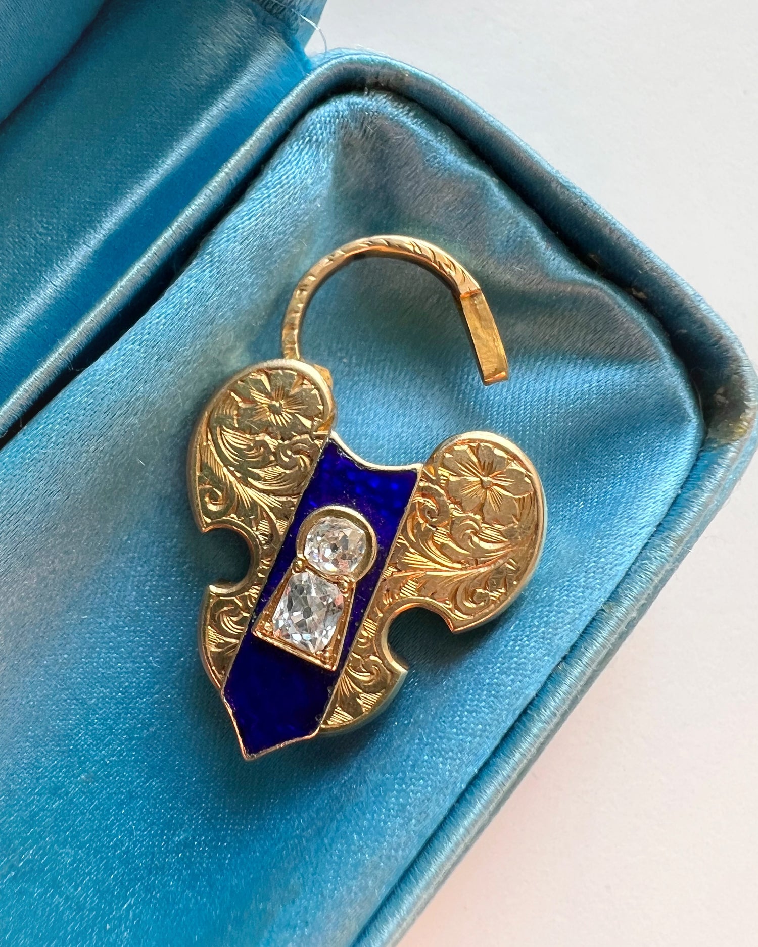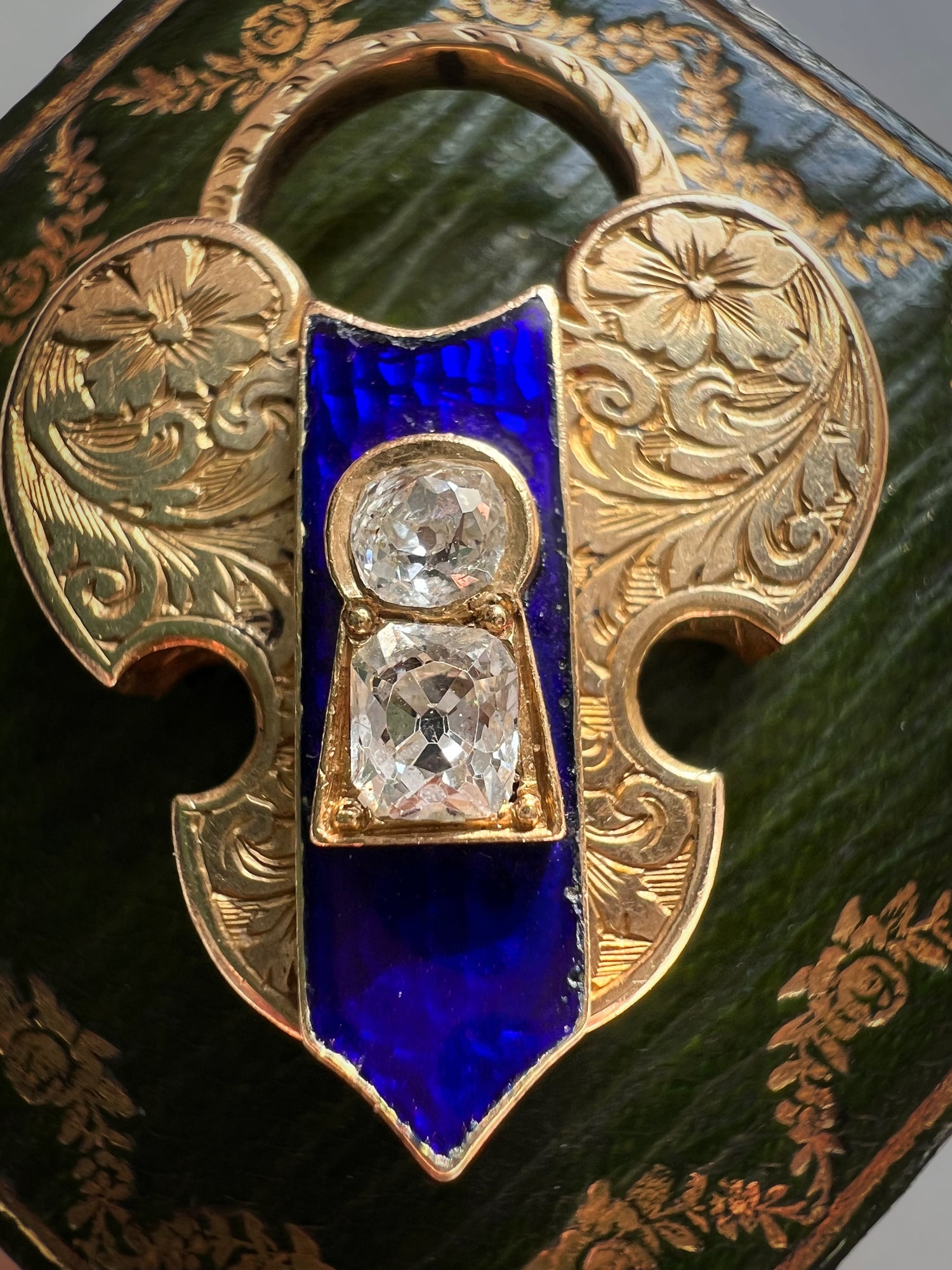 VICTORIAN 18CT GOLD & DIAMOND HEART PADLOCK